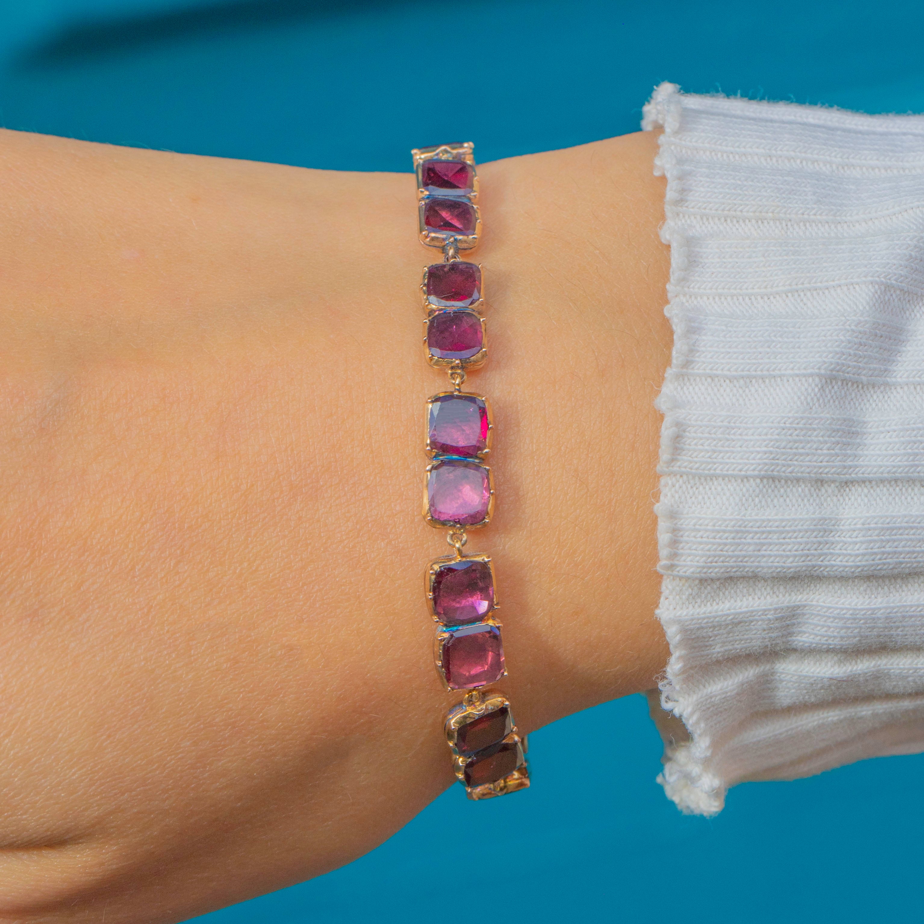 Elegant and refined, this antique Garnet bracelet embodies the romantic luxury of the Georgian era. Perfectly proportioned for stacking or worn alone for a statement of antique sophistication.