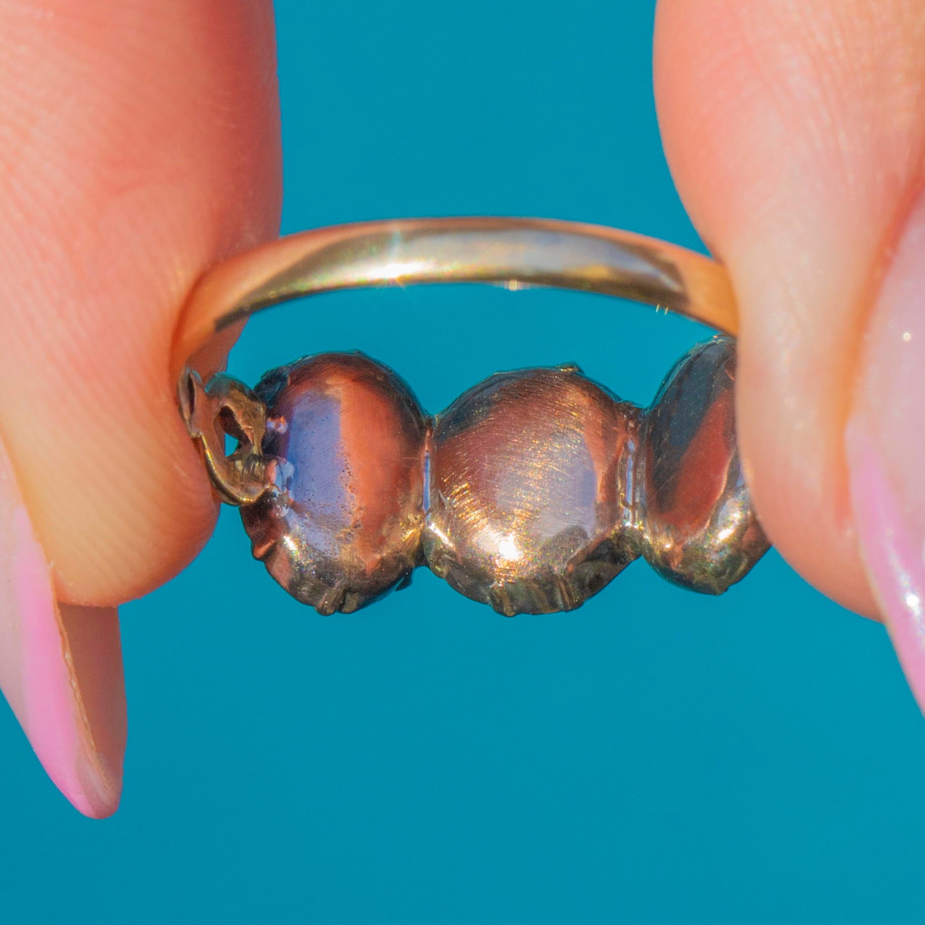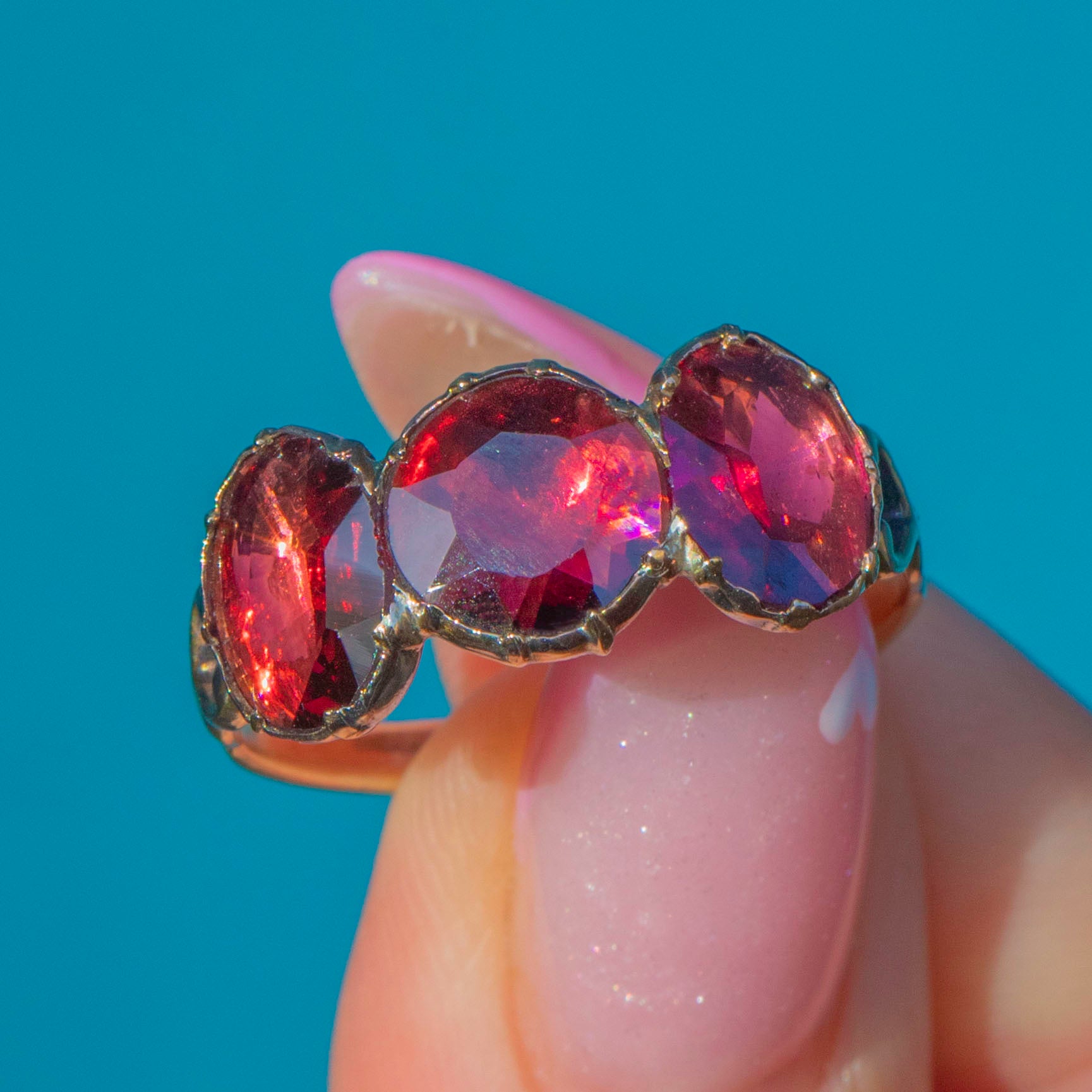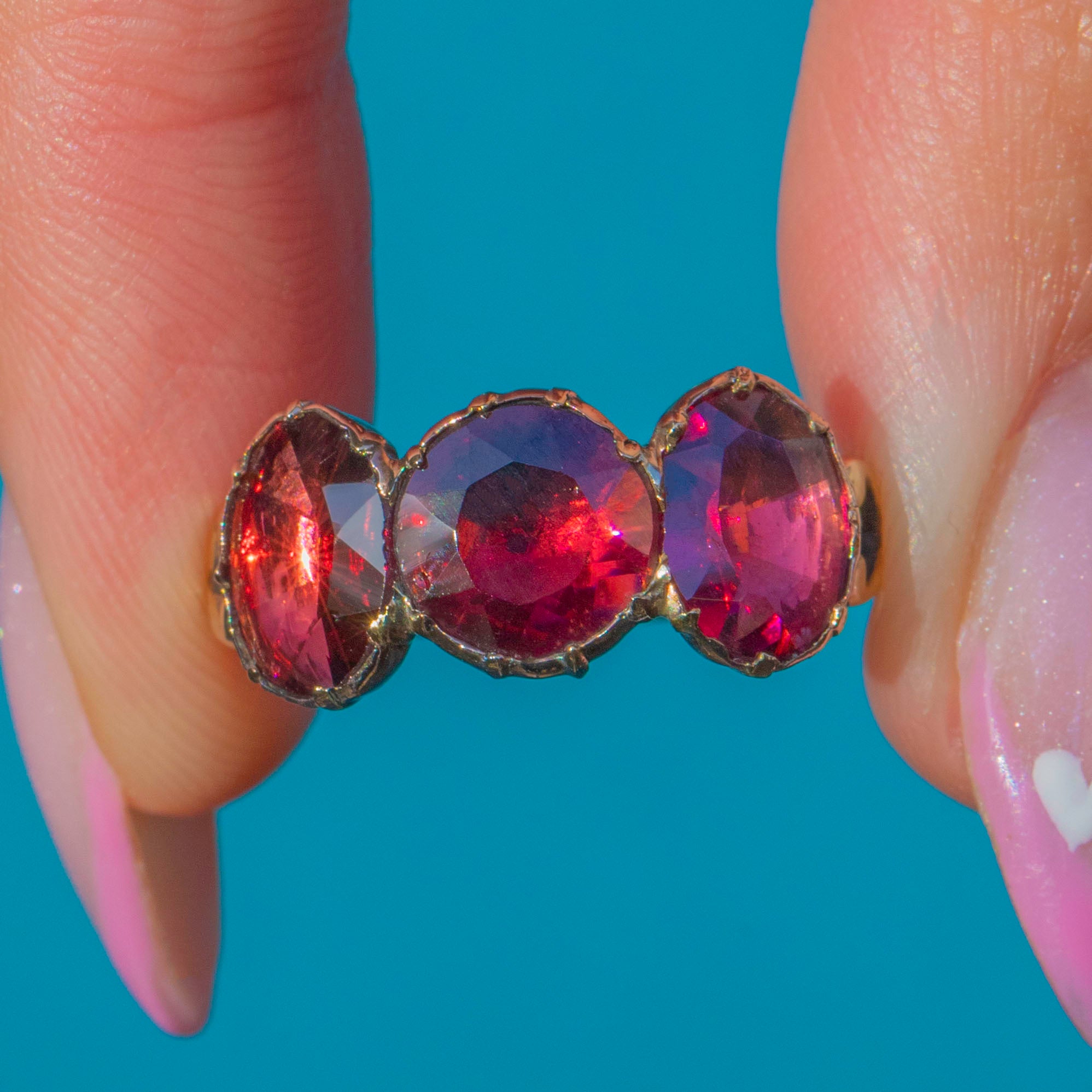 Georgian 15ct Gold Foiled Garnet Trilogy Ring, c.1820