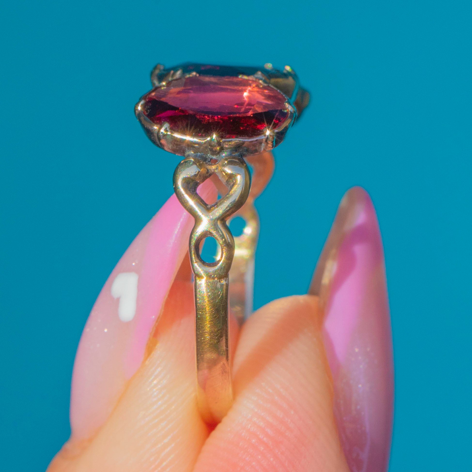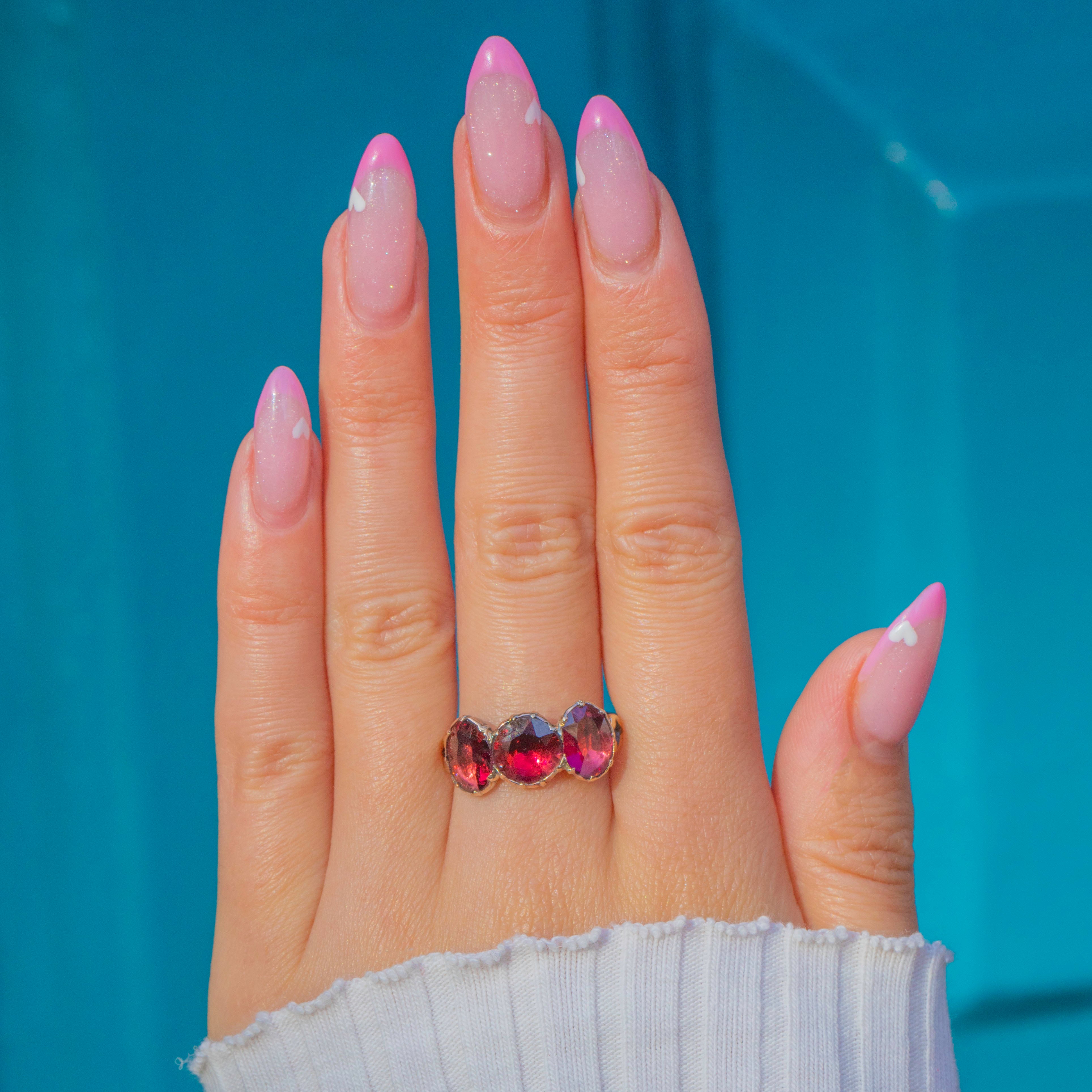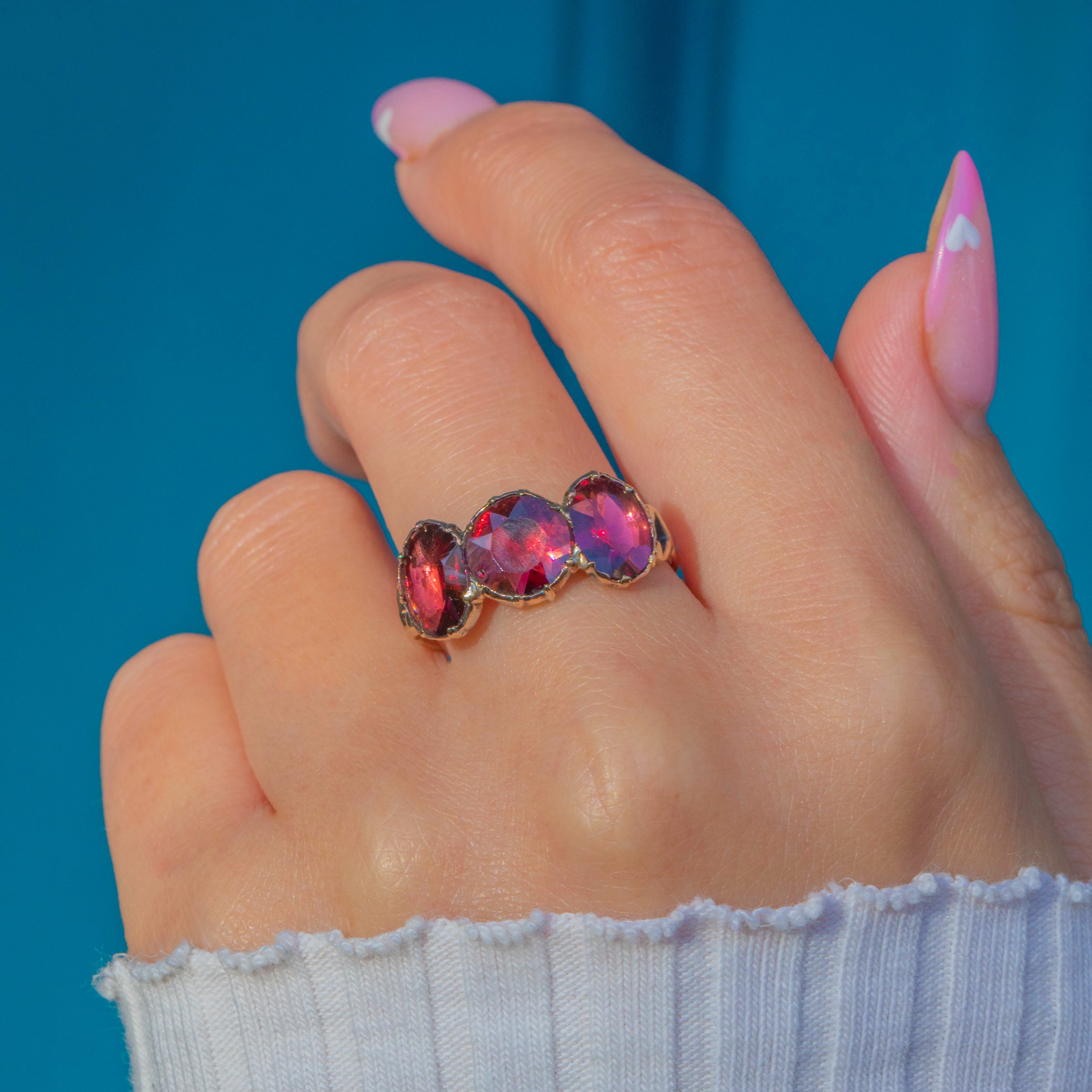 Georgian 15ct Gold Foiled Garnet Trilogy Ring, c.1820