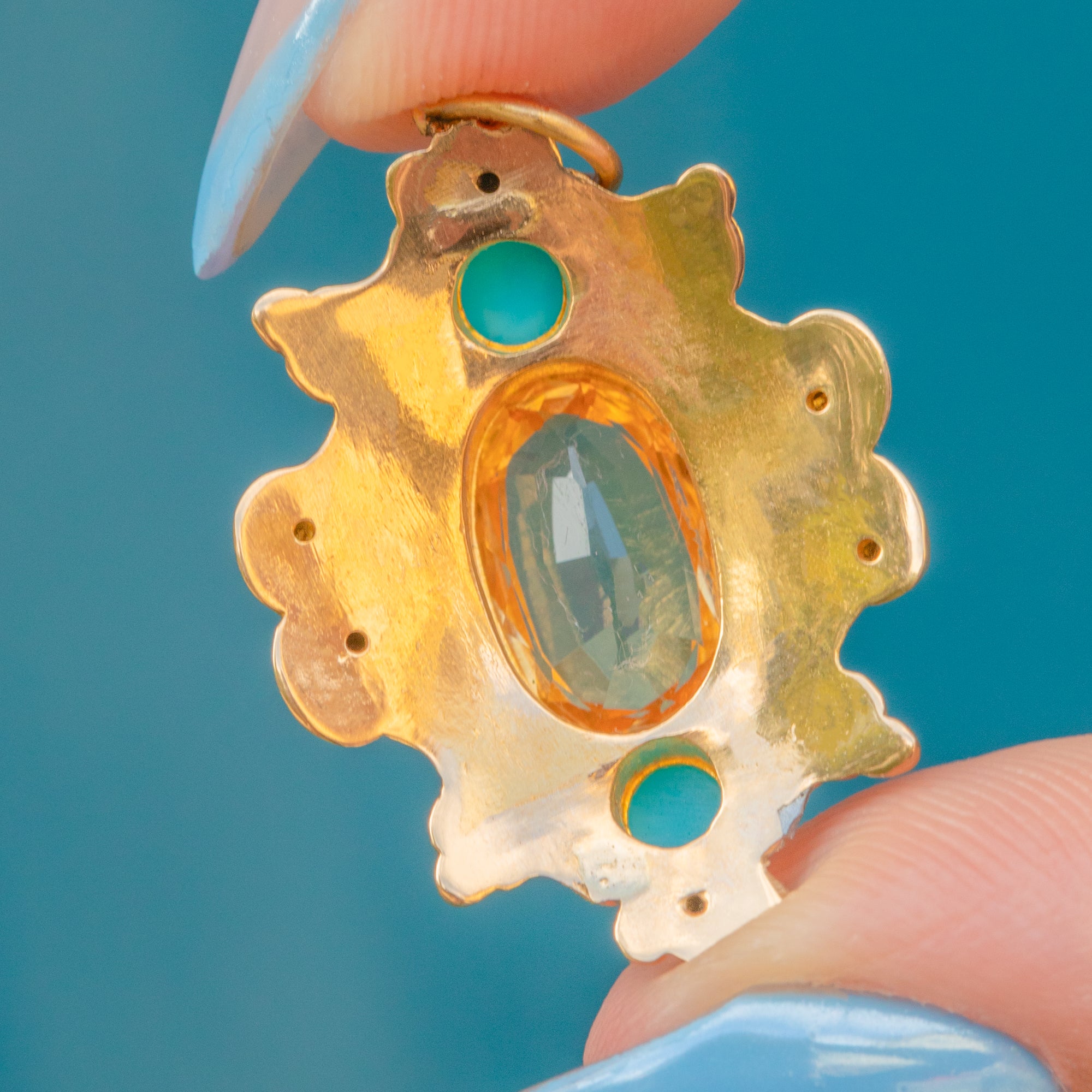 Georgian 18ct Gold Imperial Topaz Turquoise Pendant