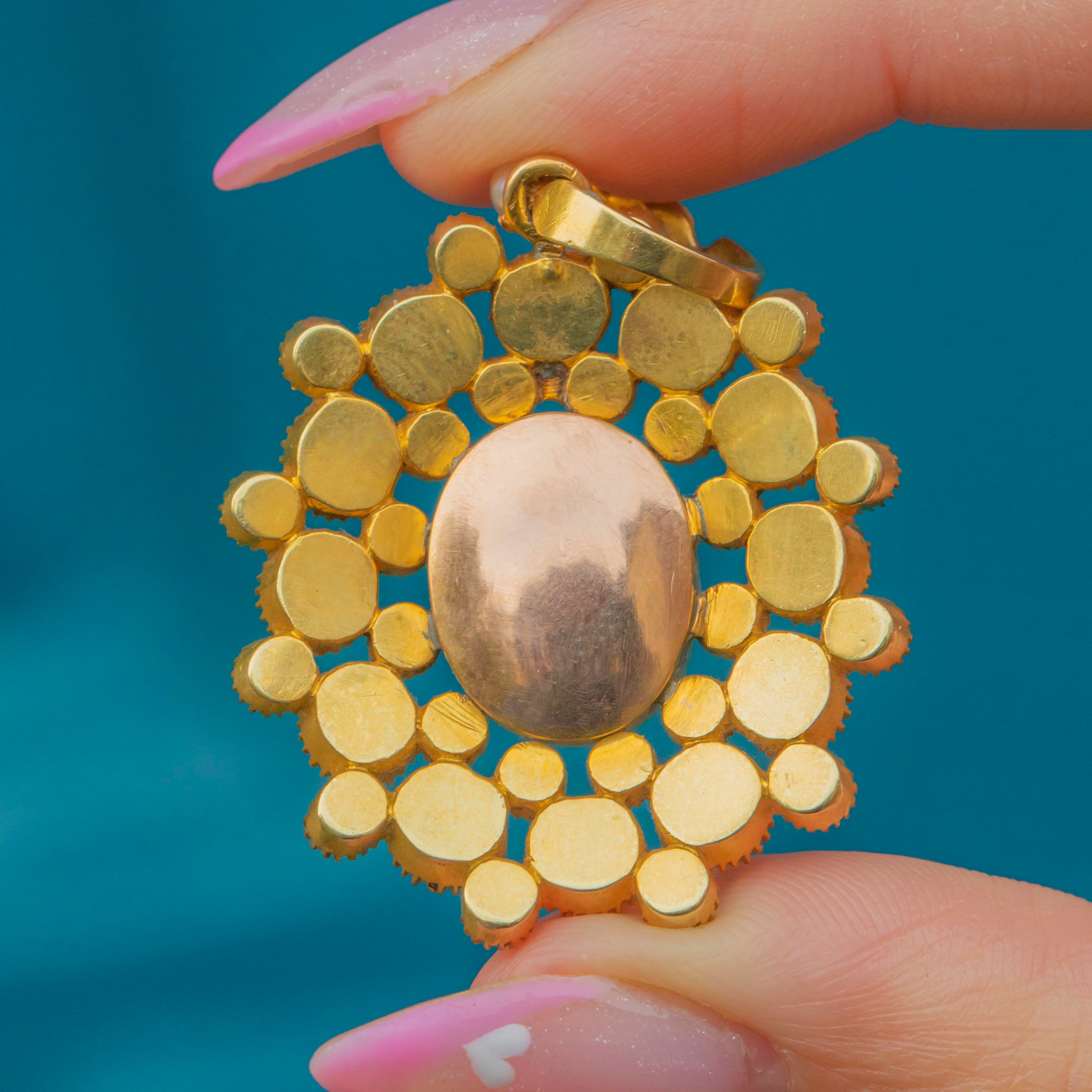 Georgian 18ct Gold Pink Amethyst Pearl Cluster Pendant, 2.40ct.