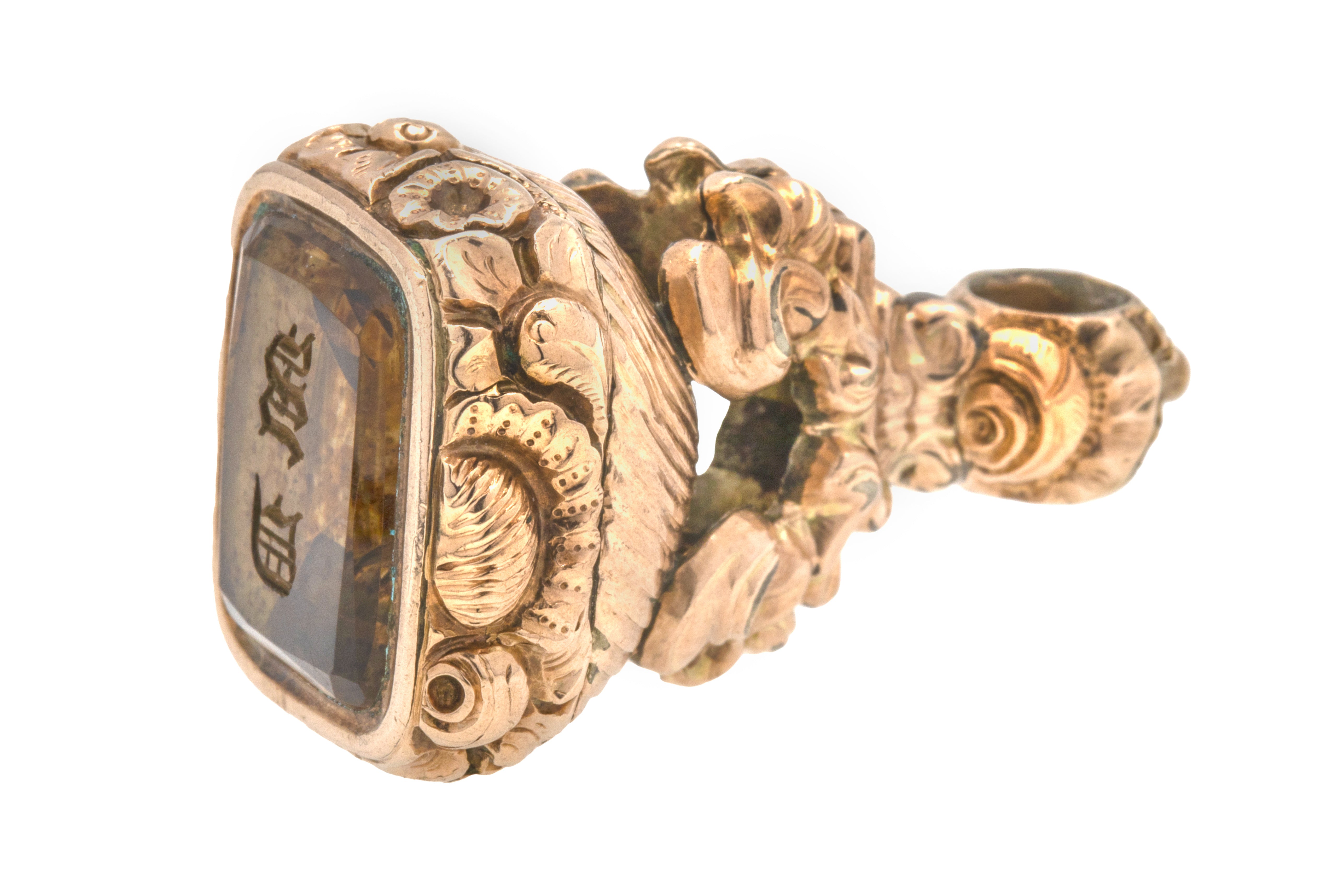 Georgian 9ct Gold Cased Citrine Fob Pendant, "MD" Intaglio