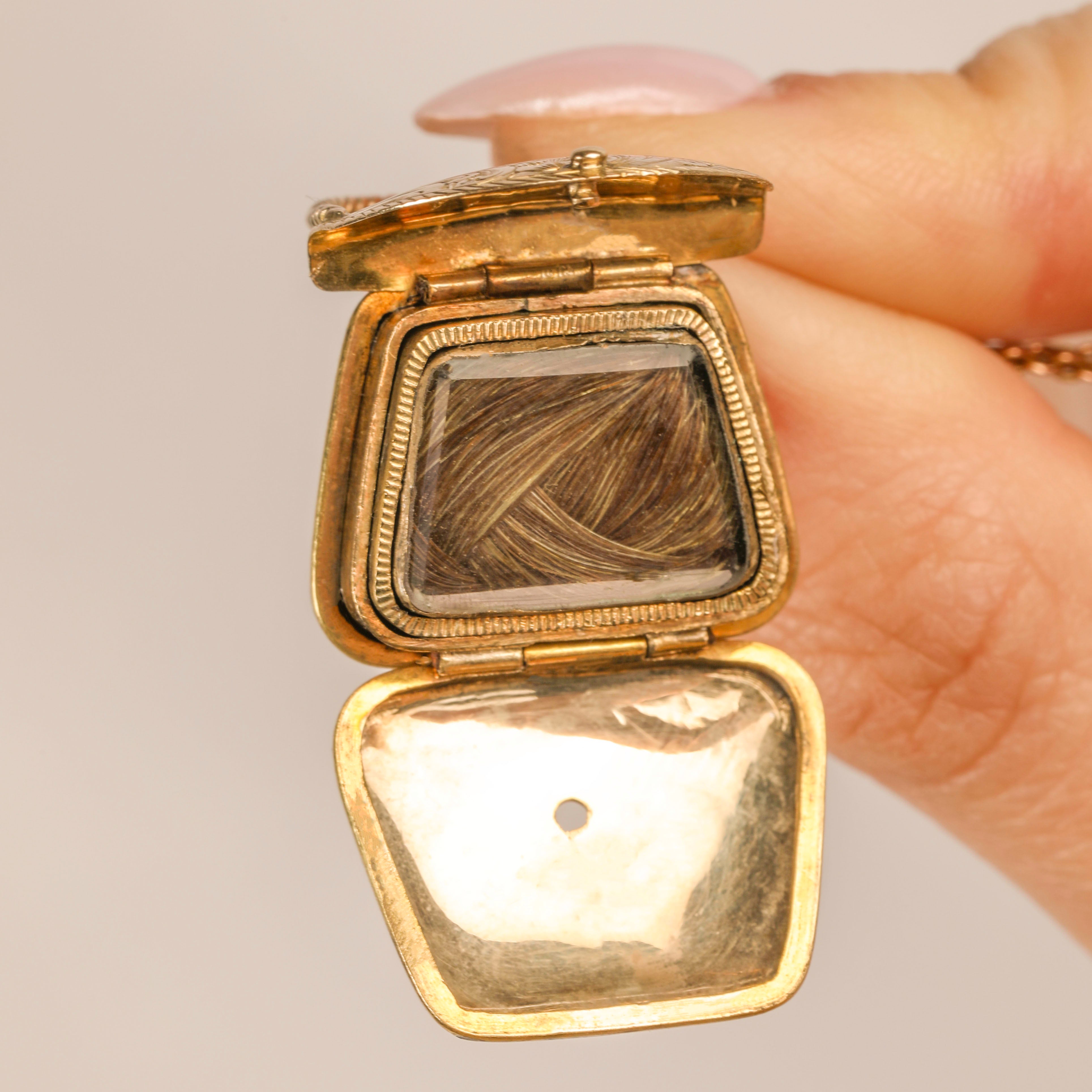 Georgian 9ct Gold Engraved Handbag Locket Pendant, c.1830