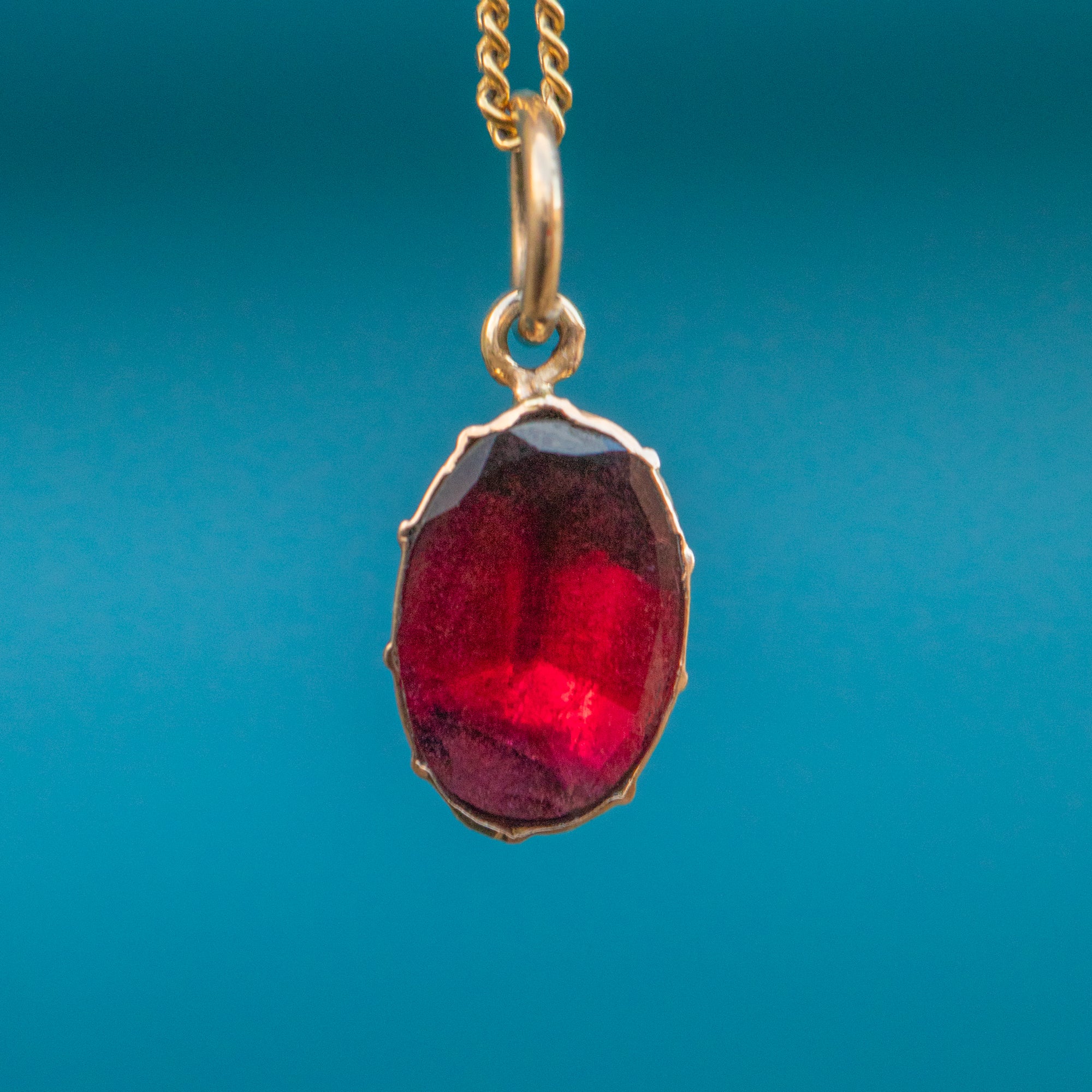 EXCELLENT. This Georgian 9ct Gold flat-cut Garnet charm is in excellent condition. Free from any visible signs of wear and secure within her collet setting, there is little to note other than she is a must-have!