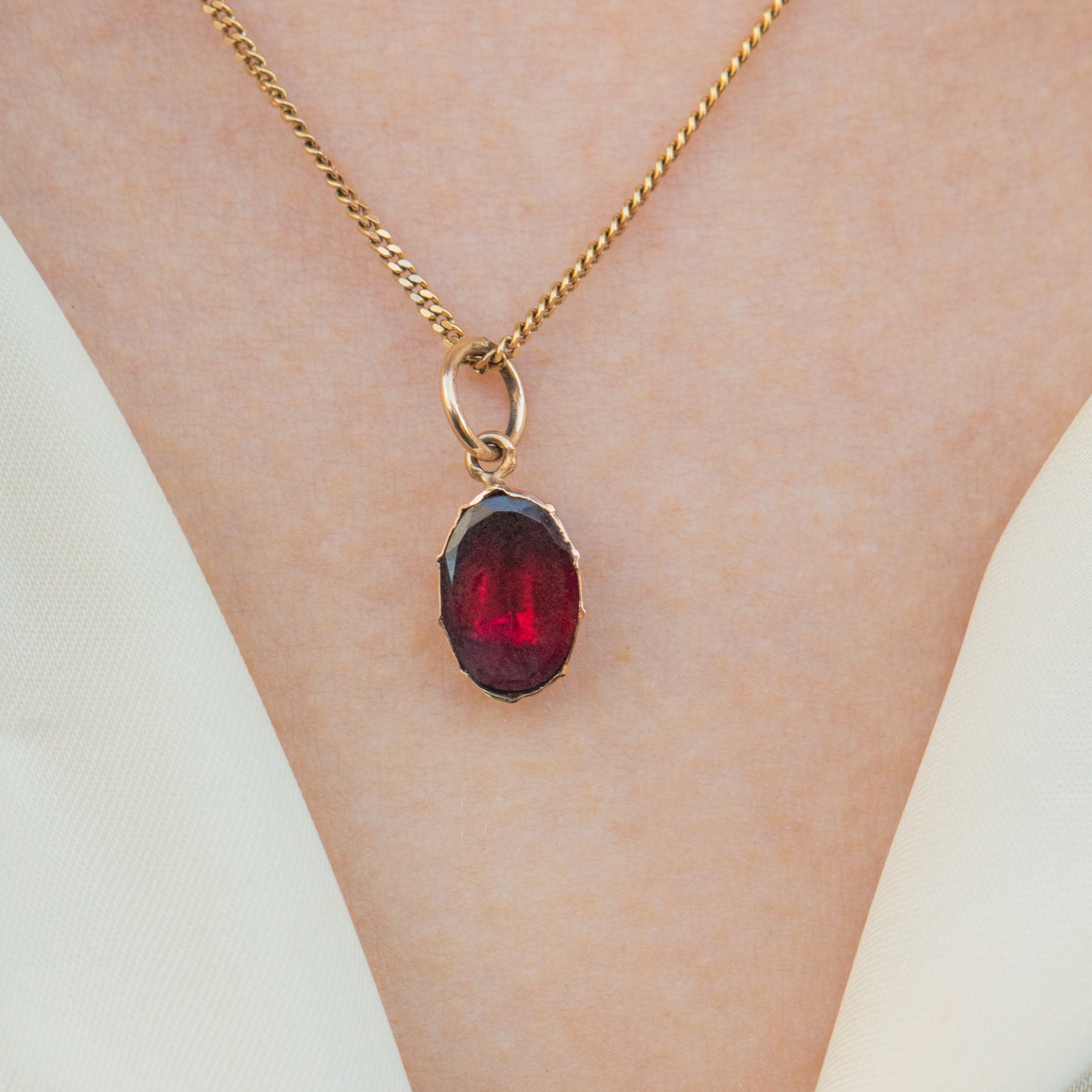 This juicy antique charm radiates gorgeous red wine hues, and sits beautifully against your neckline, with the 9ct Gold flat back owing itself to graceful wear. This beautiful Georgian Garnet is the perfect versatile piece to add to your collection.