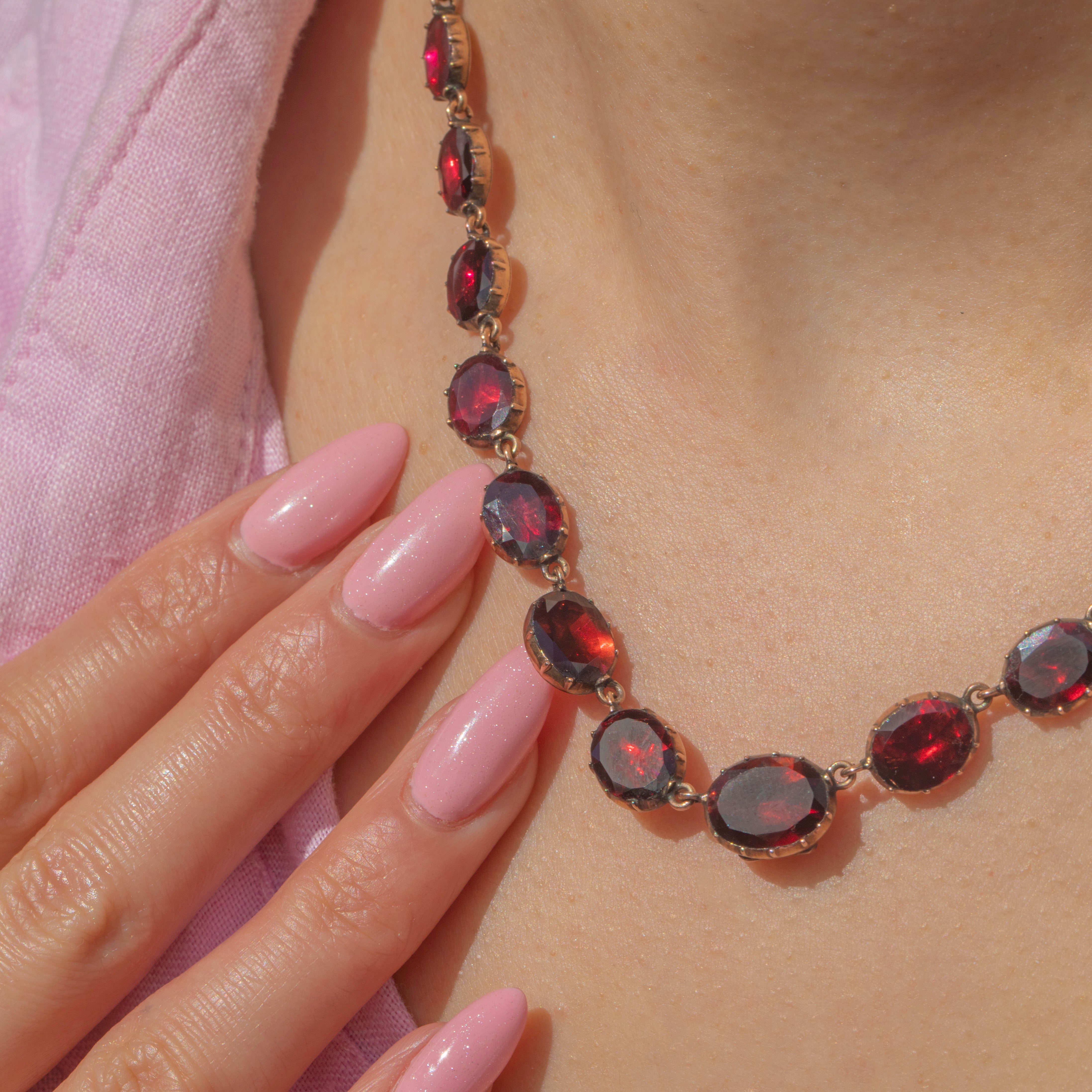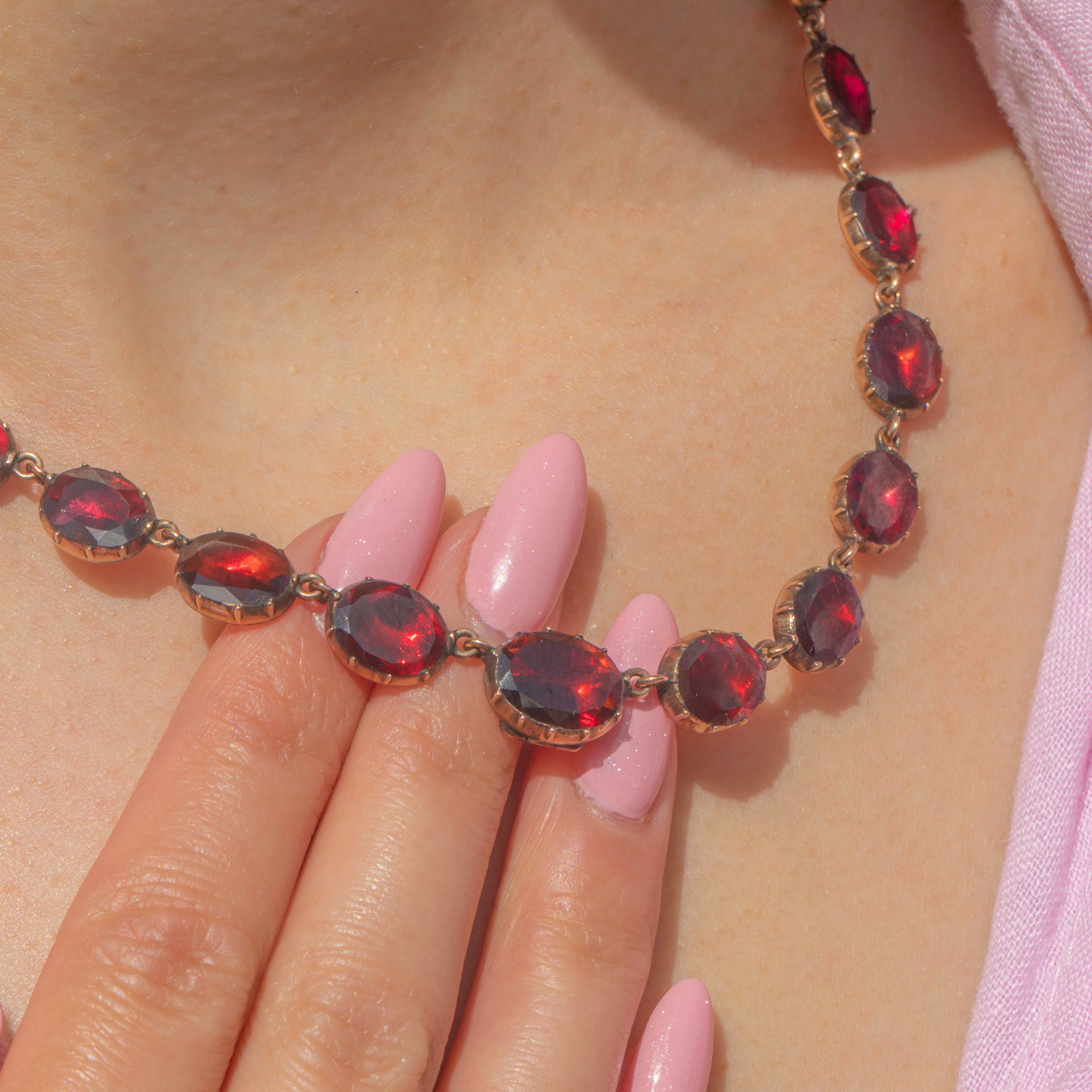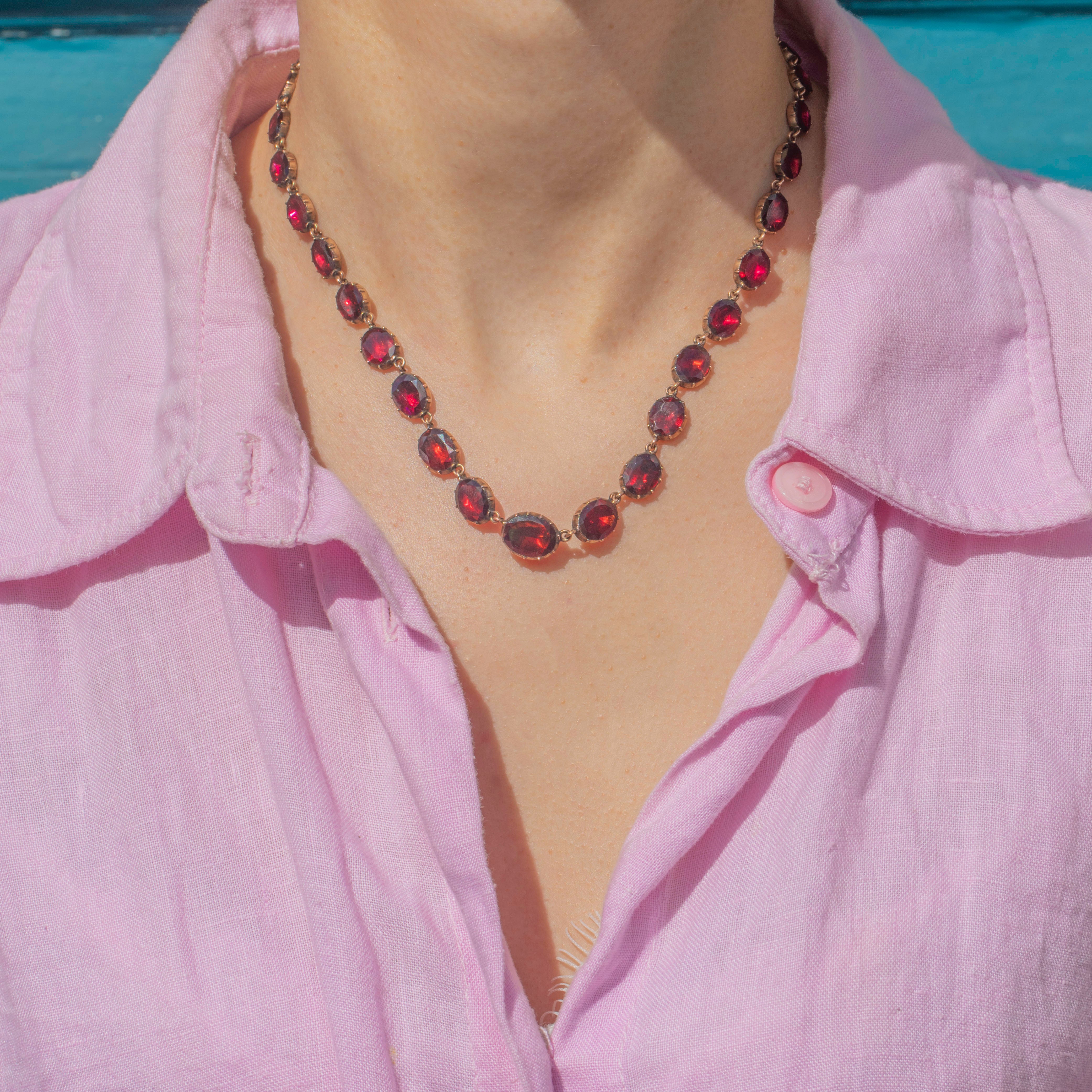 Georgian 9ct Gold Flat-Cut Garnet Riviere Necklace, 21.00ct