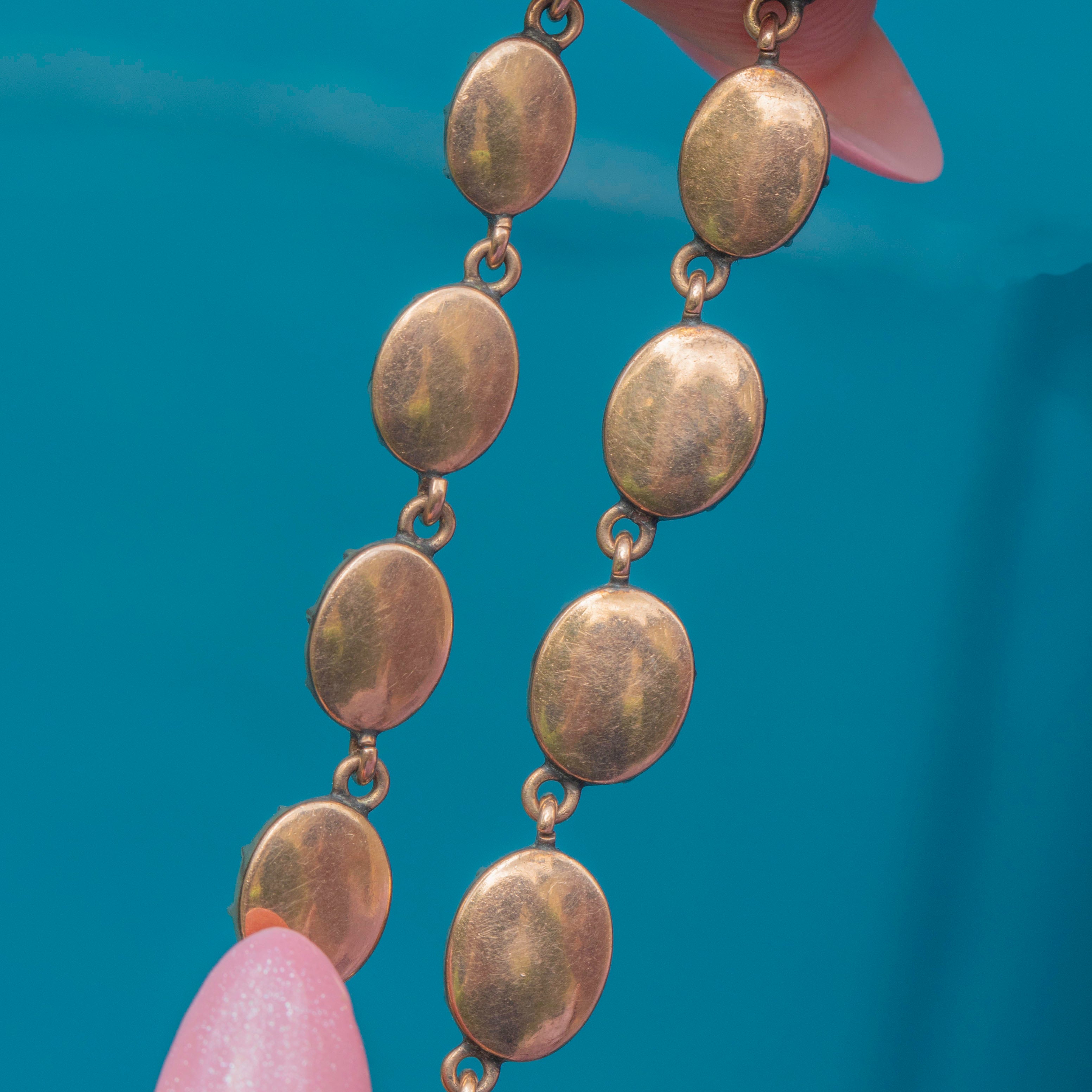 EXCELLENT: It is rare to find a Georgian necklace in such fabulous condition.  The backs are pristine, with no dings or dents - and this is definitely unusual for such an old necklace.  One of the smallest Garnets has a little chip (right around the back of the necklace), but the rest are all pristine.  The clasp is in perfect working order, and has a safety chain for your peace of mind.