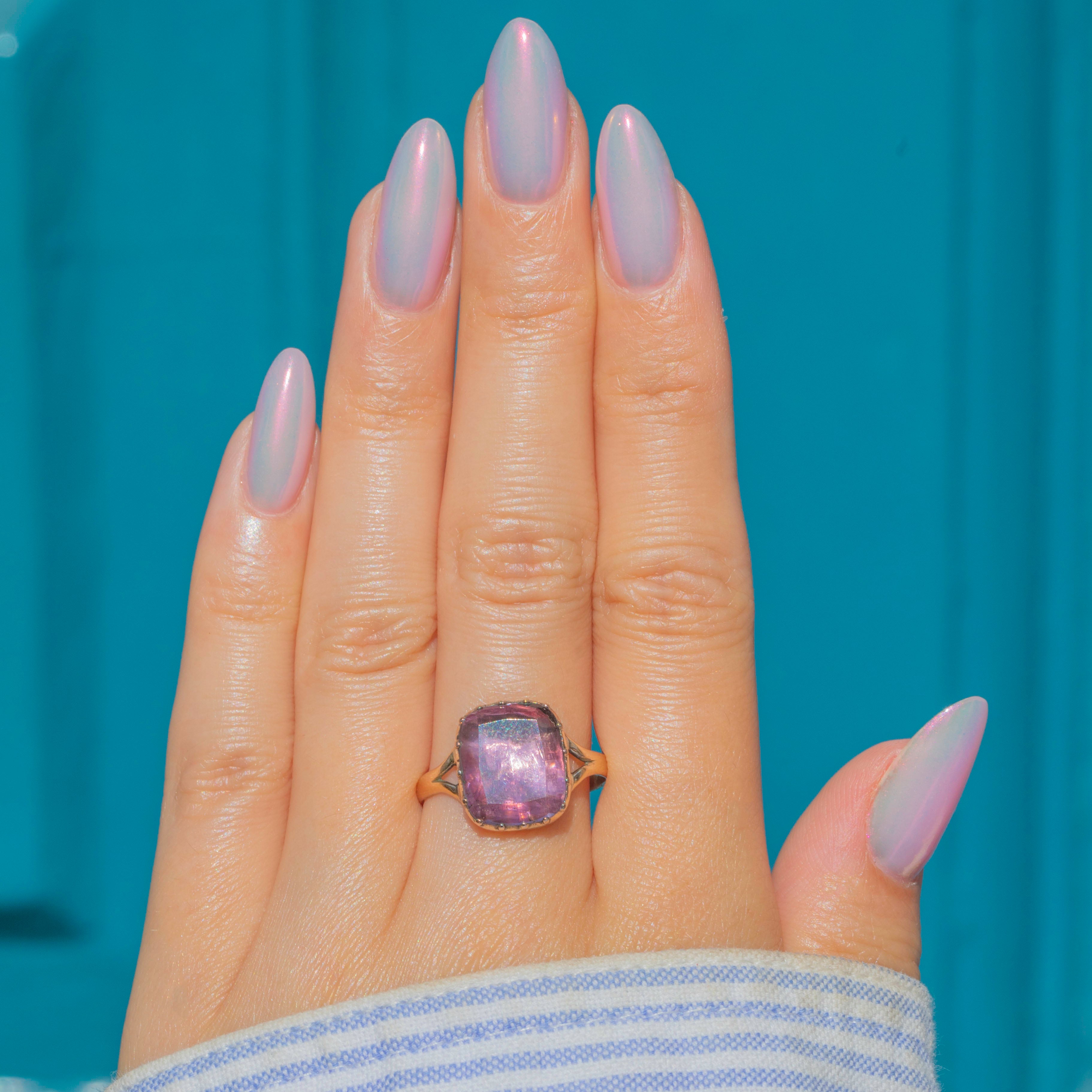A resplendent late-Georgian piece, this antique foiled Amethyst ring will add an elegant pop of colour to your ring stack!