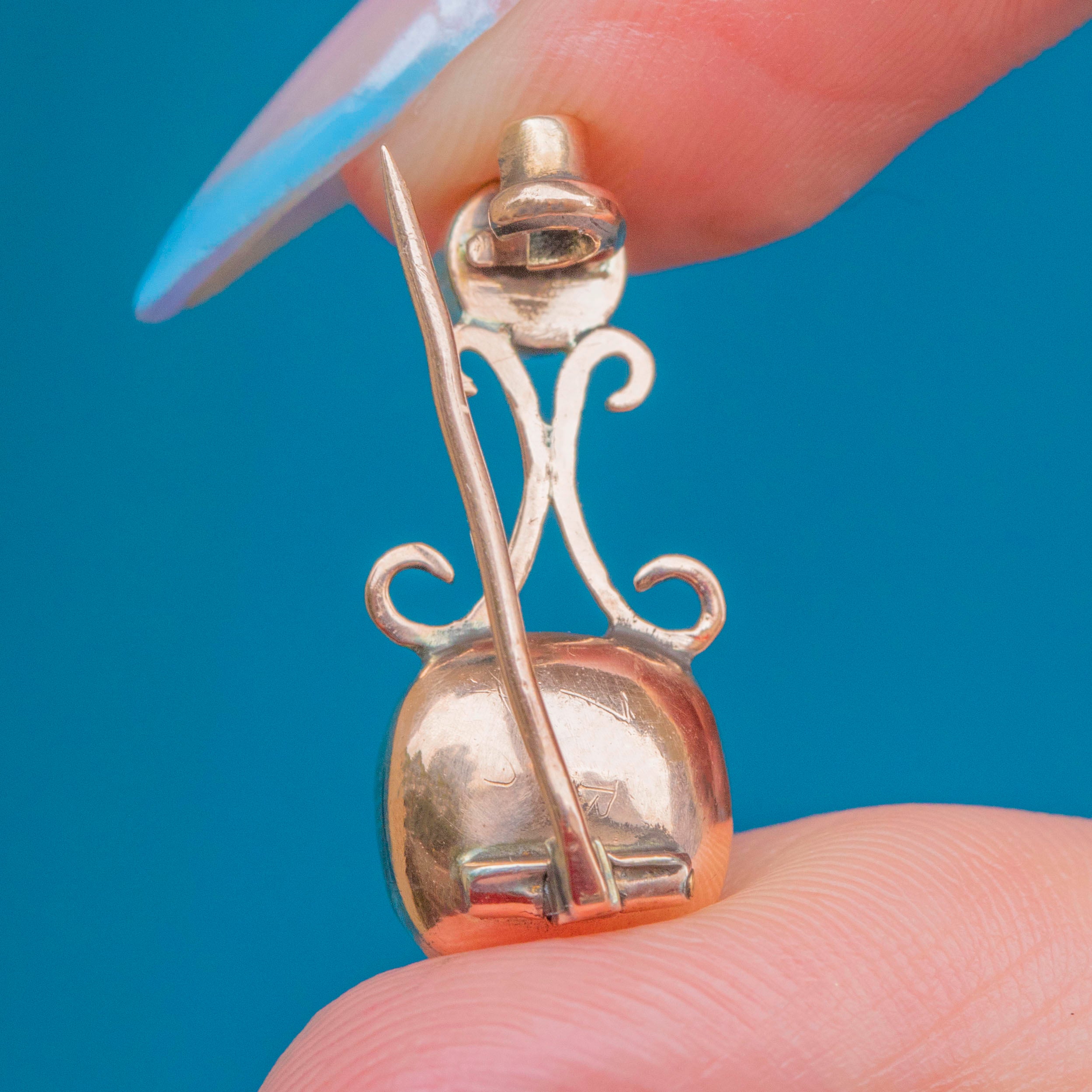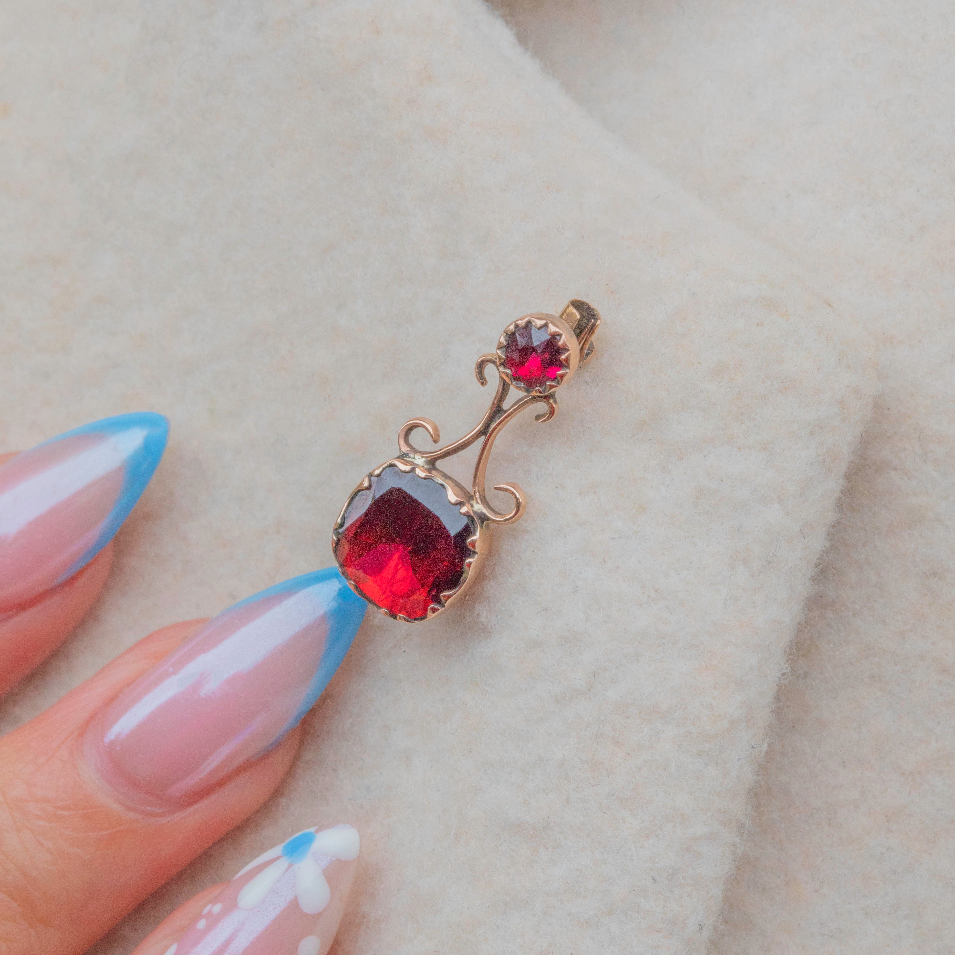 Petite and boasting bundles of character, this Georgian brooch flaunts two magnificently saturated flat-cut Garnets, arranged into a gorgeous Halley's comet formation.