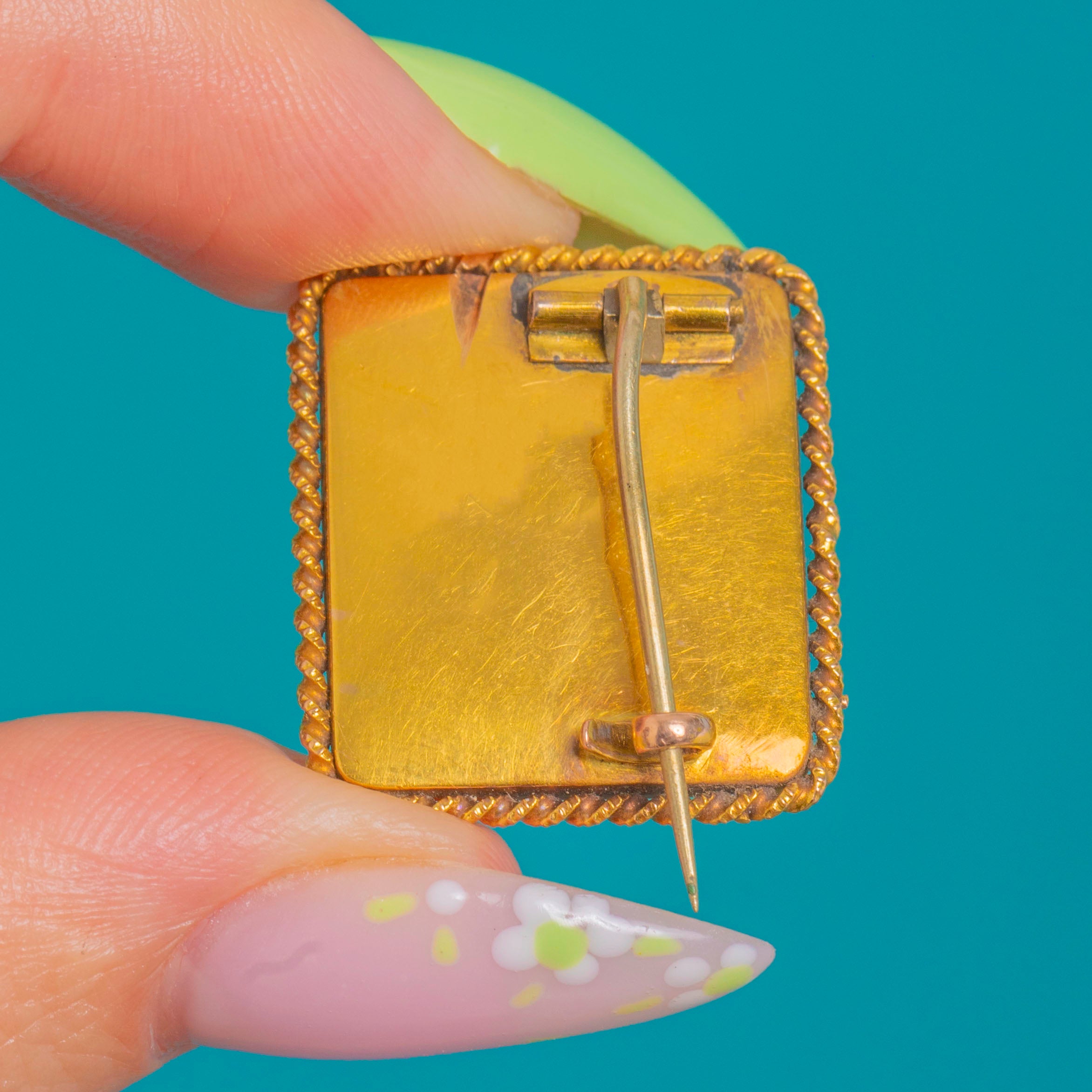 MEASUREMENTS: Brooch is 23mm long x 20mm wide.
