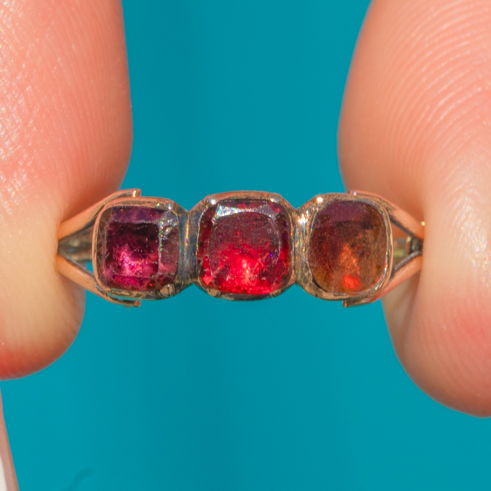 Georgian 9ct Gold Table Cut Garnet Trilogy Ring