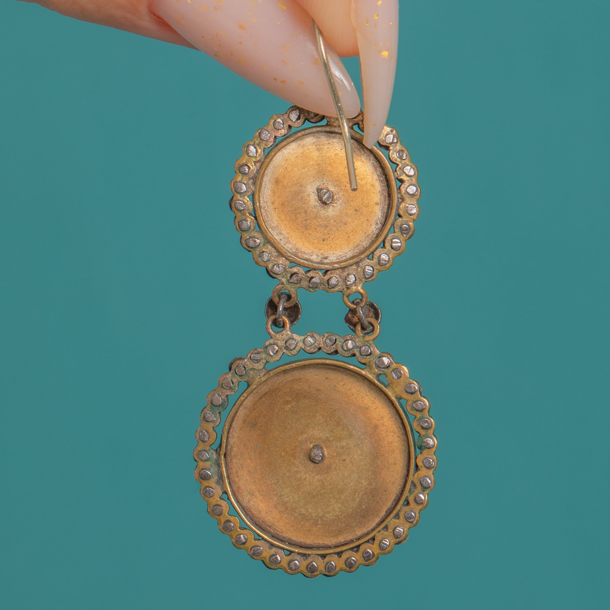 Expertly hand-fabricated with closed backs and scalloped milegrain rims, they embody the allure of early 19th-century style with a nod to Queen Anne elegance. Finished with simple shepherd-hook fittings, they offer superb antique presence and movement. Hooks can be replaced with 18ct Gold on request.