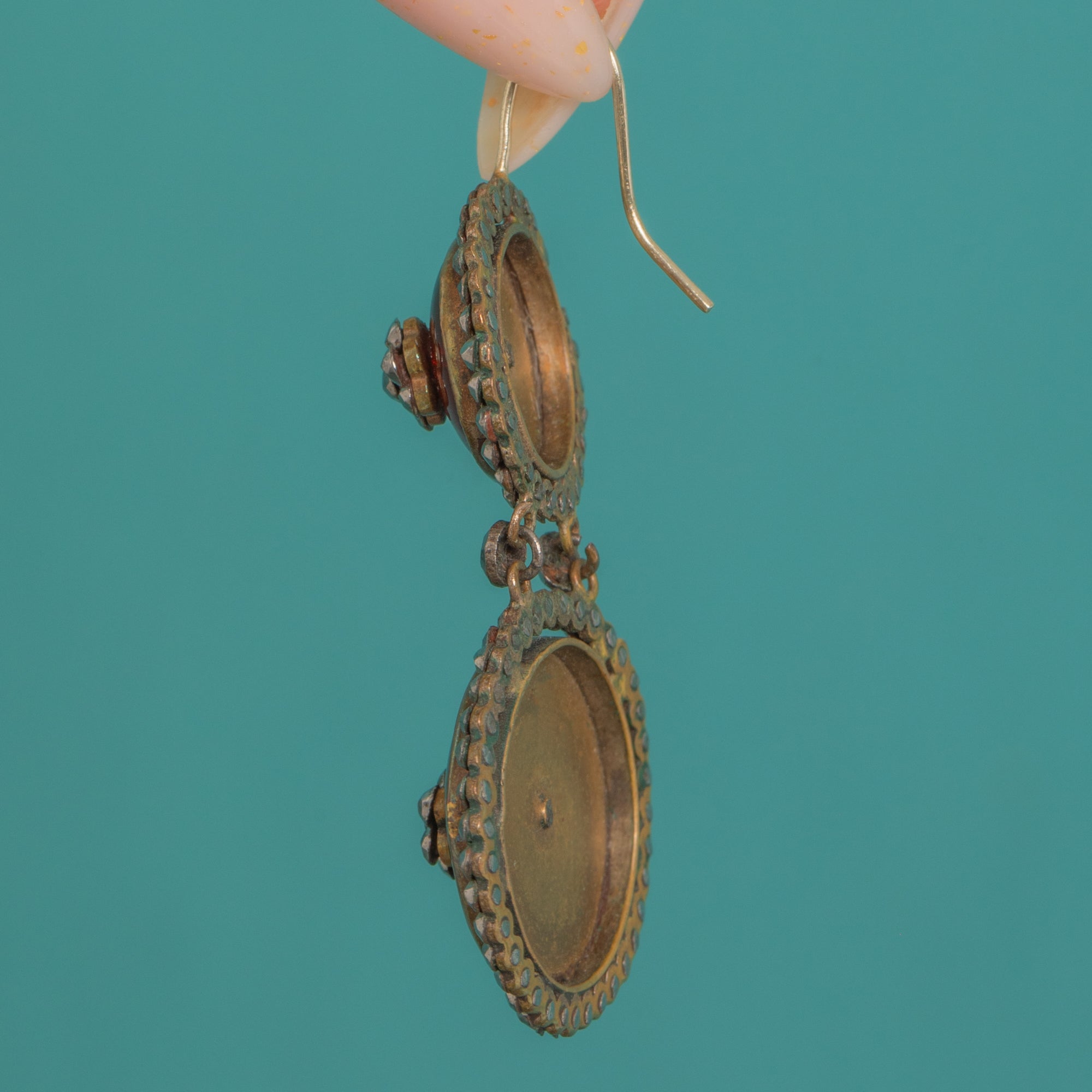 EXCELLENT: Paste domes show light abrasions and minor edge wear commensurate with age; Cut Steel shows minor dulling and the odd tiny nick under magnification. Settings display attractive antique patina with some oxidation on the reverse; articulation is secure and free-moving. Ear wires appear later replacements; no losses or structural repairs observed.