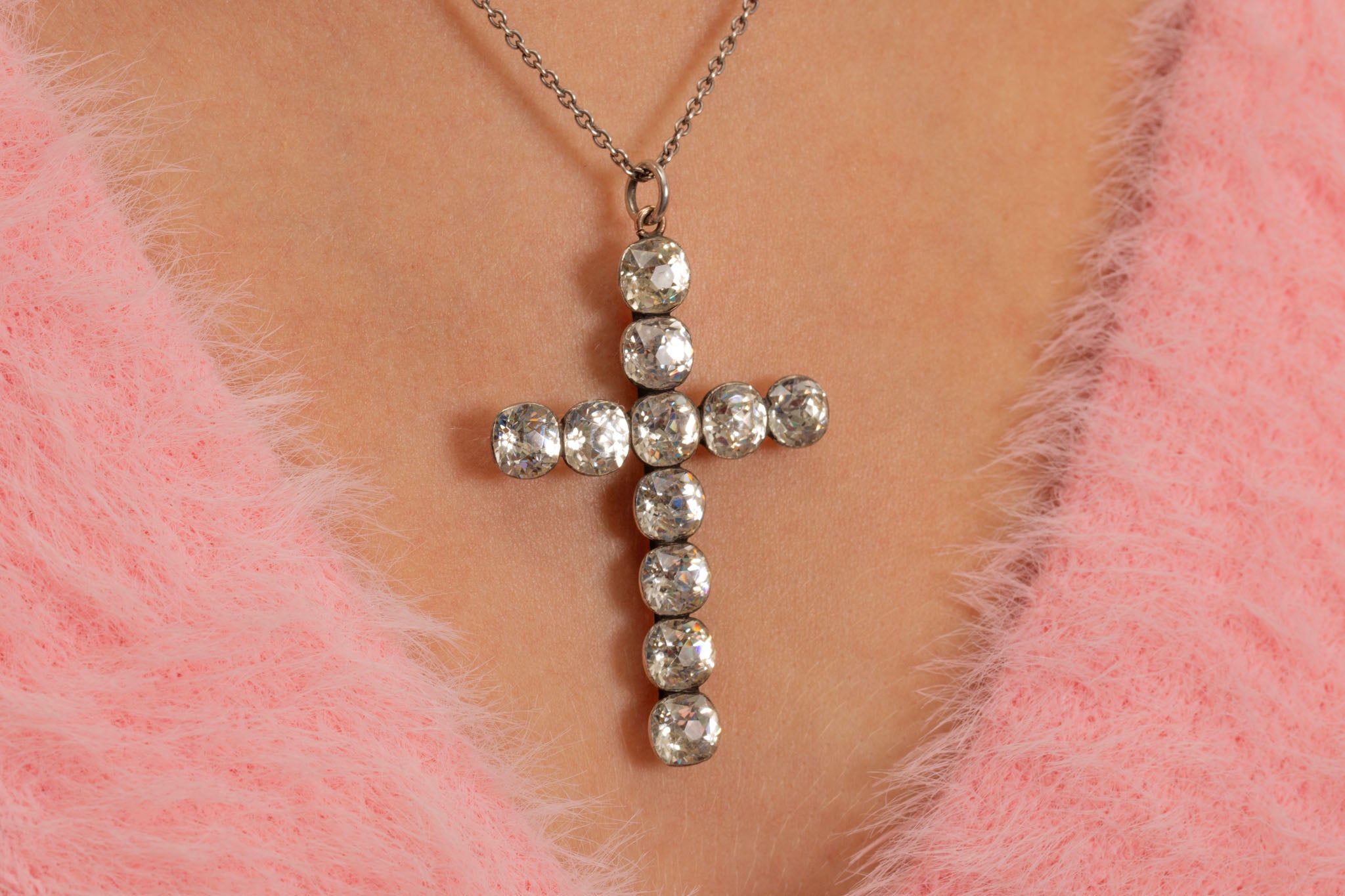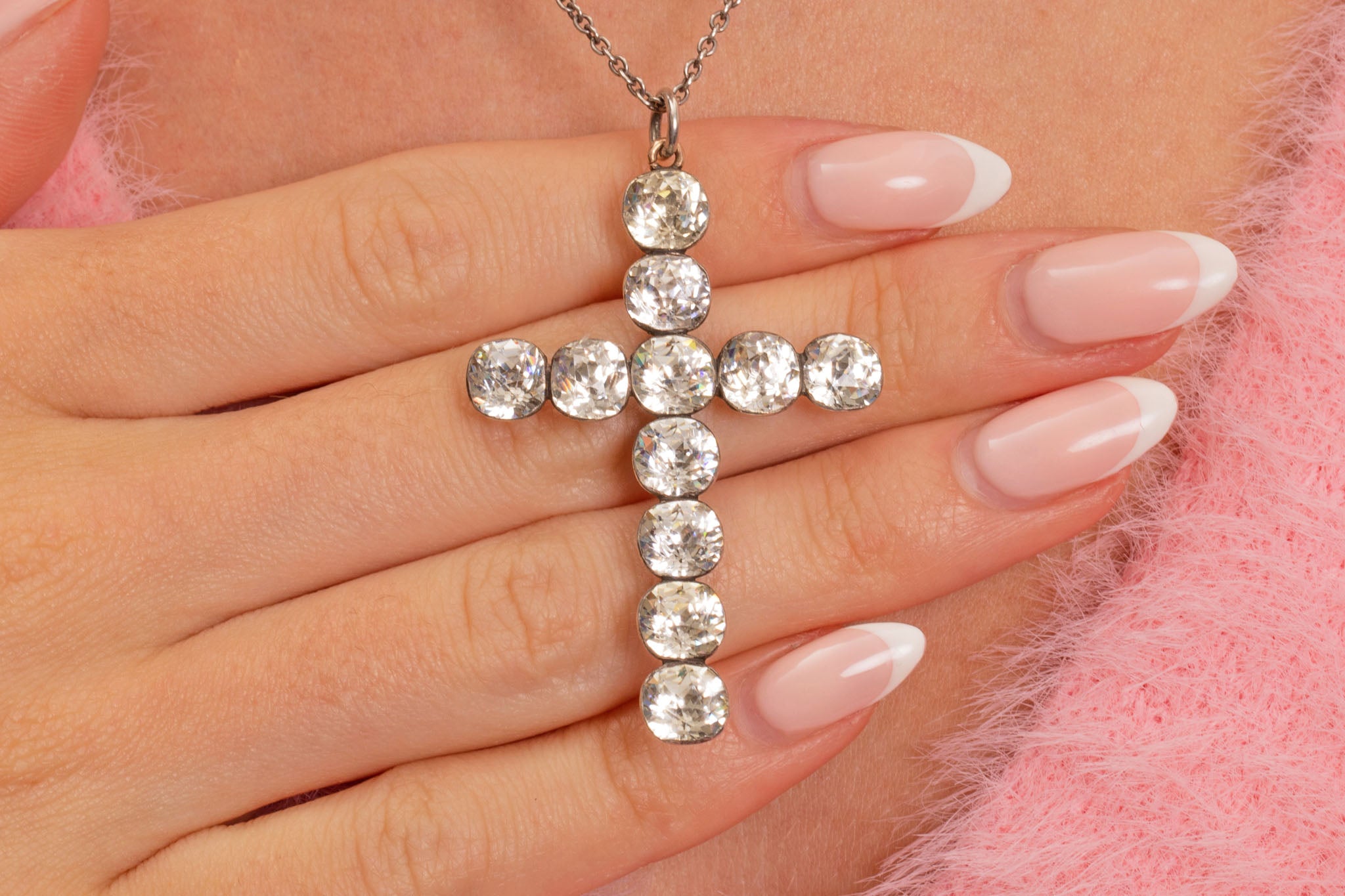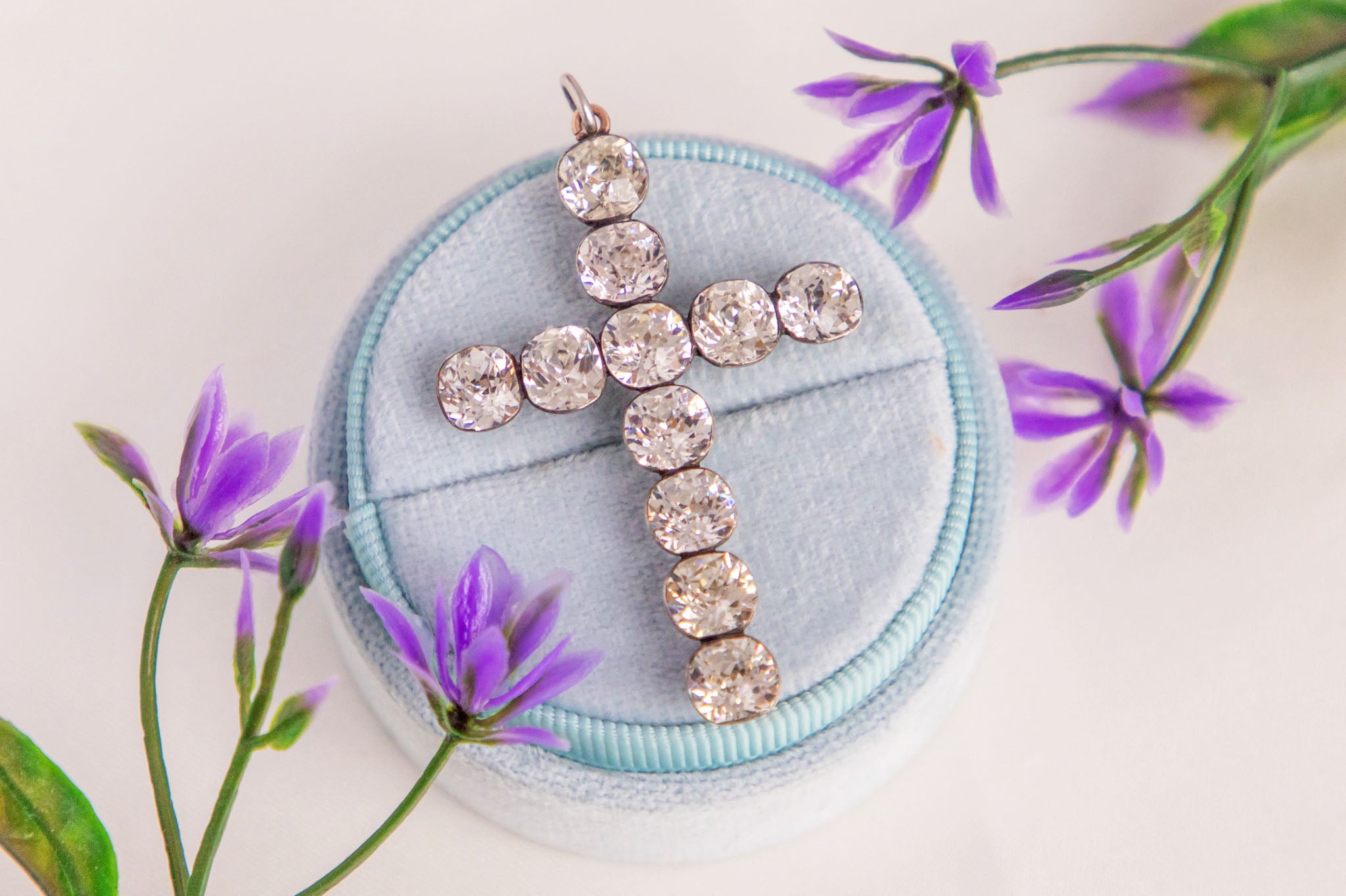 EXCELLENT: This Georgian Paste Silver cross is in exceptional condition for its age. In fact, we would even be so bold to say that this is one of the finest antique Paste we have ever seen, the sparkle and scintillation bounce off each facet - it's truly mesmerising. There is some light wear on the Silver backs, but this is easily forgiven considering its age, and we are more than confident that you can enjoy this wonderful treasure for many more moons to come!