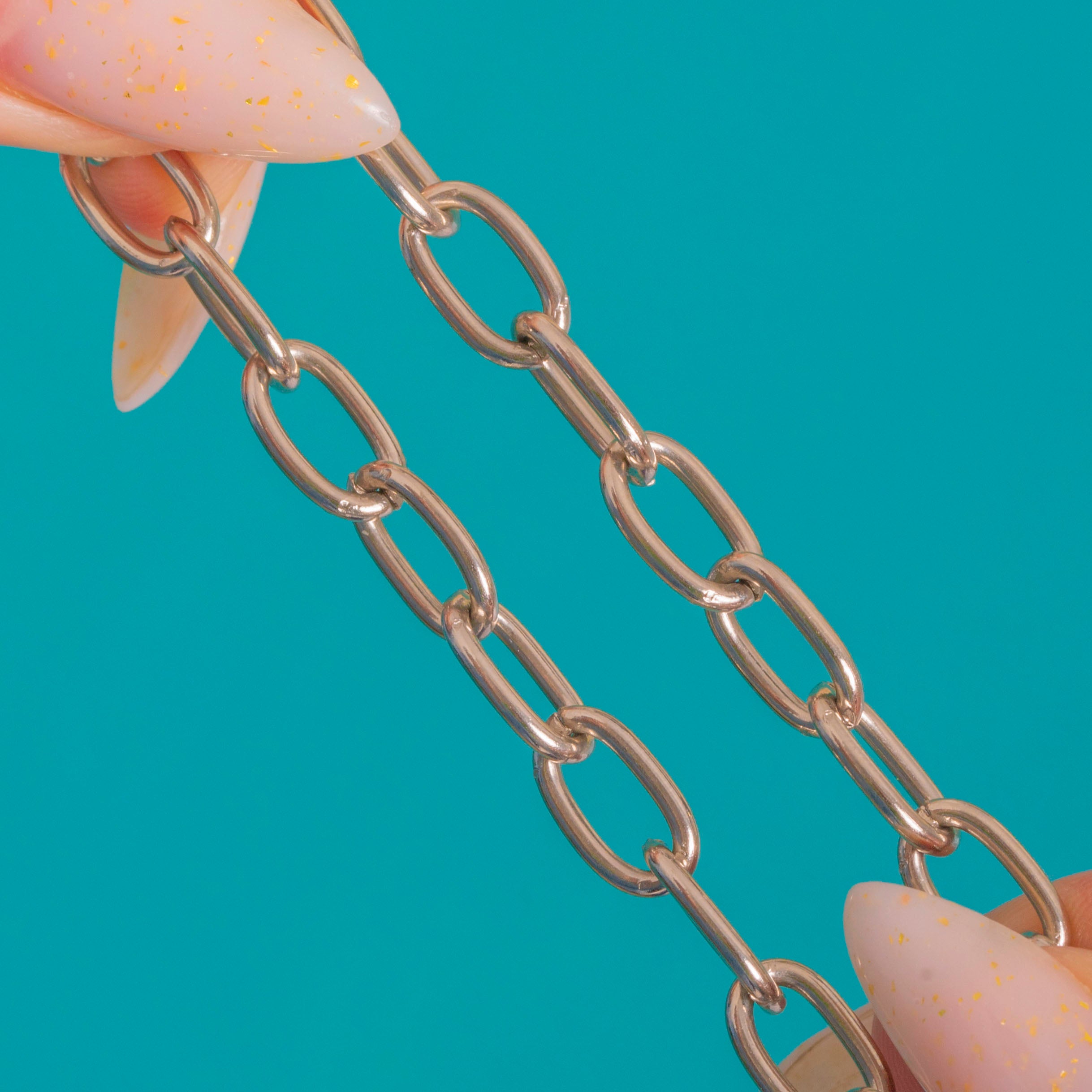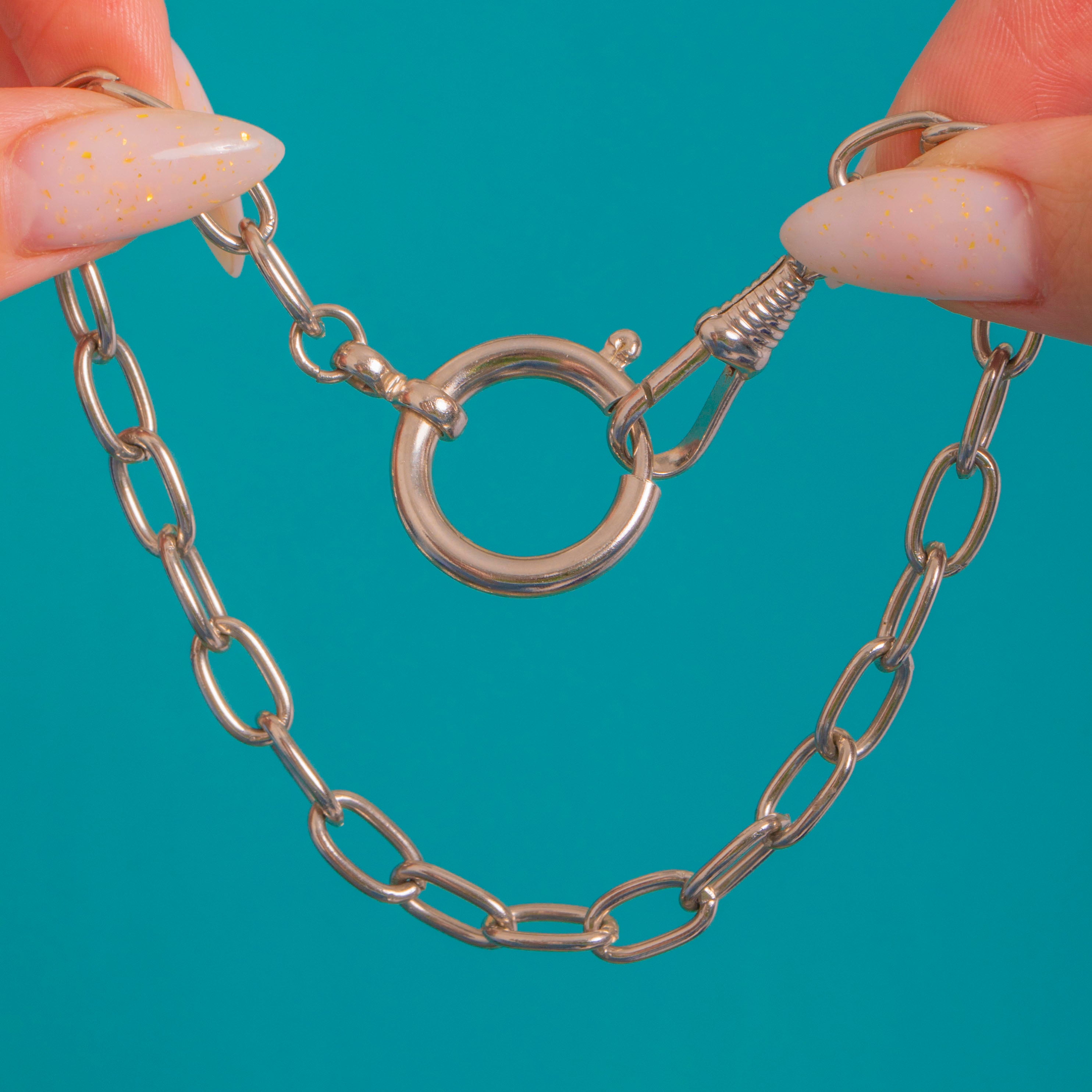 Sleek, versatile and undeniably chic, this Victorian chain extender marries elongated oval links with classic watch-chain hardware for a look that’s both refined and utilitarian. The polished links flow into an oversized bolt-ring and a spring-loaded dog-clip with a ribbed collar, creating a satisfying focal point that’s as practical as it is stylish.