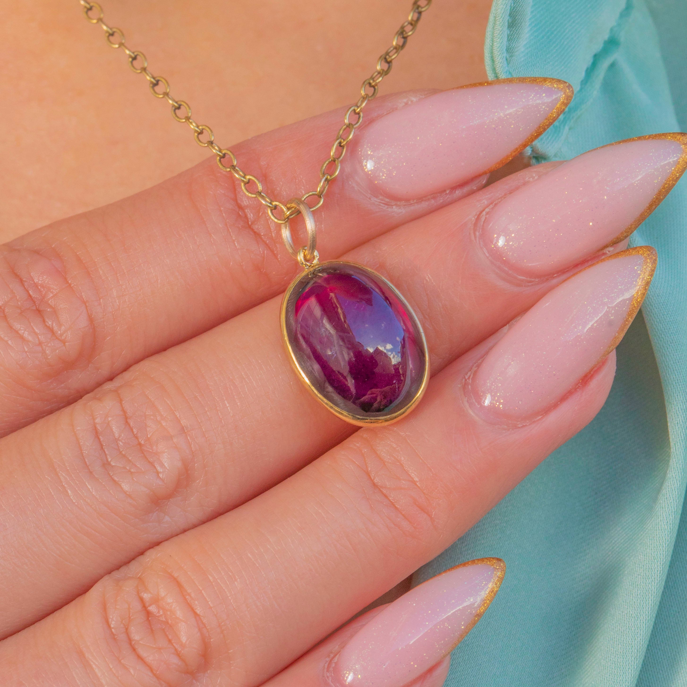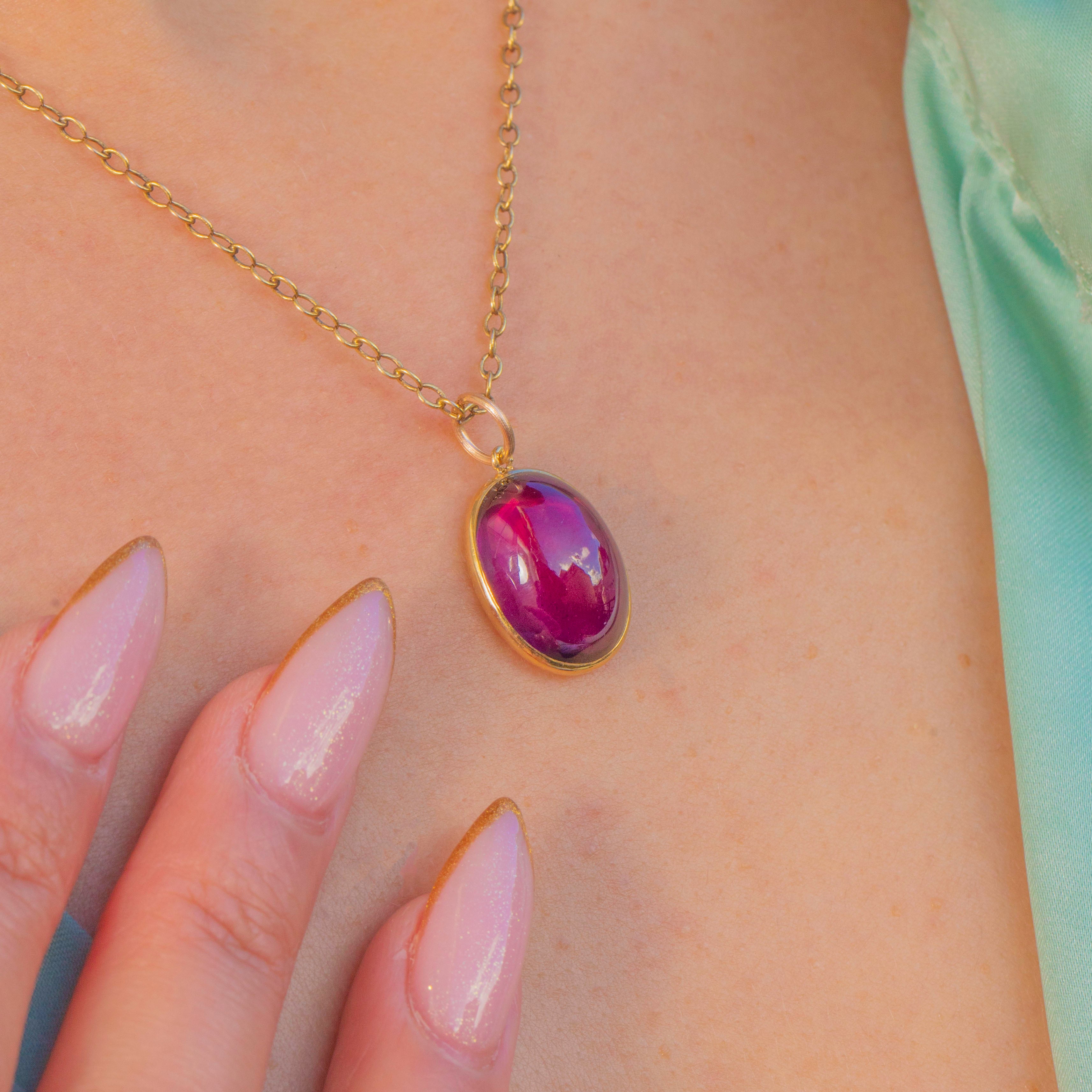 Perfect worn alone or layered into your charm stack, it’s a chic vintage piece with a generous Garnet of approximately 2.20ct, adding a striking pop of colour to any chain.