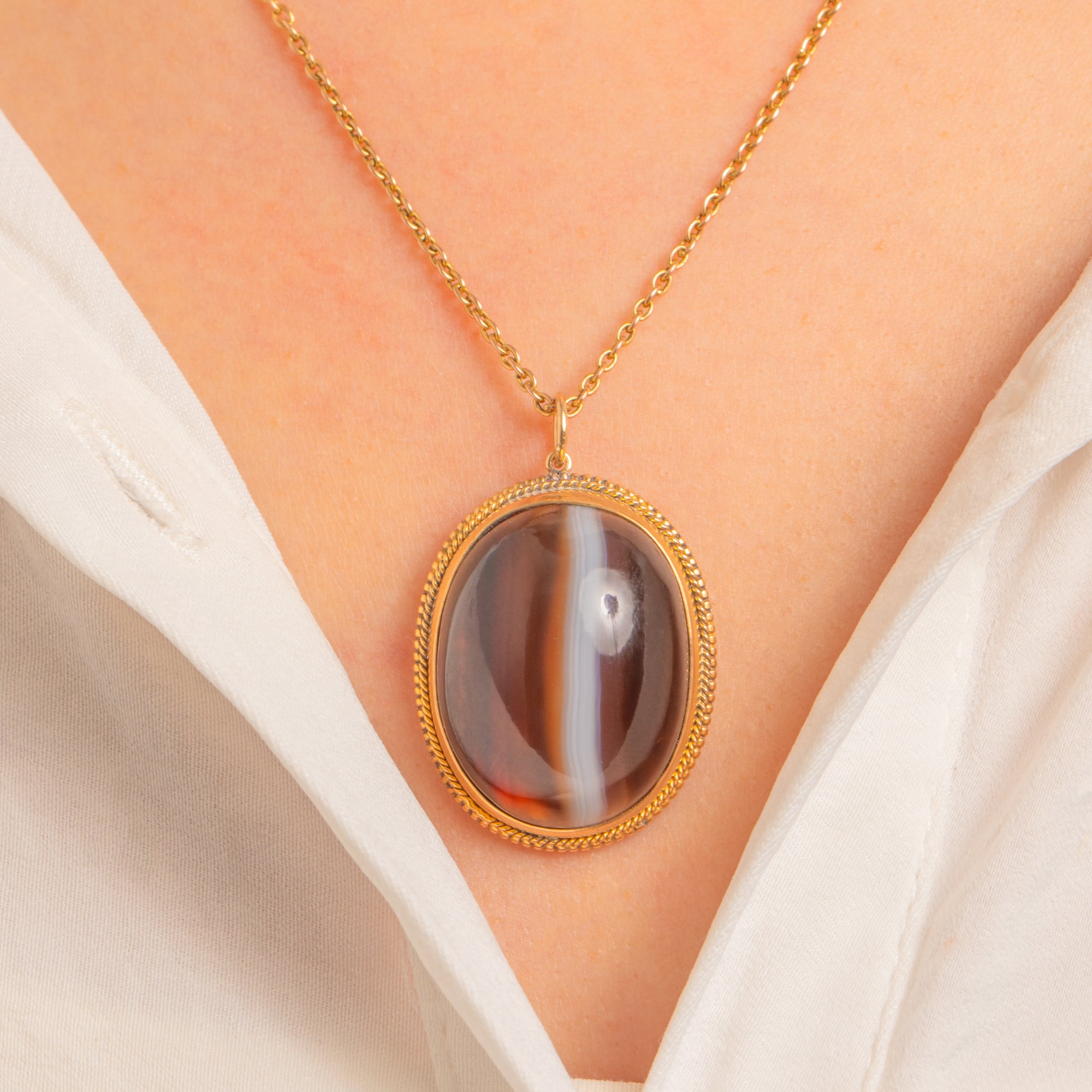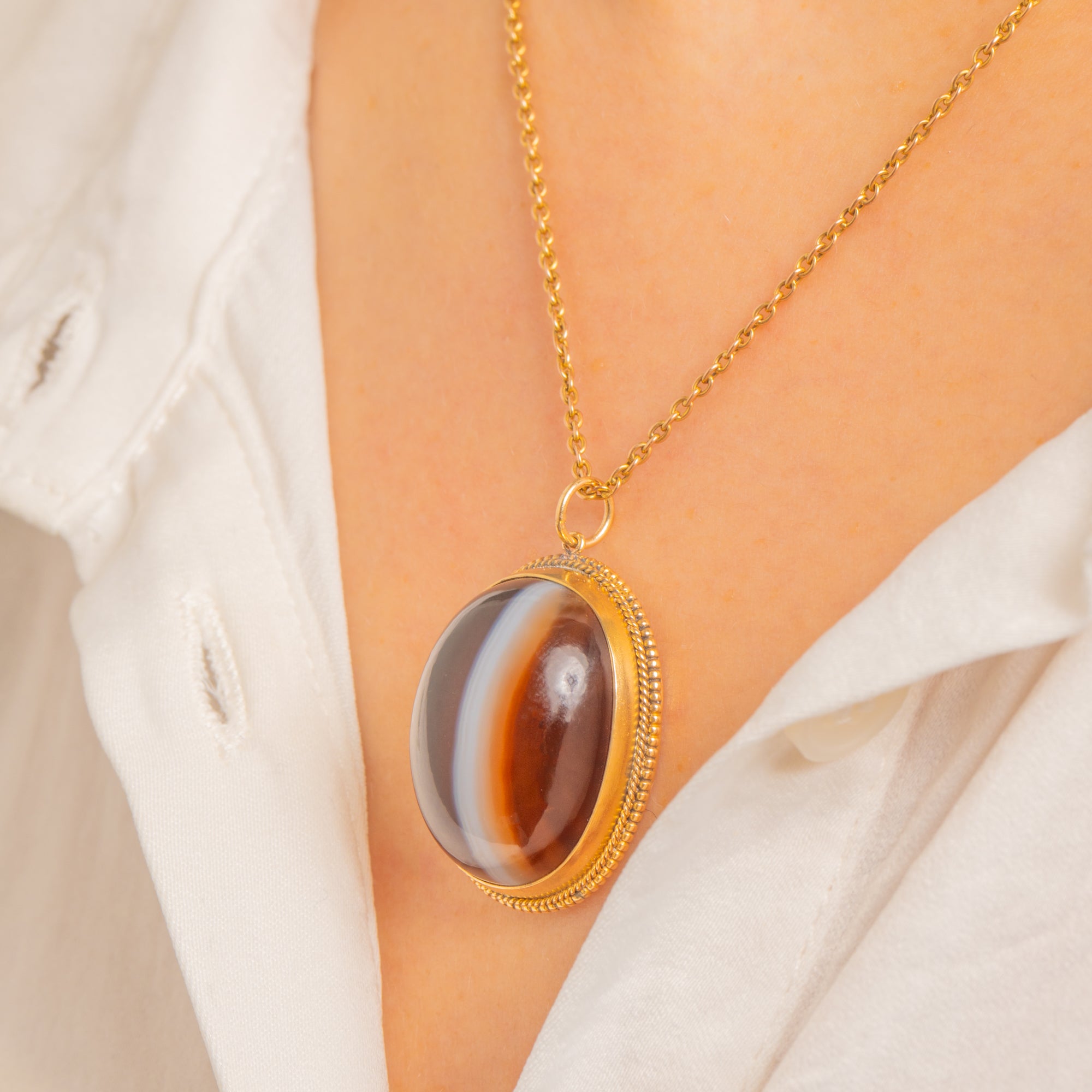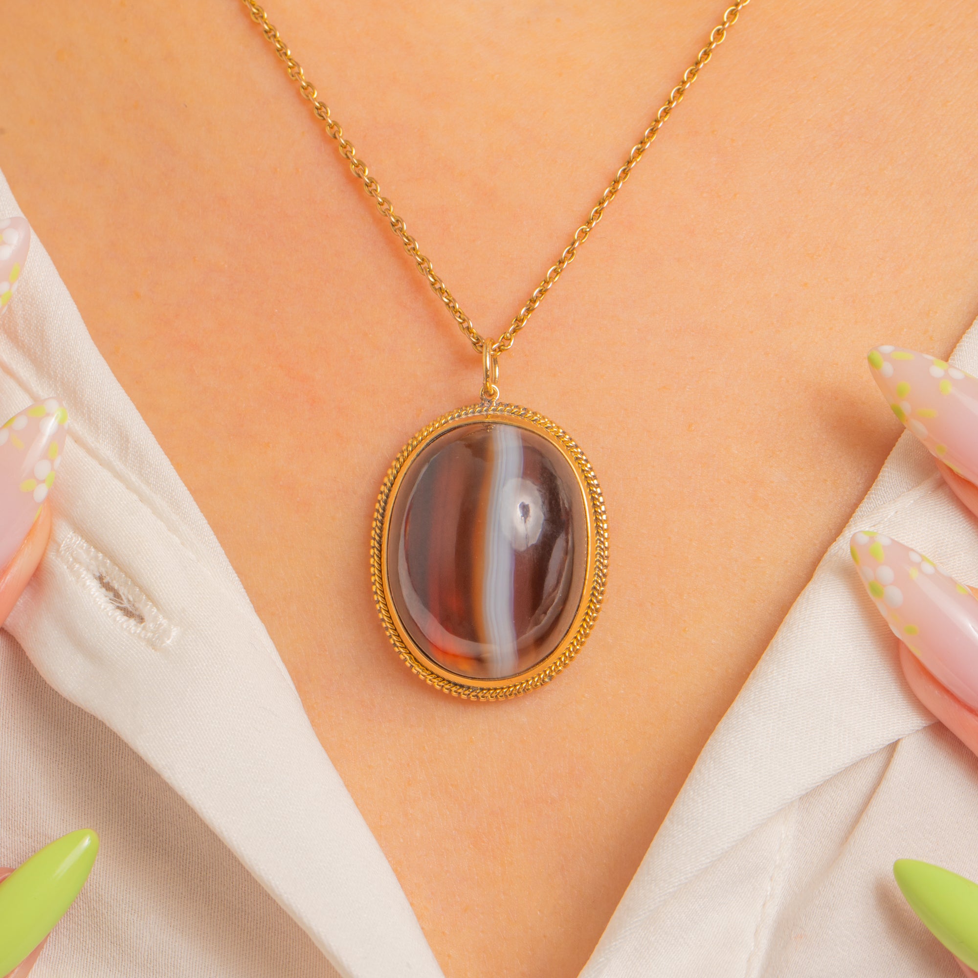 Glowy Victorian Banded Agate Charm Pendant