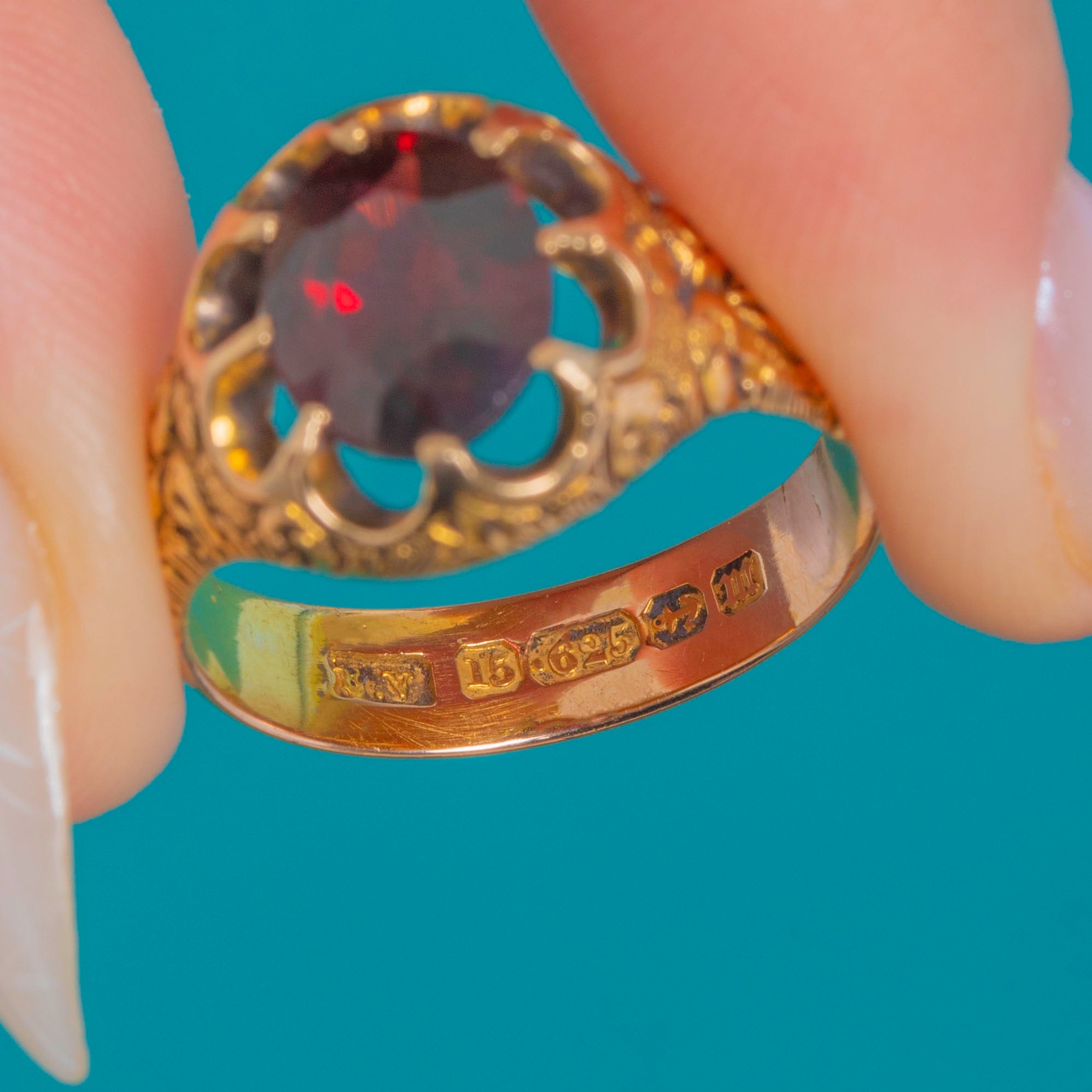 Victorian 15ct Gold Garnet Buttercup Engraved Ring Item added