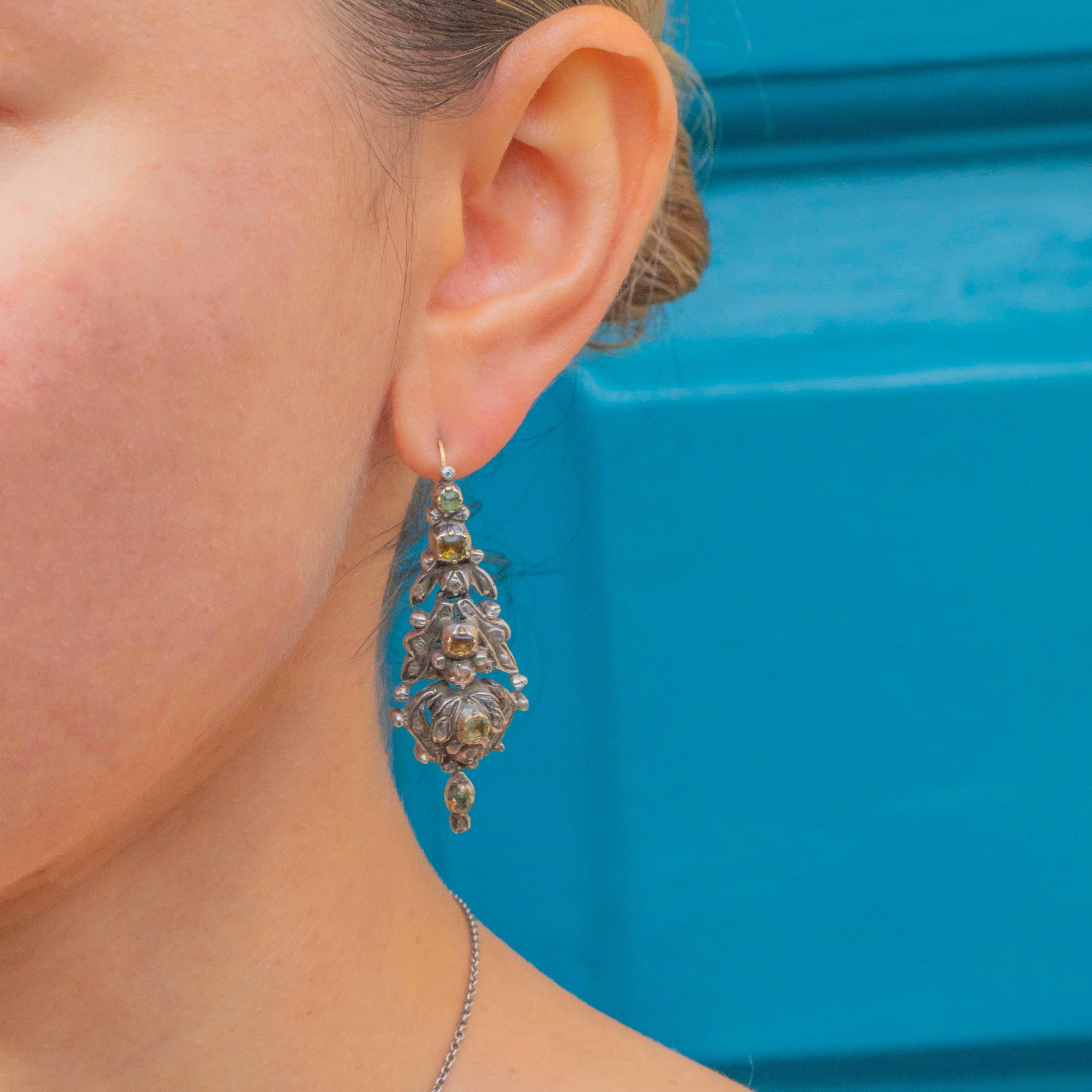 The dramatic elongated form, intricate metalwork and rich contrast between Silver and Gold are hallmarks of Iberian design, making these earrings both historically significant and undeniably glamorous. A superb collector’s piece for those drawn to early European jewellery of remarkable craftsmanship and presence.