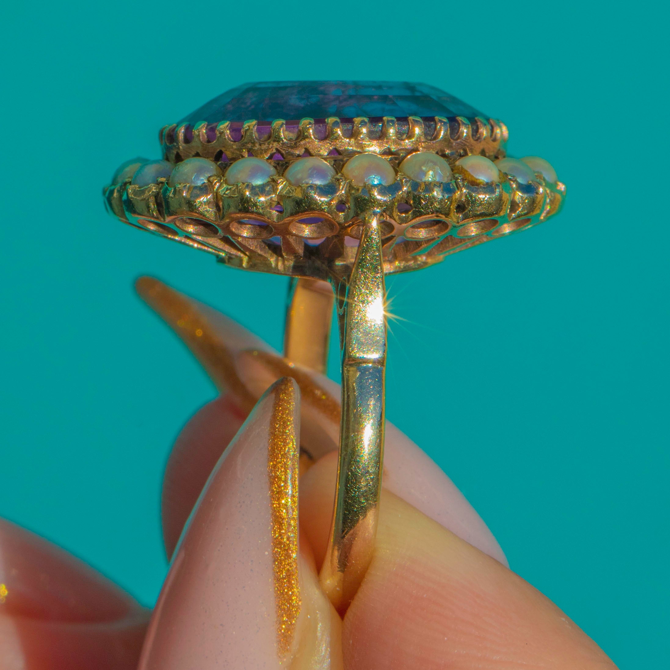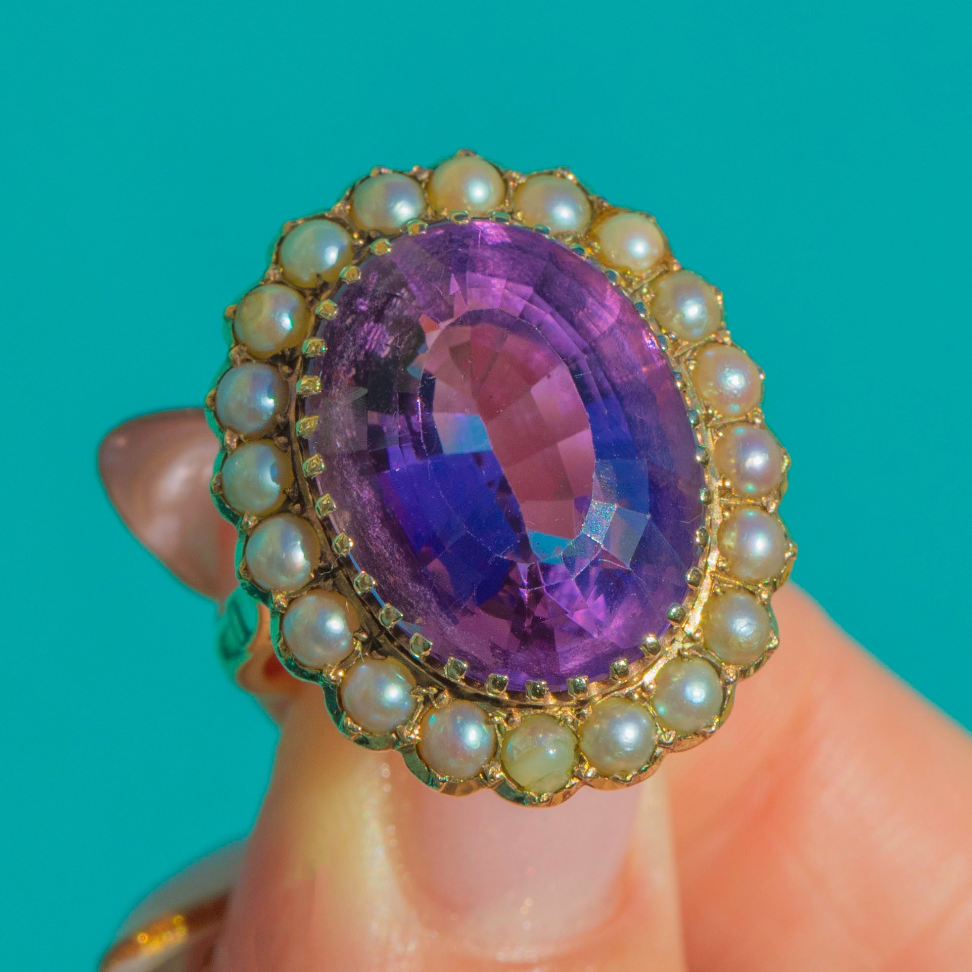 Impressive 9ct Gold Amethyst Pearl Cluster Ring, 9.38ct Amethyst
