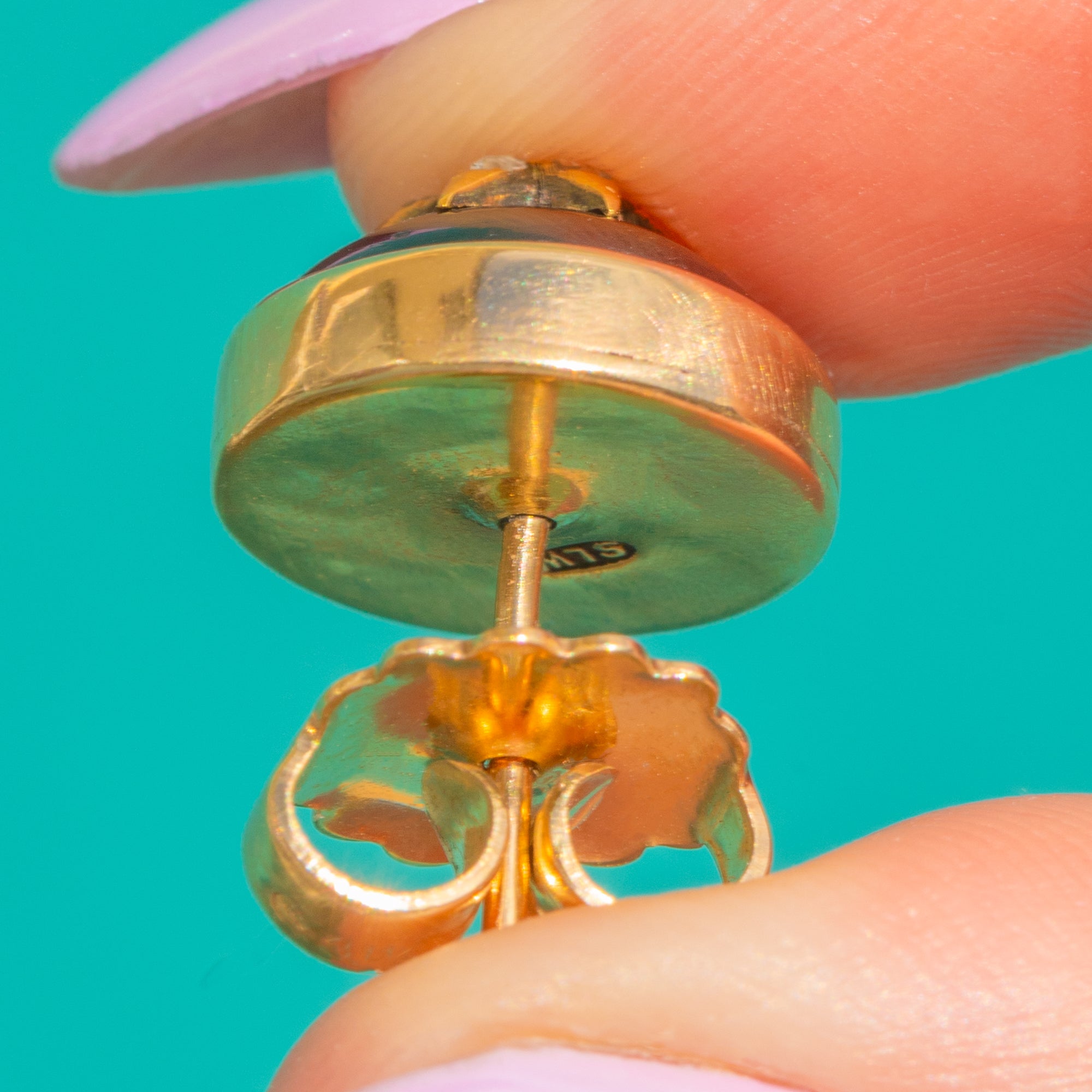 Crafted with closed-back cabochon settings and smooth bezels, they offer that sought-after Victorian look in a compact, wearable stud. Finished with posts and butterfly fastenings, they’re a chic nod to antique glamour—equally elegant by day or night.