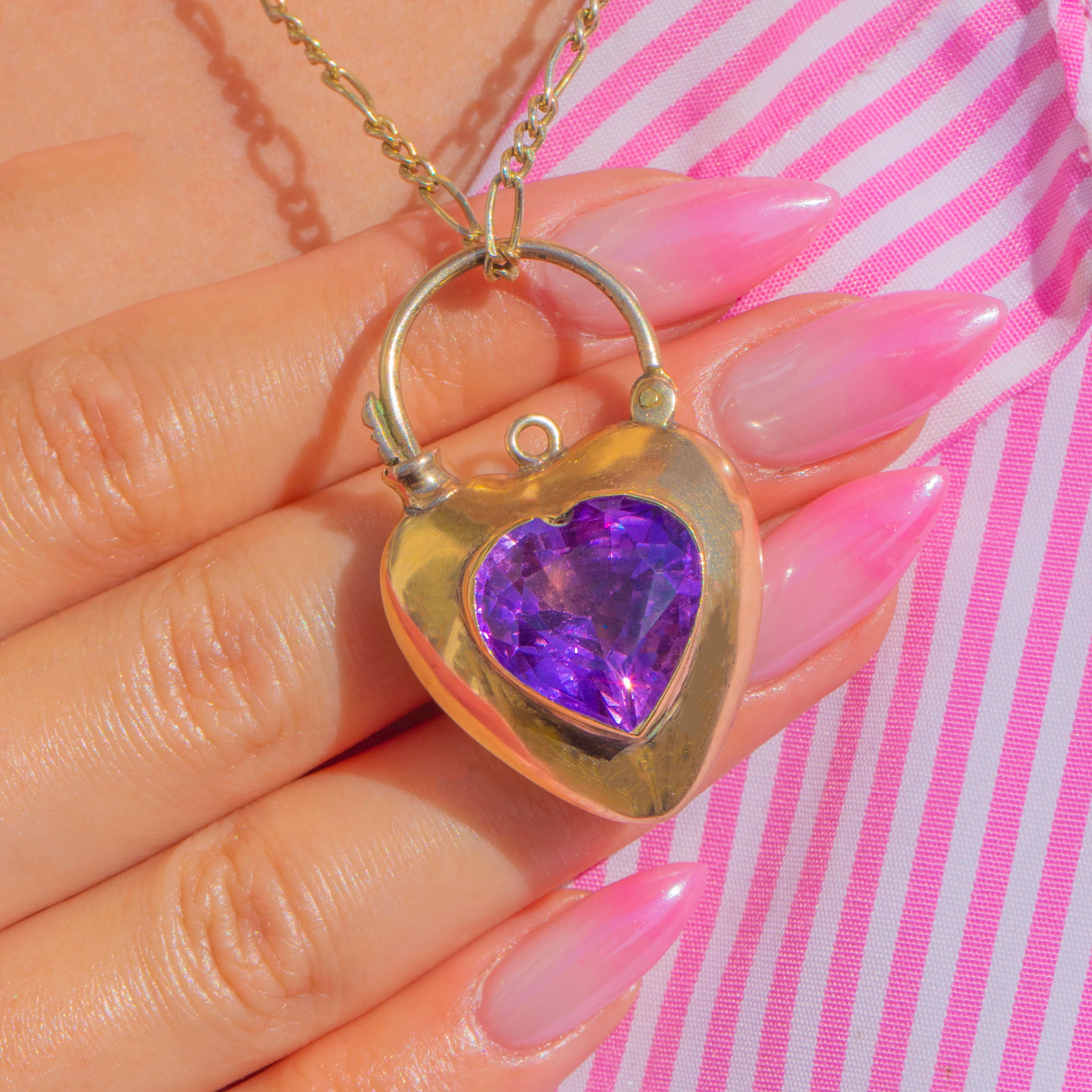 Large Antique 15ct Gold Amethyst Heart Padlock