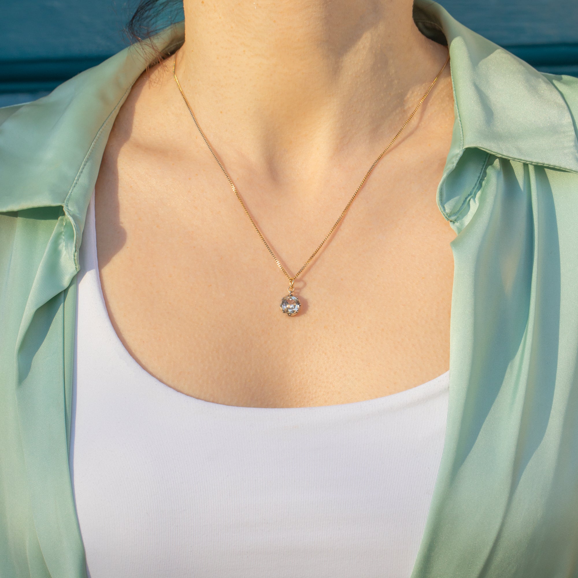 The brilliant white Paste gemstone is securely displayed within a solid Sterling Silver piecrust setting and will mesmerise you when the light dances across its facets!