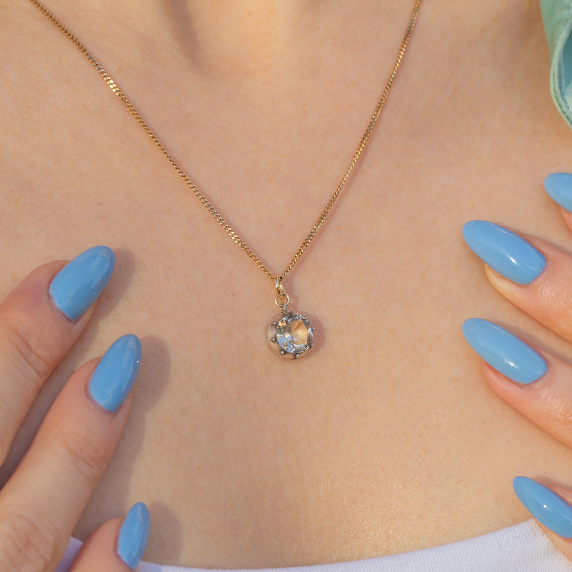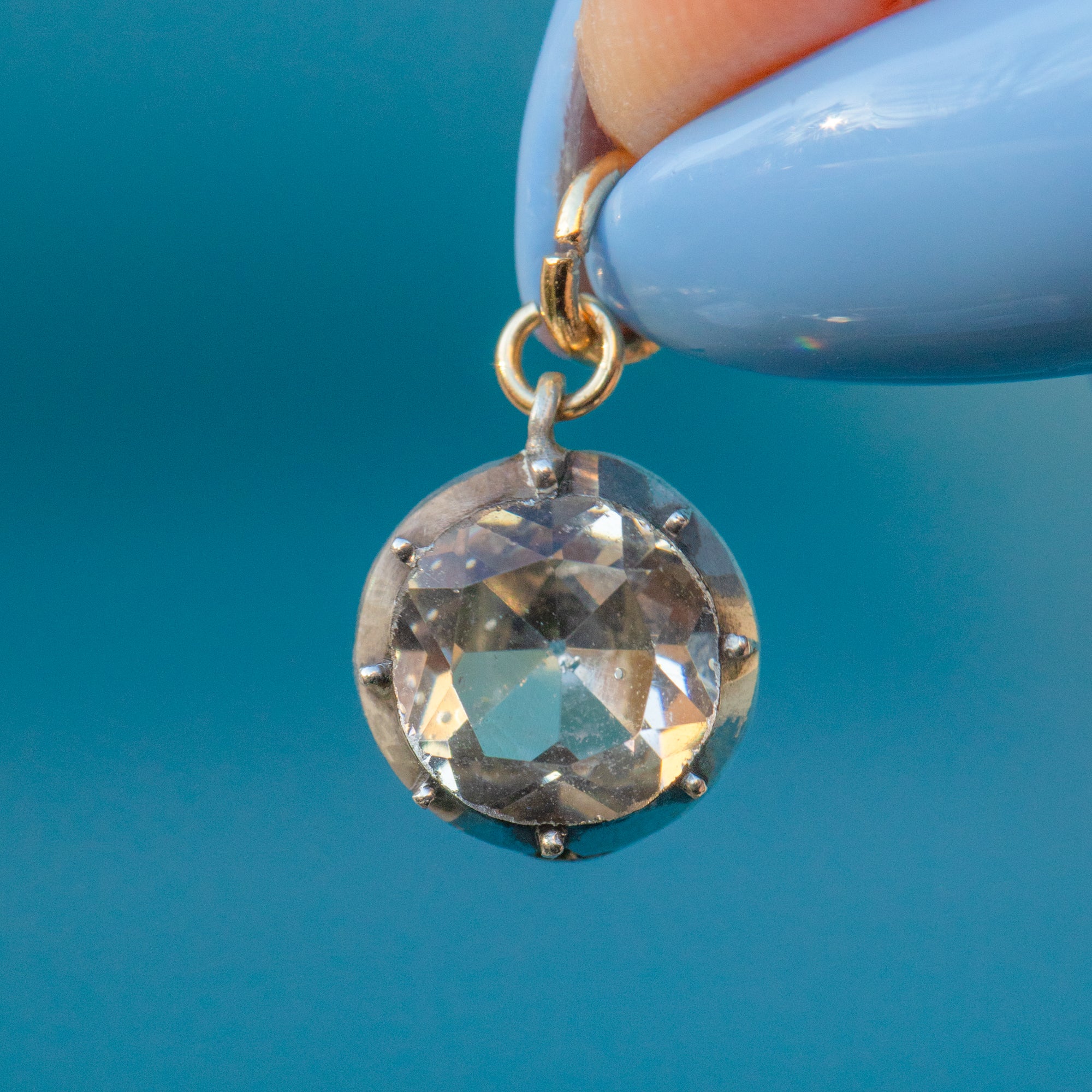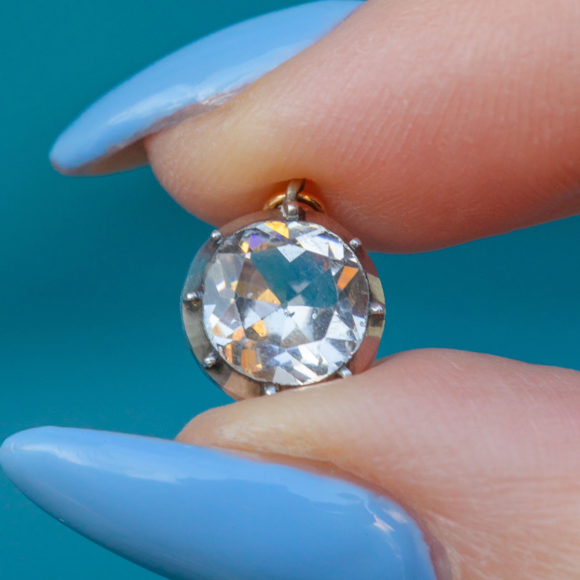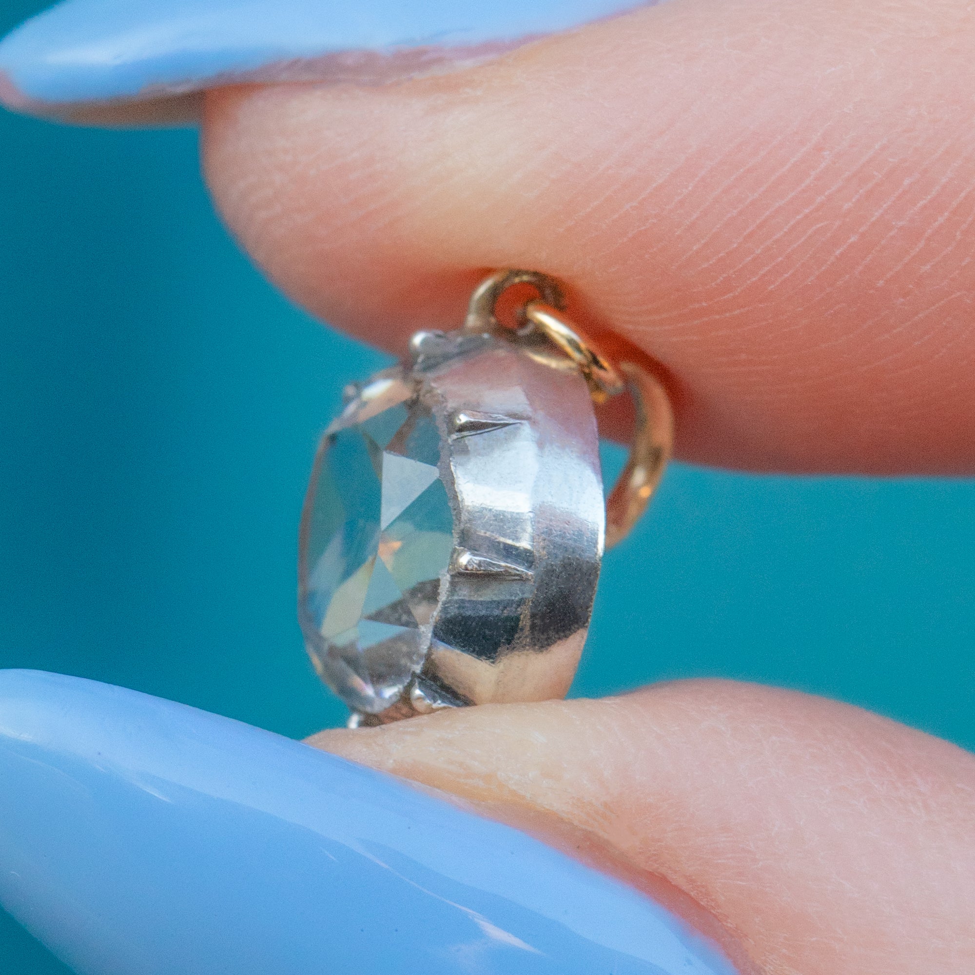 VERY GOOD. This large antique Silver Paste round charm is in very good condition. This piece has a secure, crisp and beautifully faceted Paste gemstone at its centre. She does have a mark at the bottom from when she was previously converted from a stick pin, however this is very discreet and not noticeable during wear. She's a wonder!