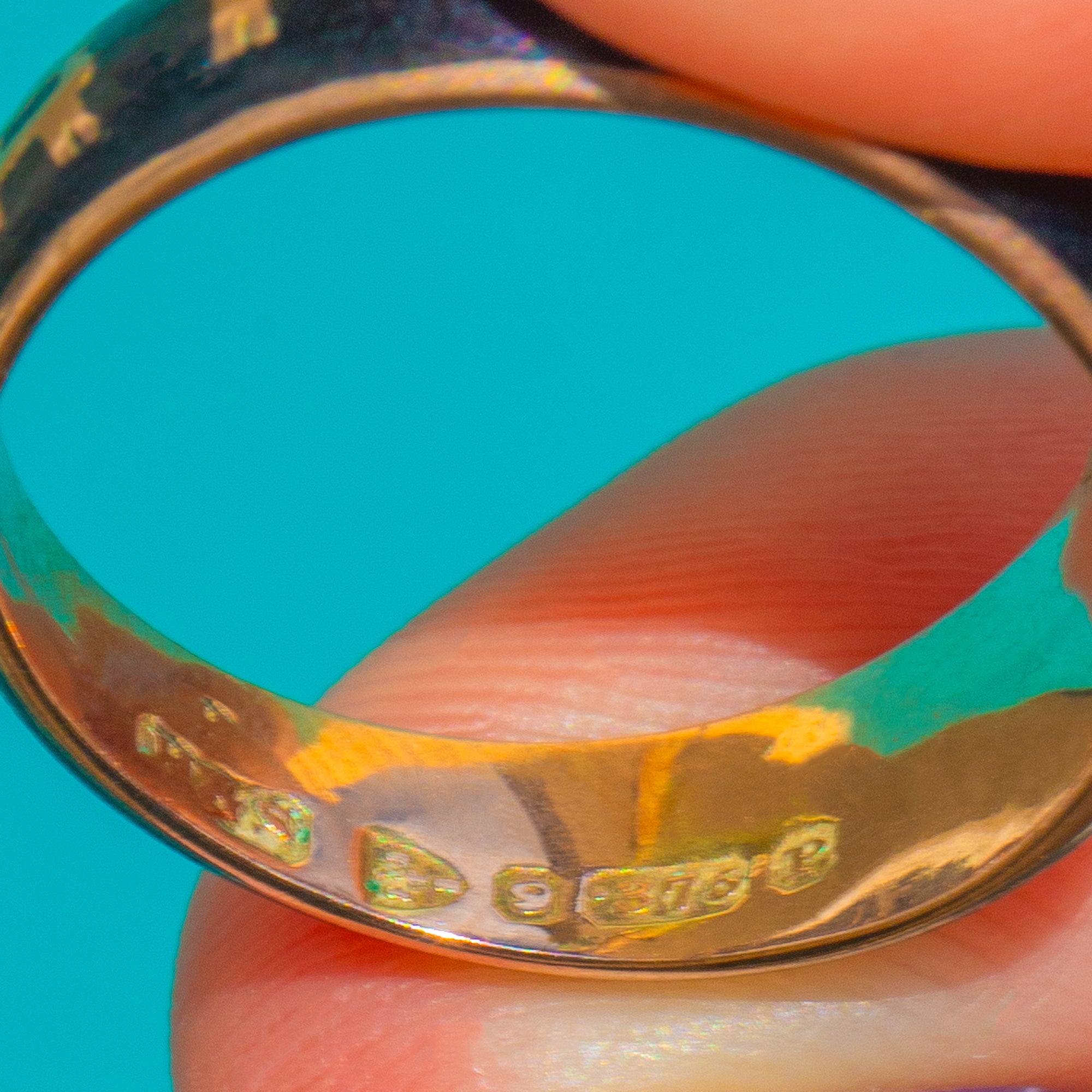 MEASUREMENTS: Ring band tapers from 7mm wide at the front to 4mm wide a the back.