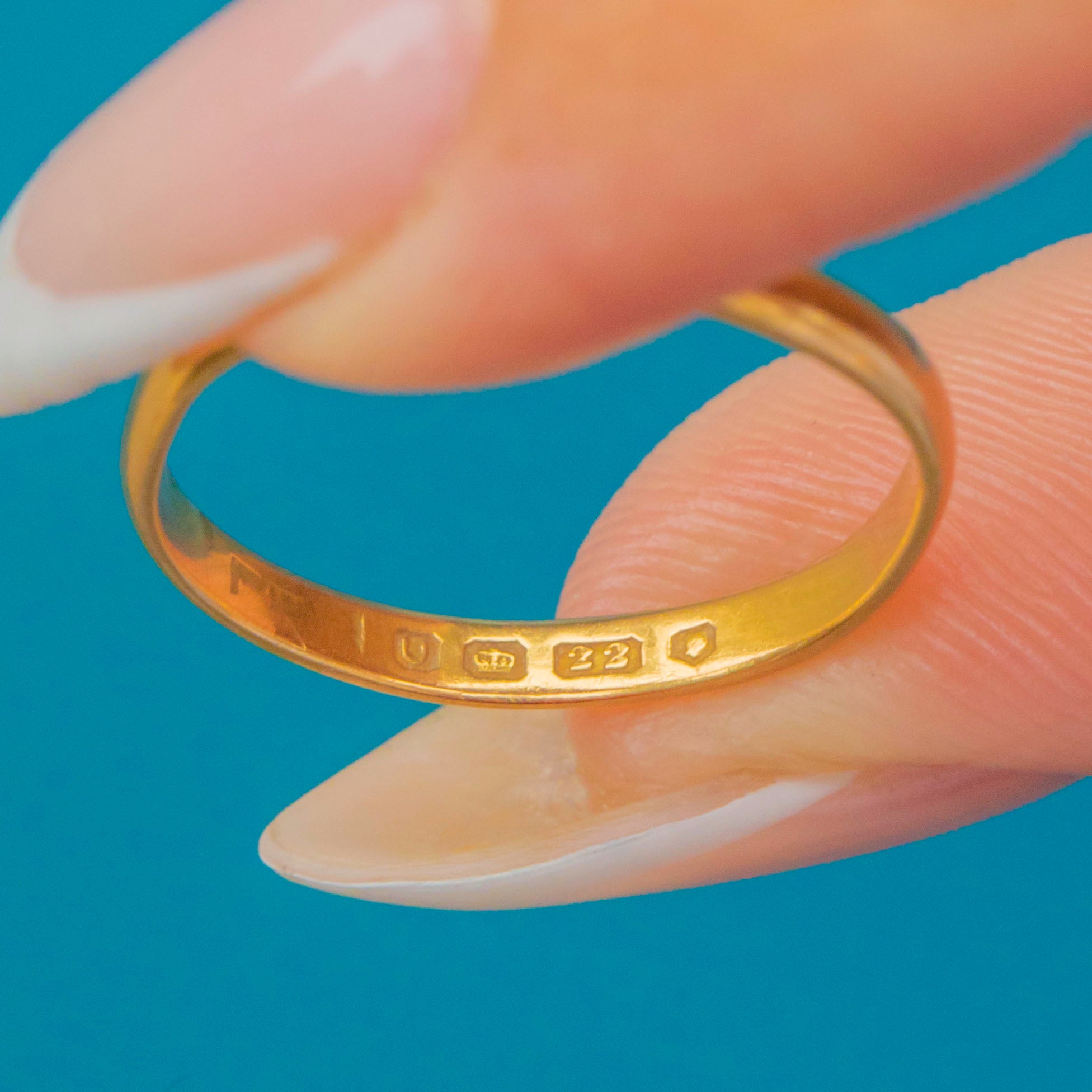 EXCELLENT. The Gold retains its rich colour and smooth polish with minimal wear. Hallmarks are crisp and legible. A superb vintage band ready to wear.
