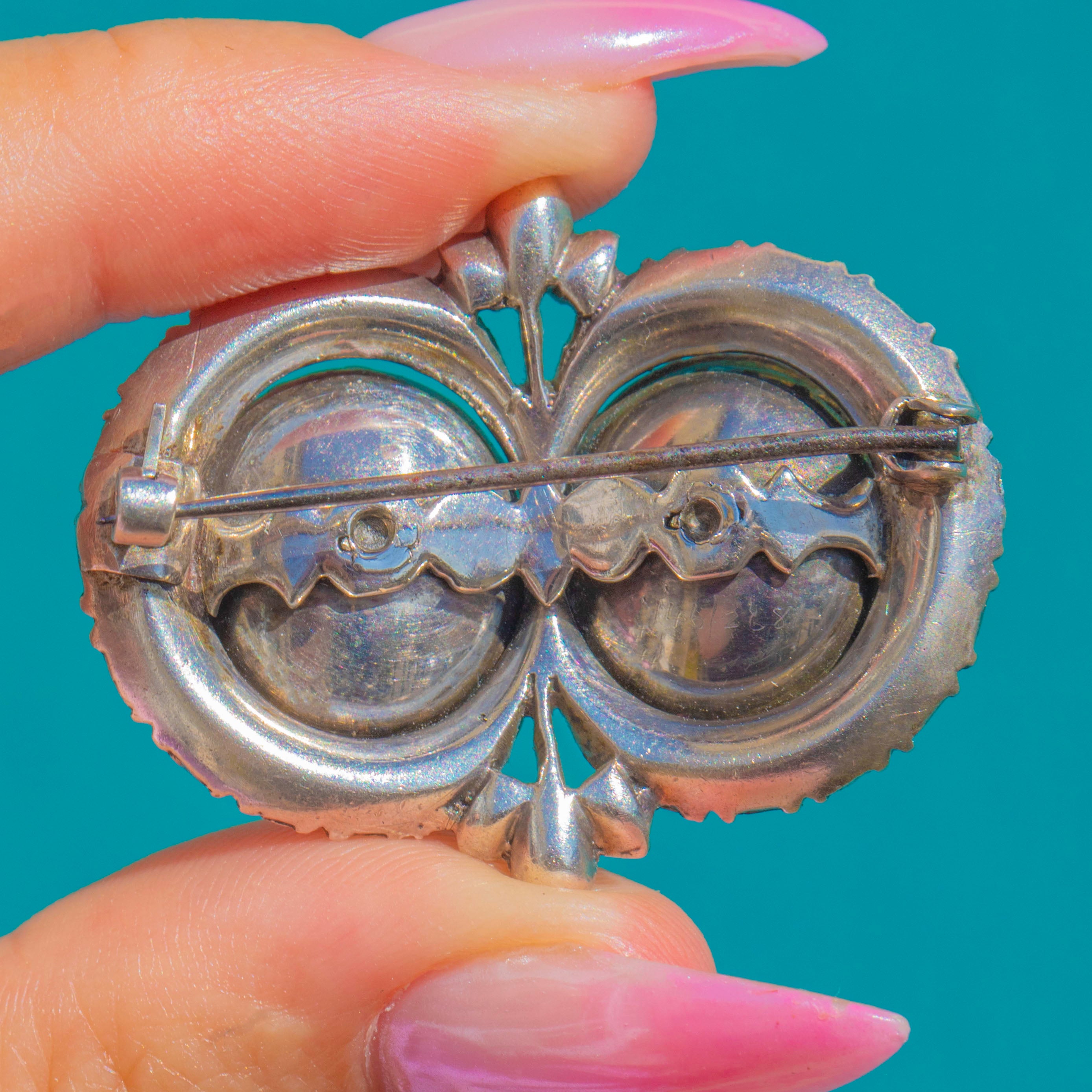 MEASUREMENTS: Brooch is 31mm long x 37.5mm wide.