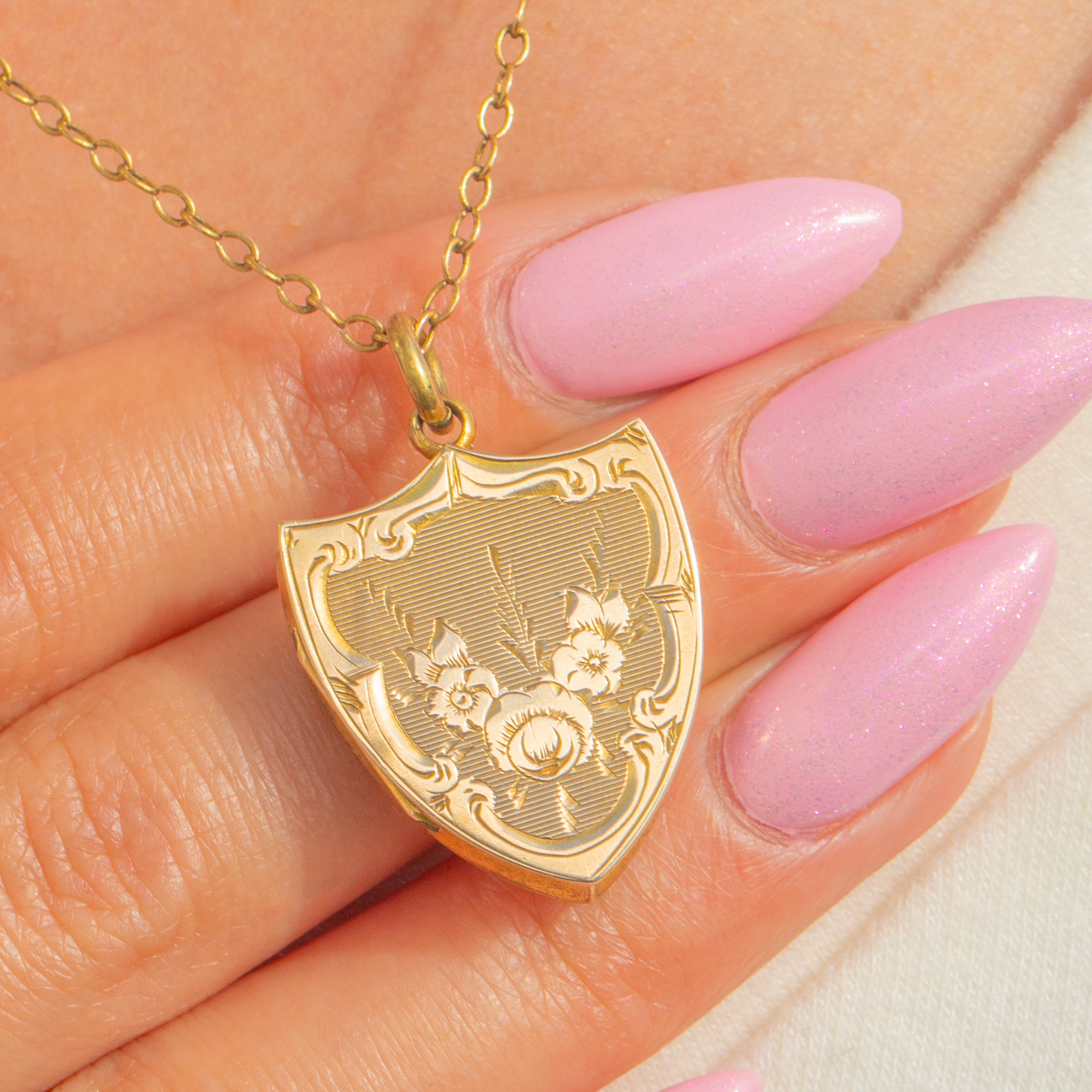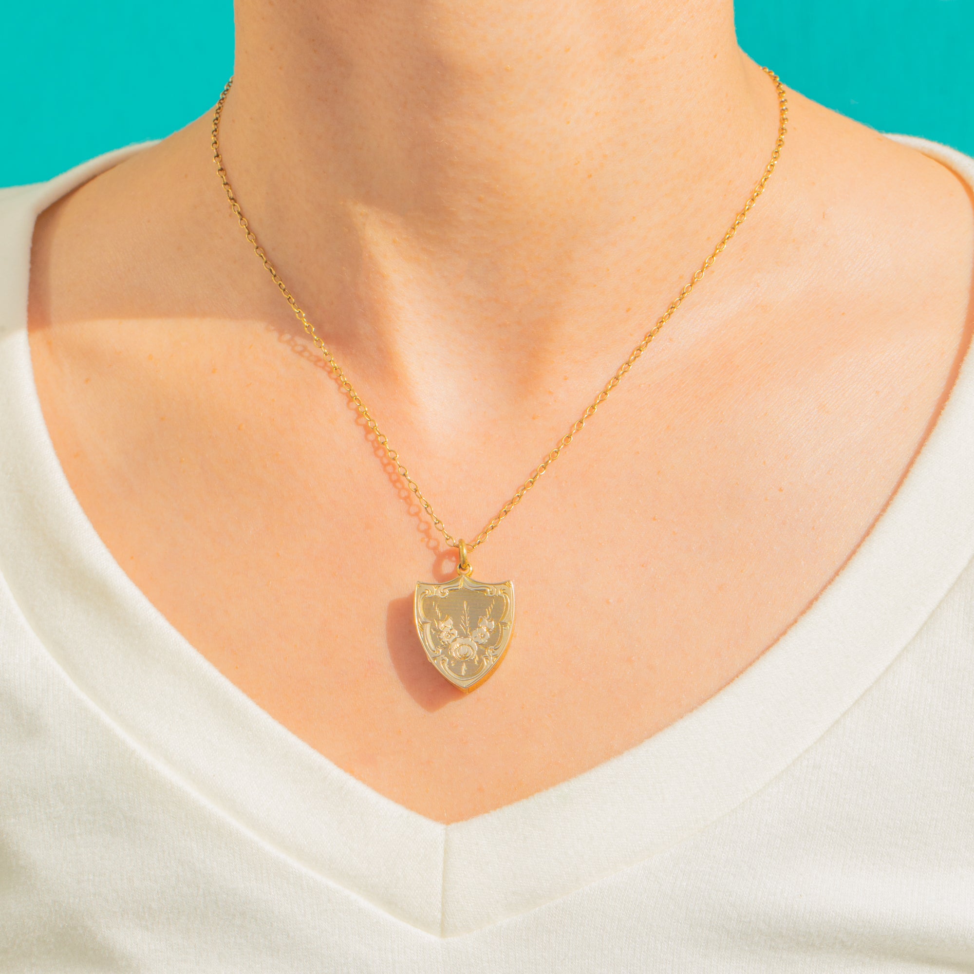 Pretty Engraved 9ct Gold Shield-Shaped Locket