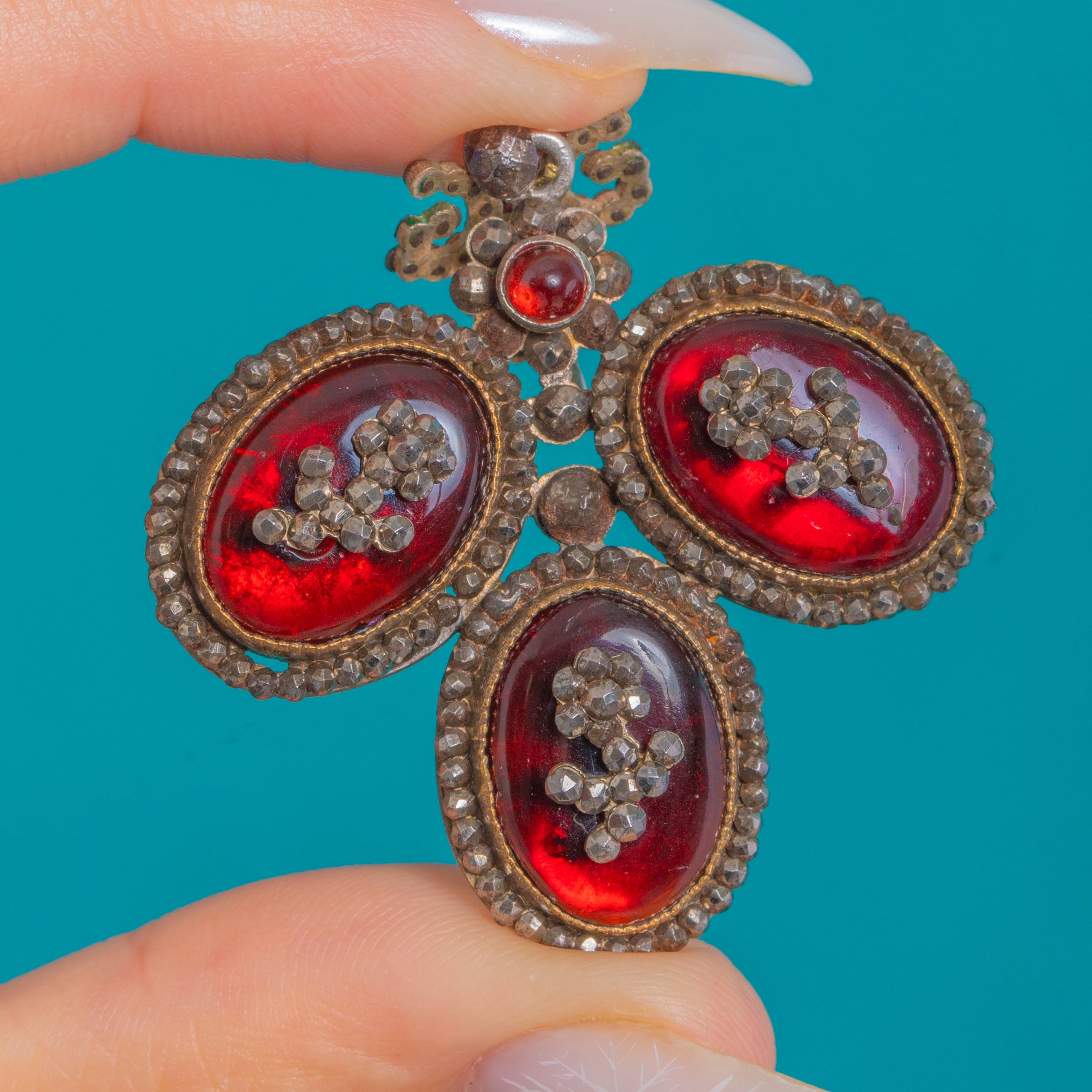 RARE Georgian Queen Anne Red Paste & Steel Pendant, c.1760