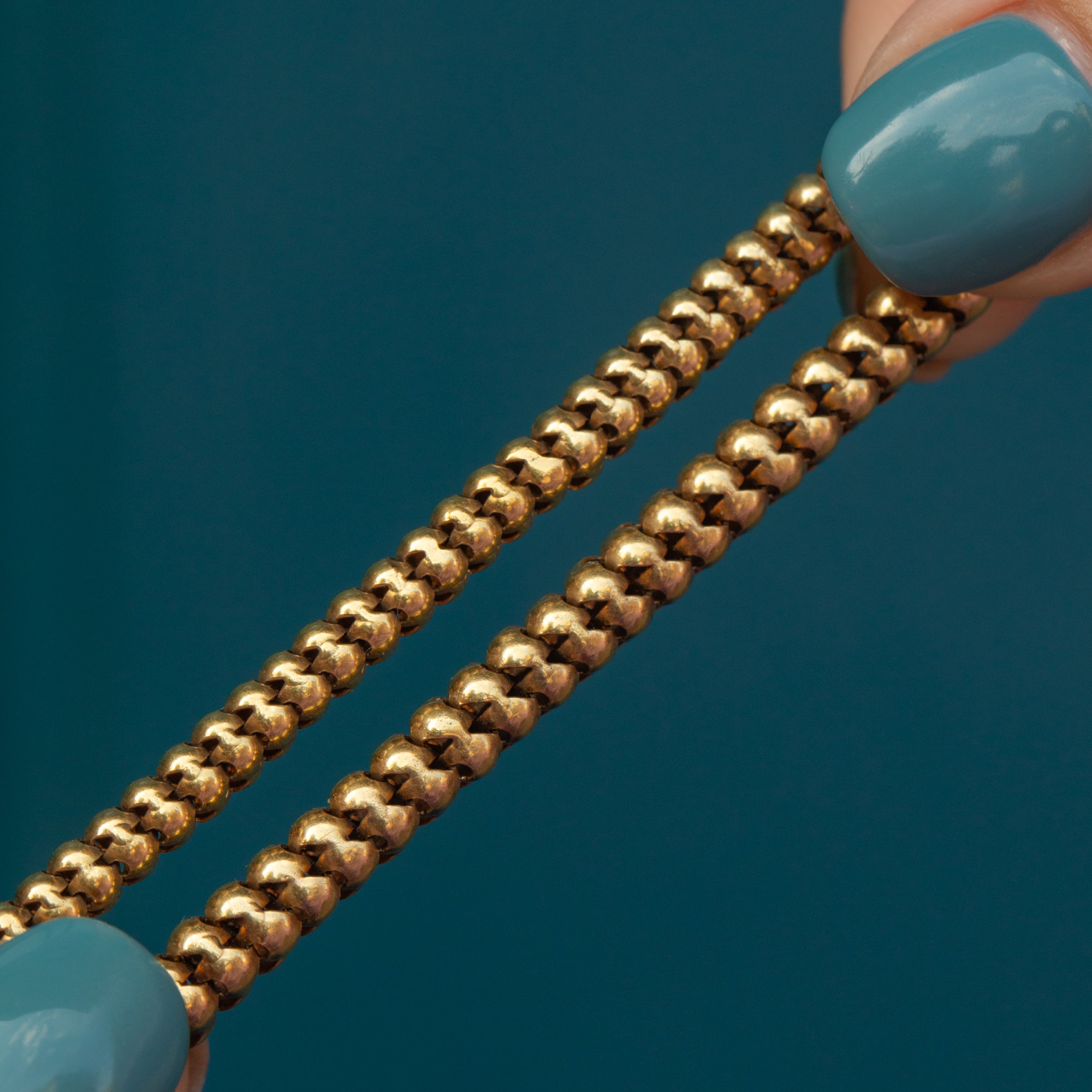 This antique necklace is an excellent display of craftsmanship, boasting a series of interlocking rings that perfectly mimic the scales of a snake, giving her gorgeous movement too. Wearing this piece around your neck will capture the attention of others; she's a captivating piece and will make an exquisite heirloom that can be passed down through the generations!