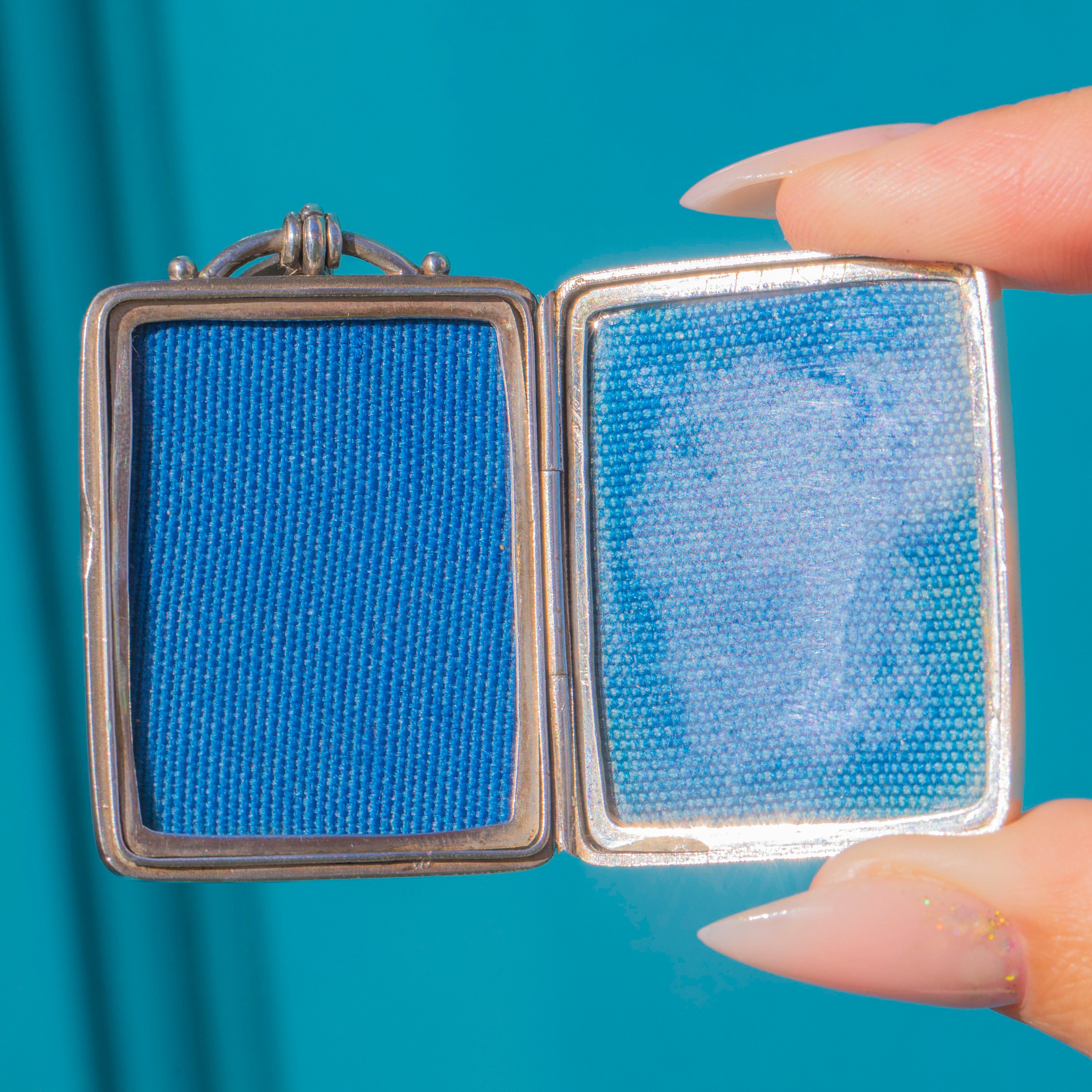 EXCELLENT: Crisp mixed-metal detail with no dings or scratches. Hinges and closure function well. Both metal frames remain inside with perspex windows; minimal age-appropriate wear only.