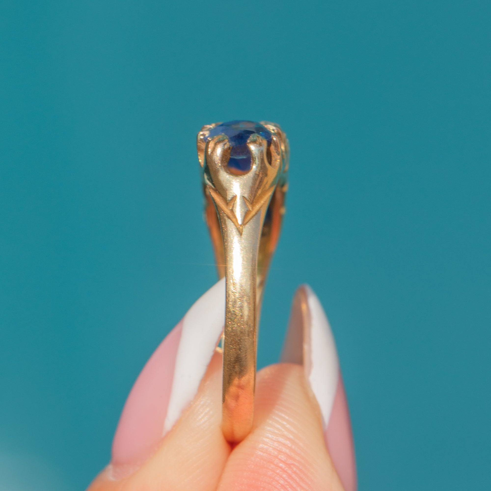 The warm Gold setting frames the gemstones beautifully, with strong claws that secure each stone perfectly. A true example of Victorian craftsmanship, this ring has both charm and durability, making it an ideal choice for collectors or as a meaningful heirloom piece.