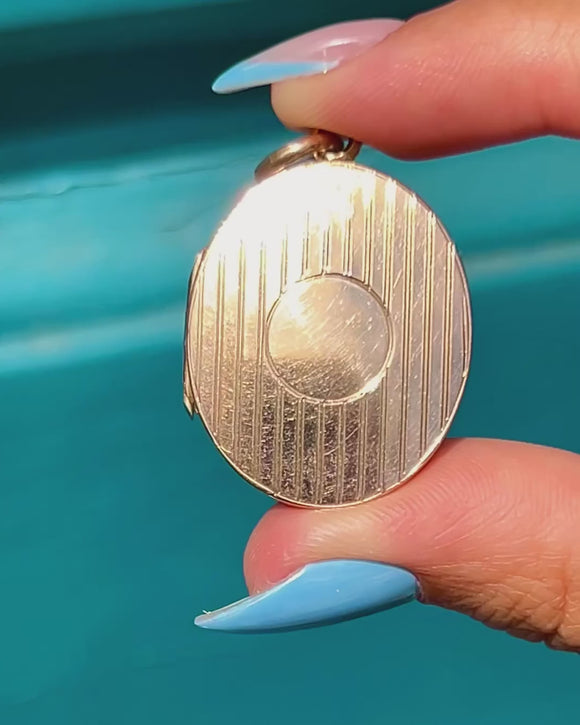 This wonderful Art Deco locket has been crafted from solid 9ct Gold and displays a striking pinstriped design that catches the light beautifully, creating an interesting visual effect.