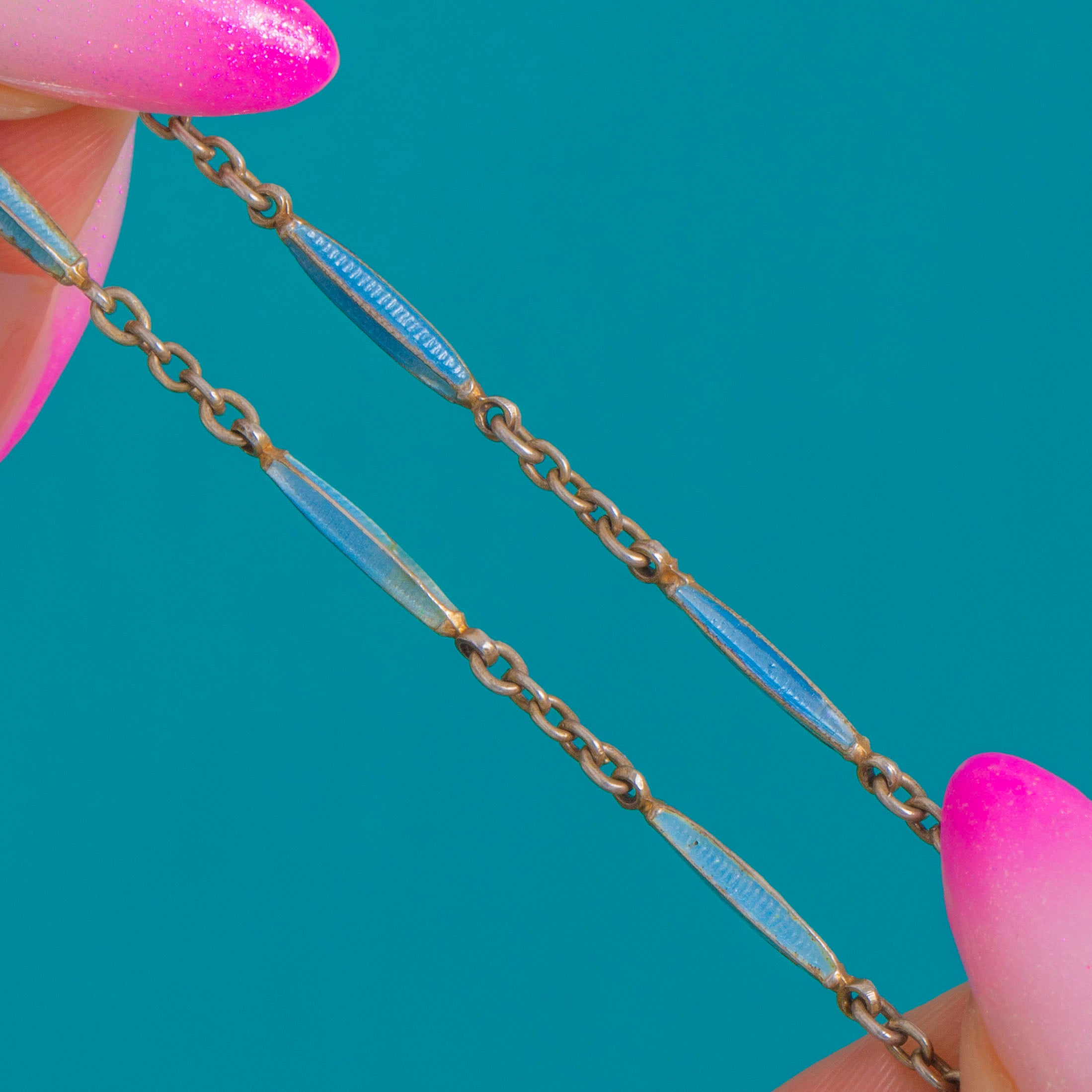 Spectacular Edwardian Icy Blue Enamel Ladies Pocket Watch & 22" Enamel Chain