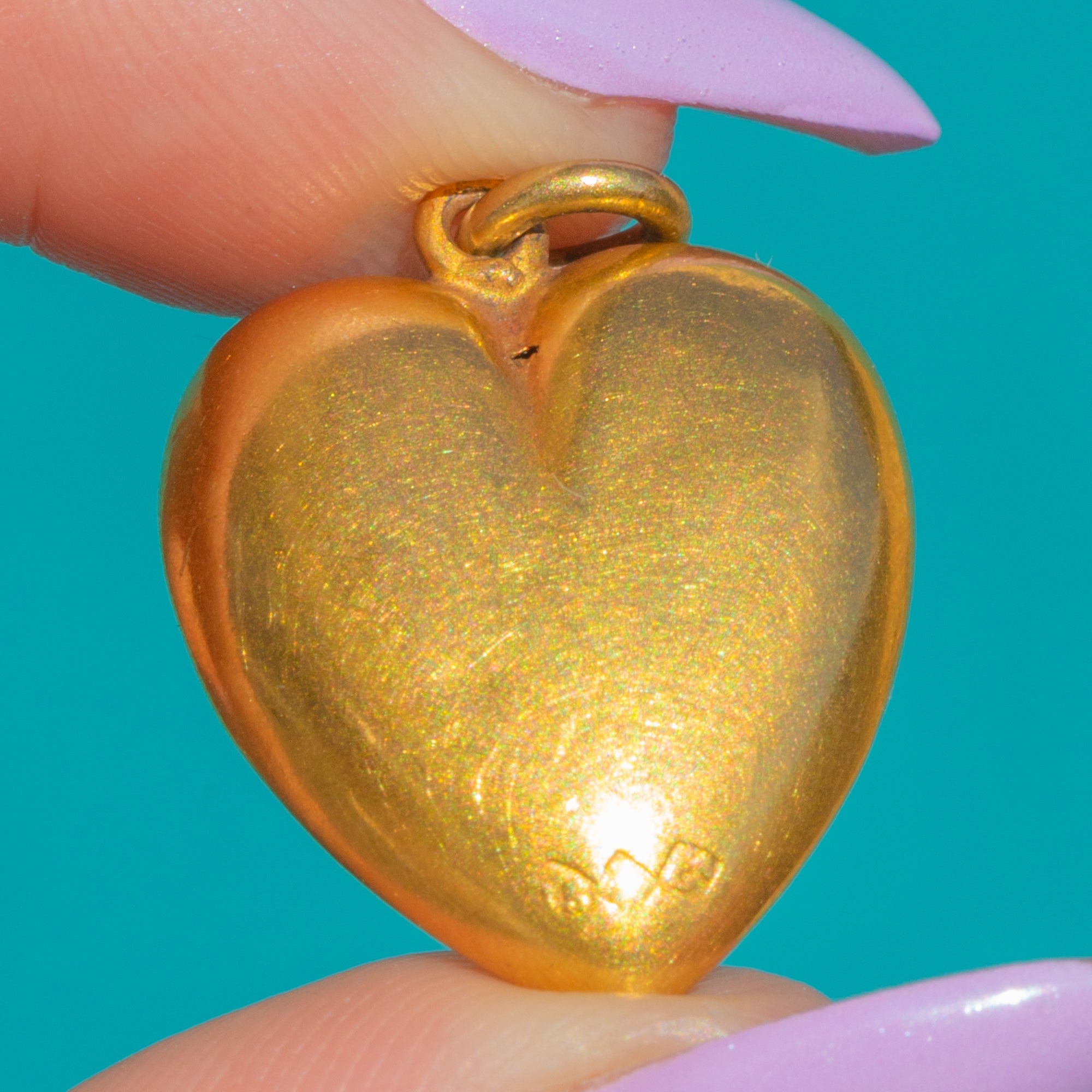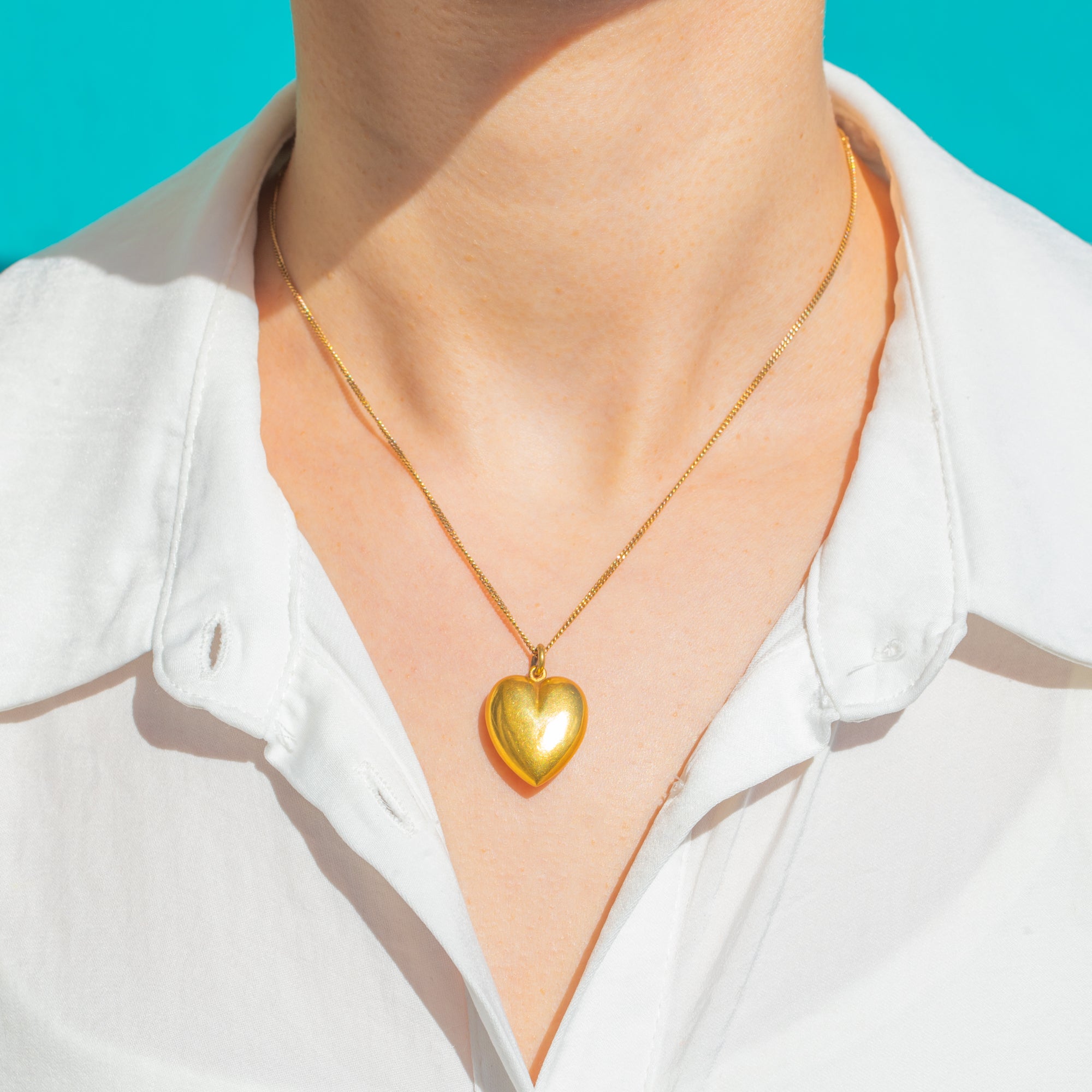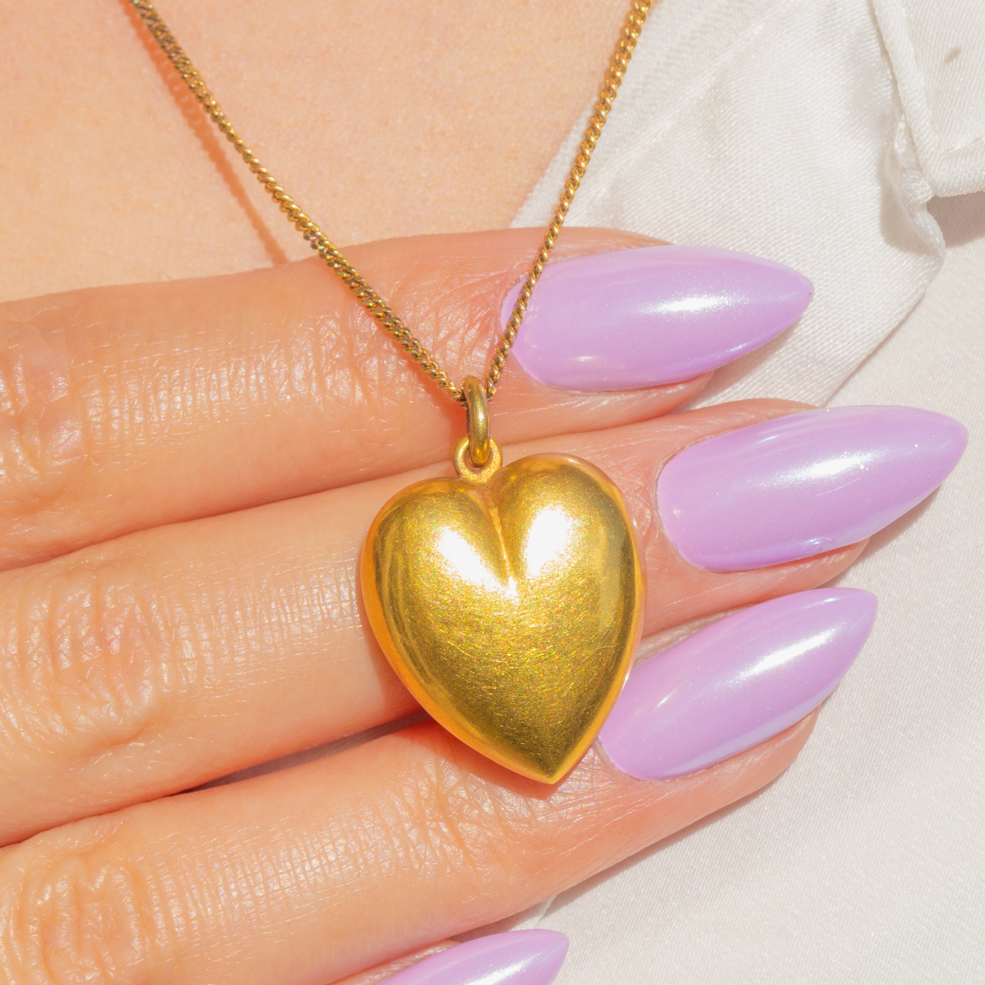 A classic Edwardian puffy heart rendered in glowing 15ct Gold. Its softly domed silhouette and high-polish finish give a delicious, buttery Gold colour with an elegant antique patina—romantic, minimalist and effortlessly timeless.