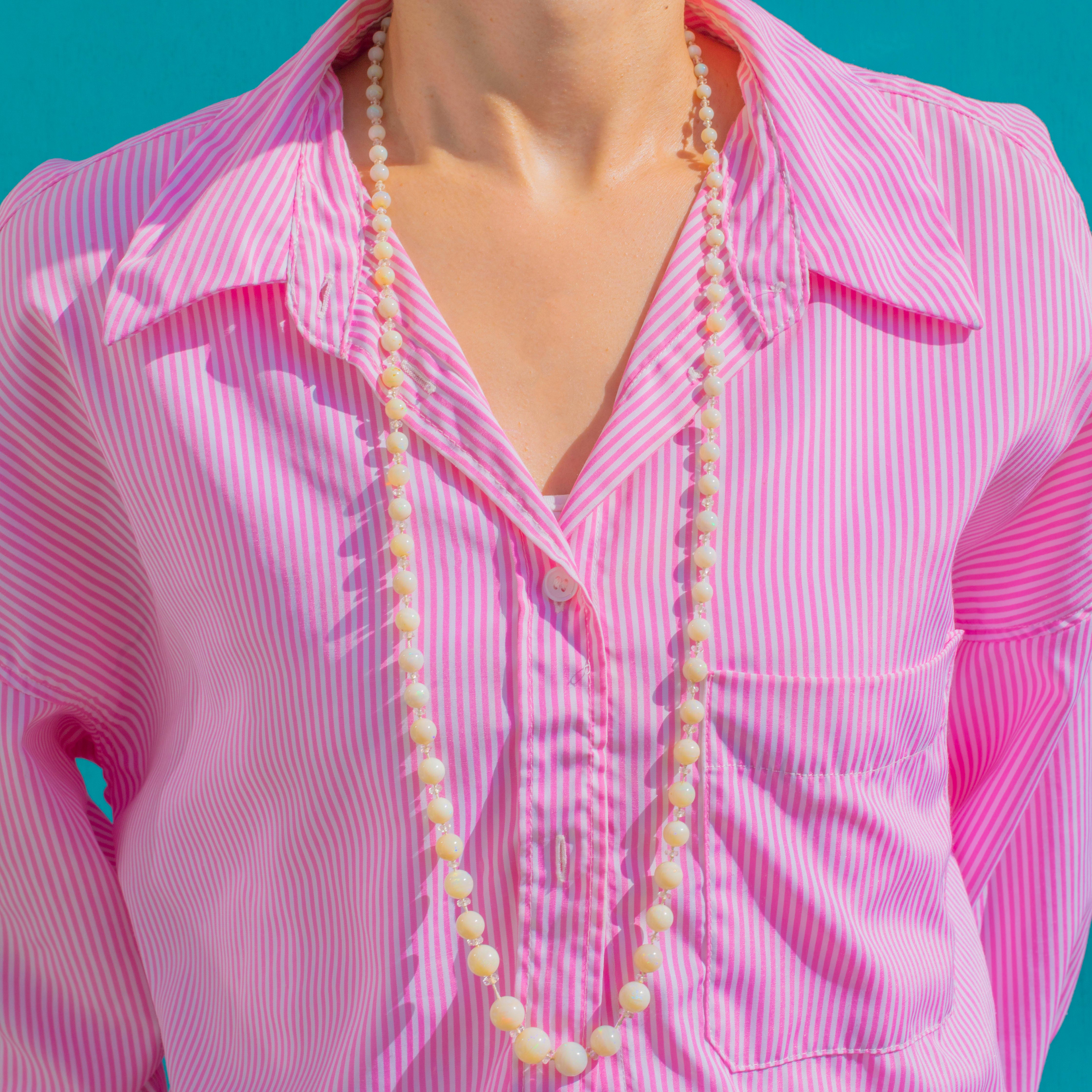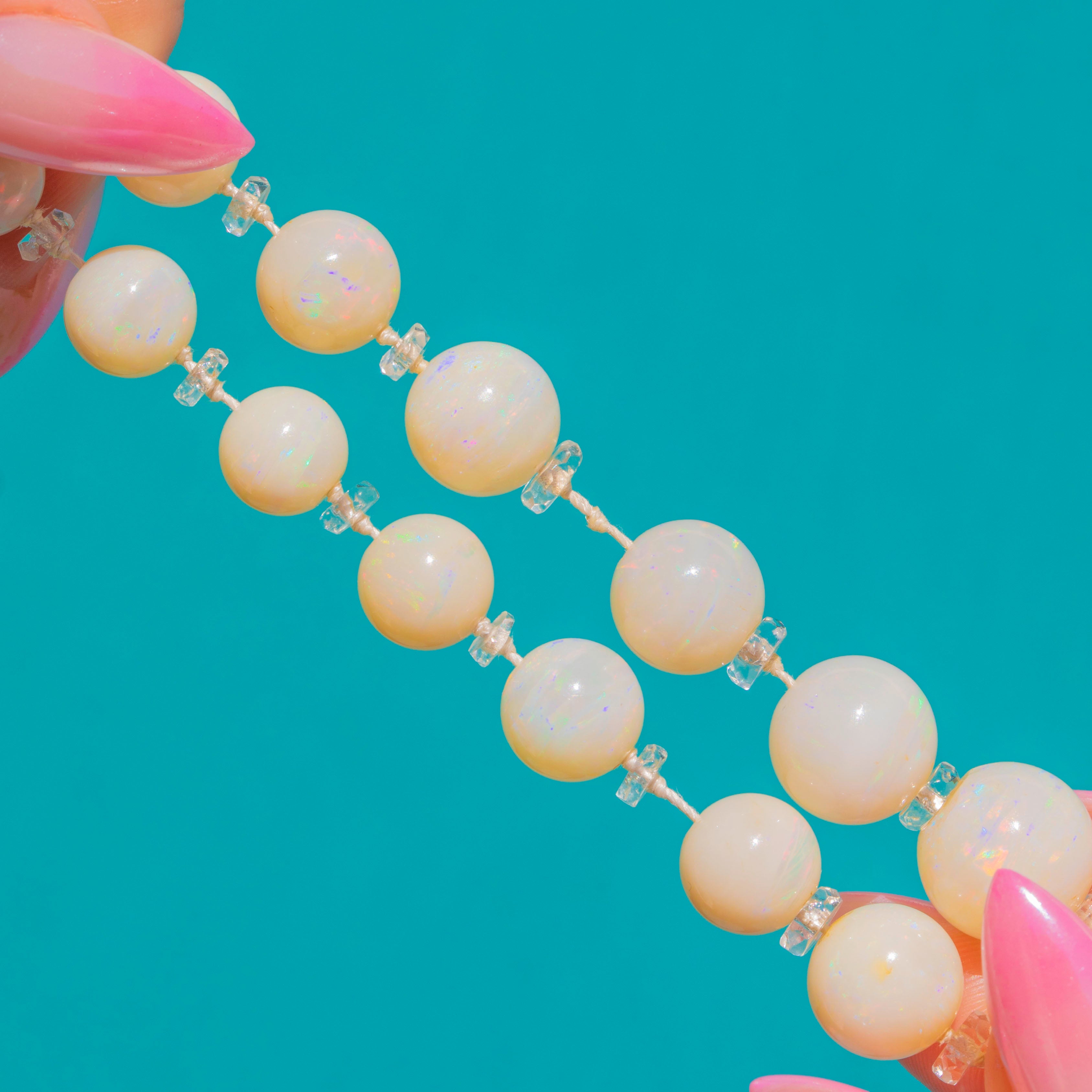 With approximately 120.00cts of Opal, this luminous necklace captures the cool glamour of the era. The crisp brilliance of Rock Crystal heightens the opaline glow, giving a pristine, rhythmic sparkle between every bead.