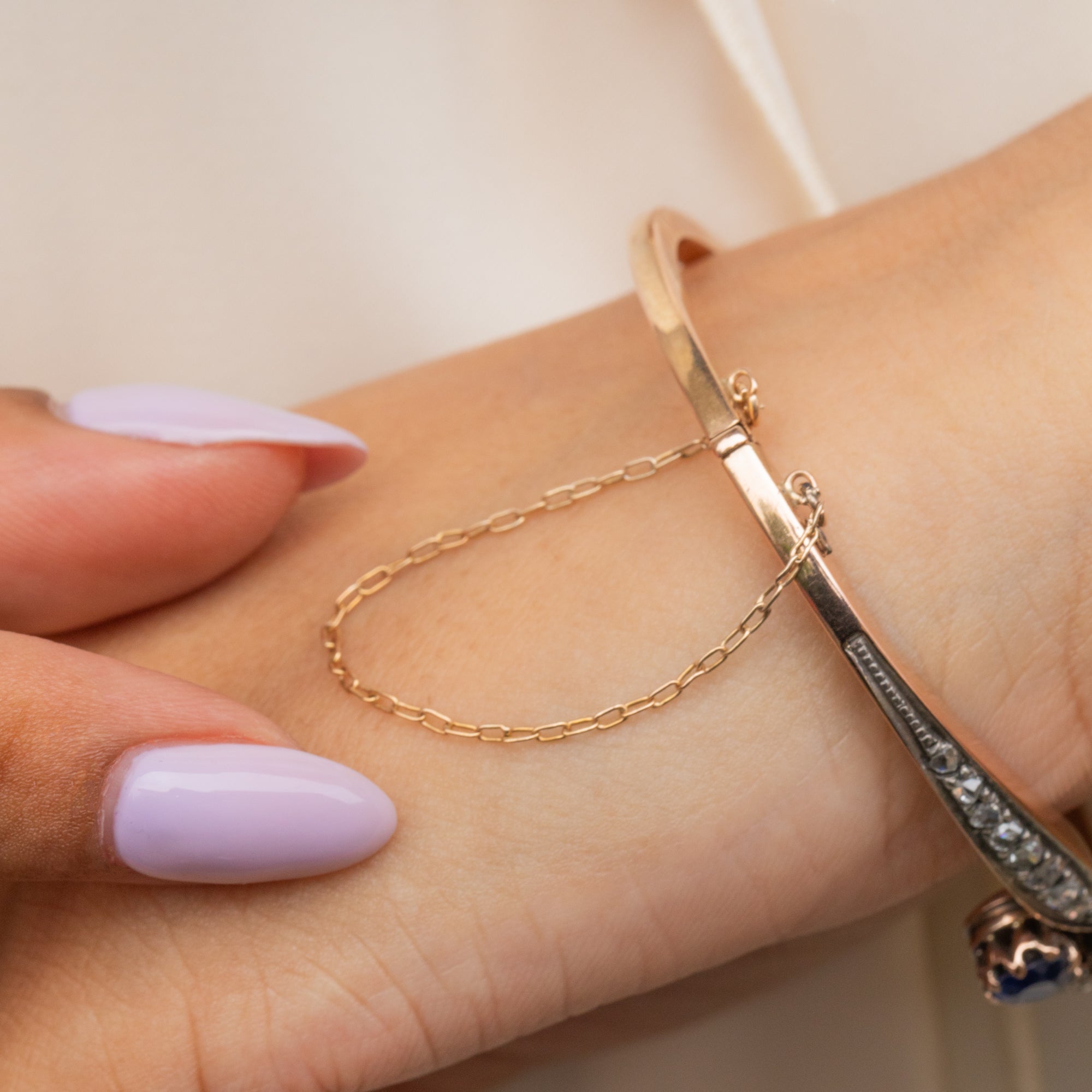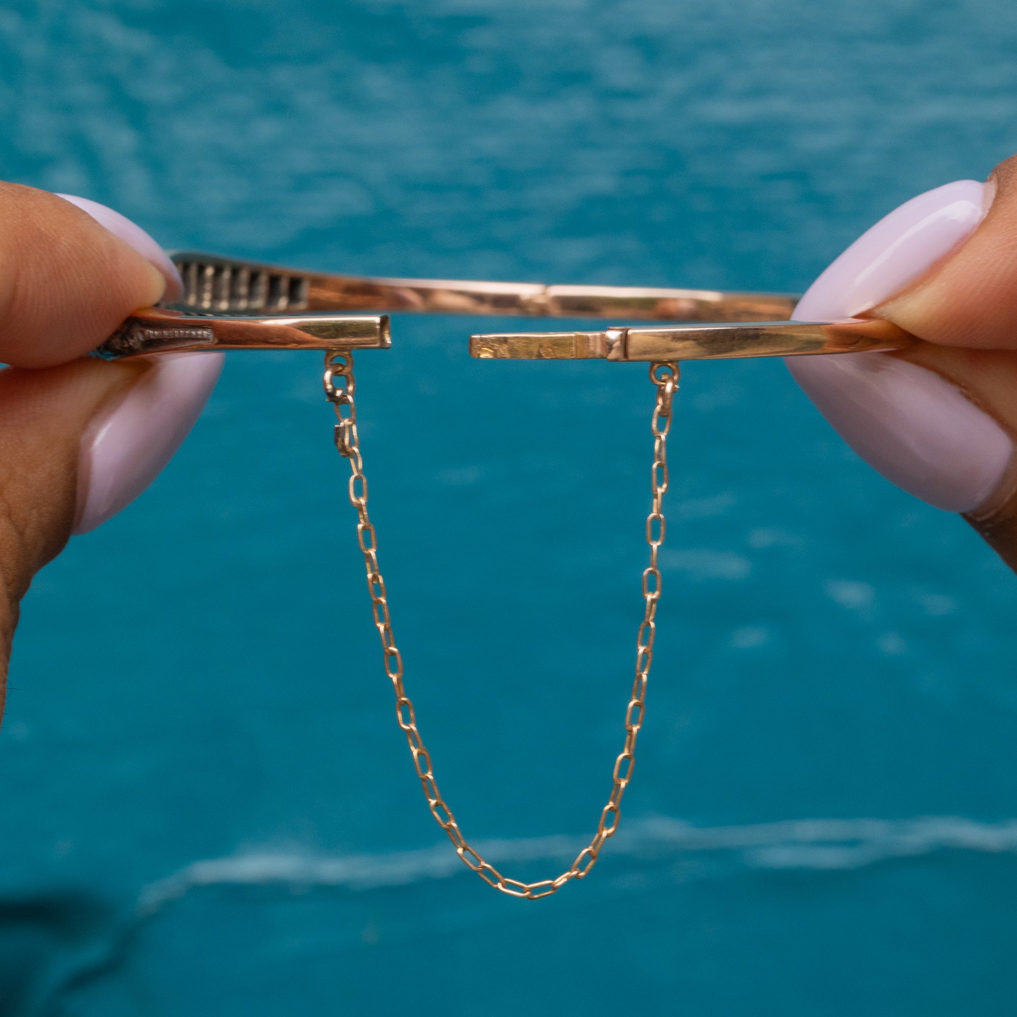The 'toi et moi' boasts two natural velvety blue Sapphires, with a combined weight of 0.75ct, and rose-cut Diamonds set in Silver, this bangle is especially sparkly! The two Sapphires intertwining in that classic 'Toi Et Moi' style, translating to 'you and me', epitomises the inseparable bond between two souls. Not only is Victorian bangle beautiful, but she is also steeped in romantic sentiment making her a wonderful gift choice!