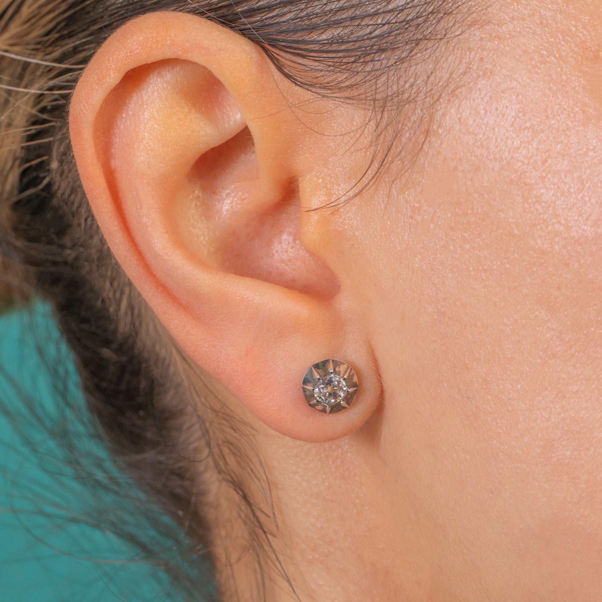 Victorian 0.80ct Old Mine Cut Diamond Stud Earrings
