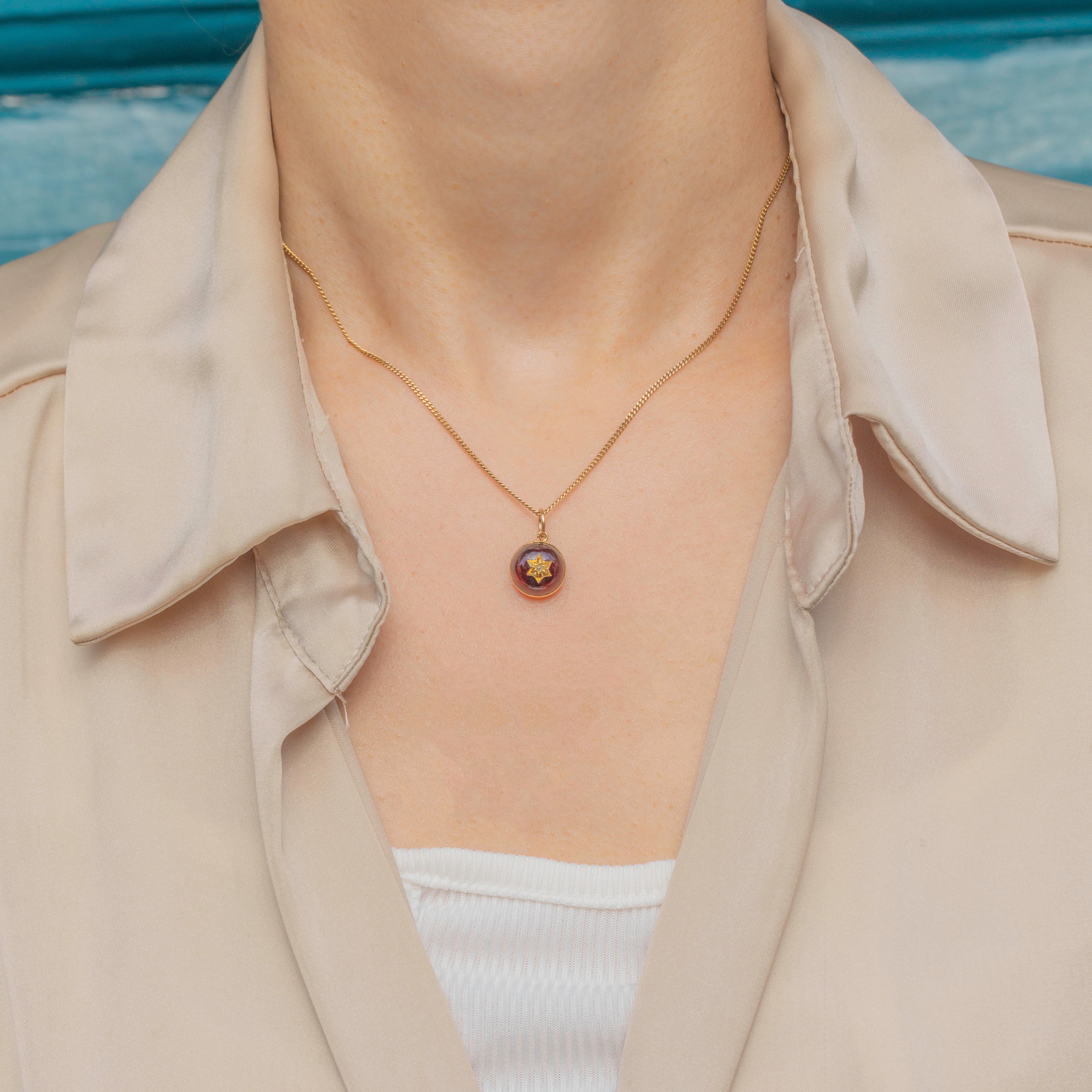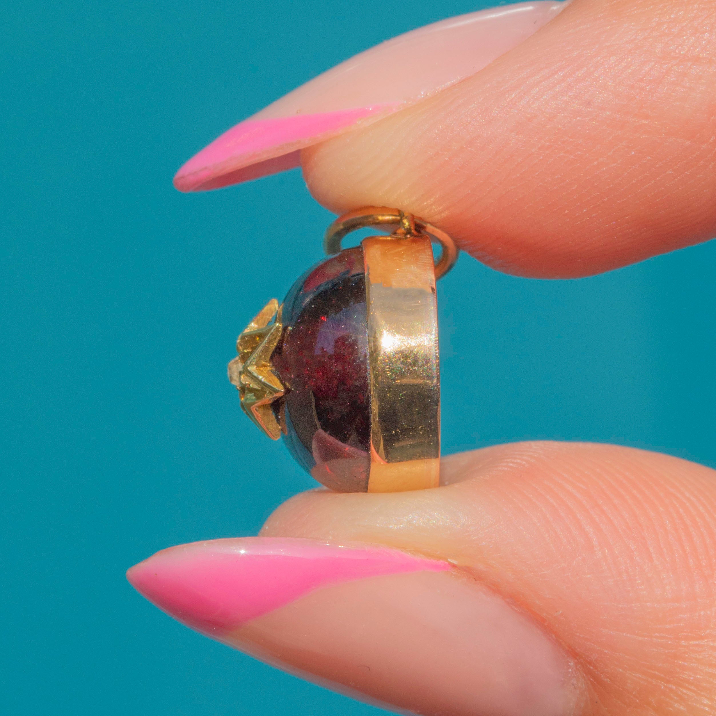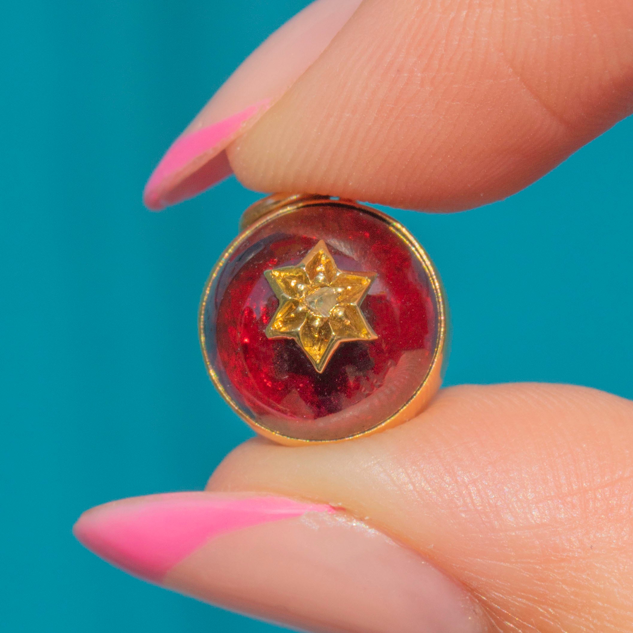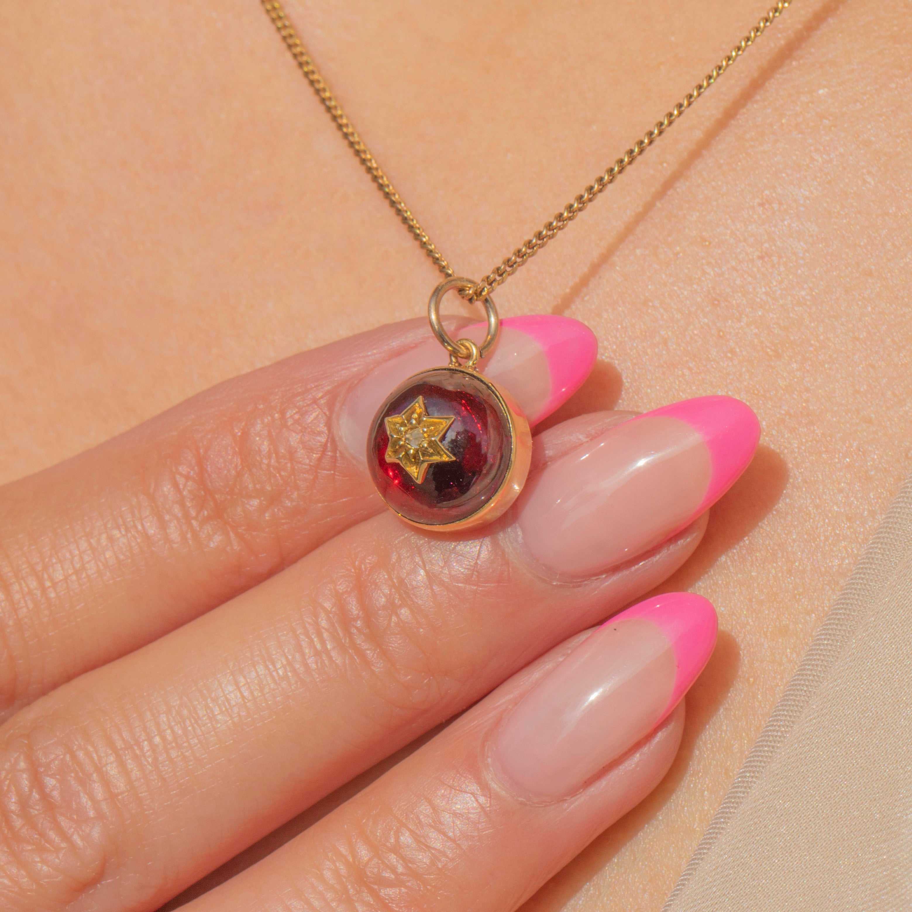 This Victorian 14ct Gold Garnet cabochon Diamond star charm is the perfect little treasure! Crafted with exquisite attention to detail, this Victorian charm boasts a plump Garnet cabochon with a spectacular Diamond-encrusted star at its centre.