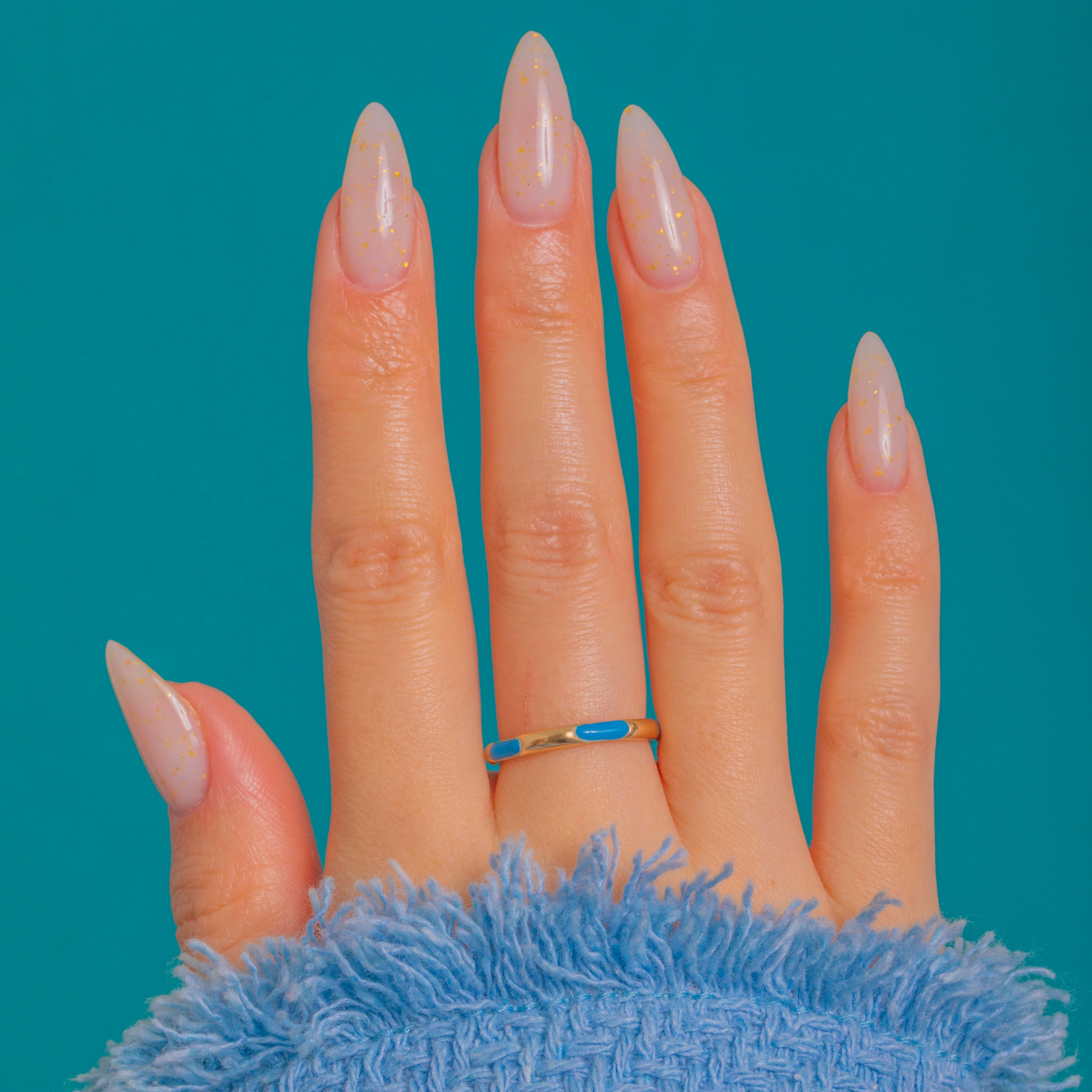 A delicate Victorian treasure in luminous 15ct Gold, this slim band is accented with glossy Blue Enamel in repeating oval panels along the entire shank. Its smooth low-dome profile and high polish give a refined, silk-like sheen, while the vivid Enamel brings a joyful pop of colour.