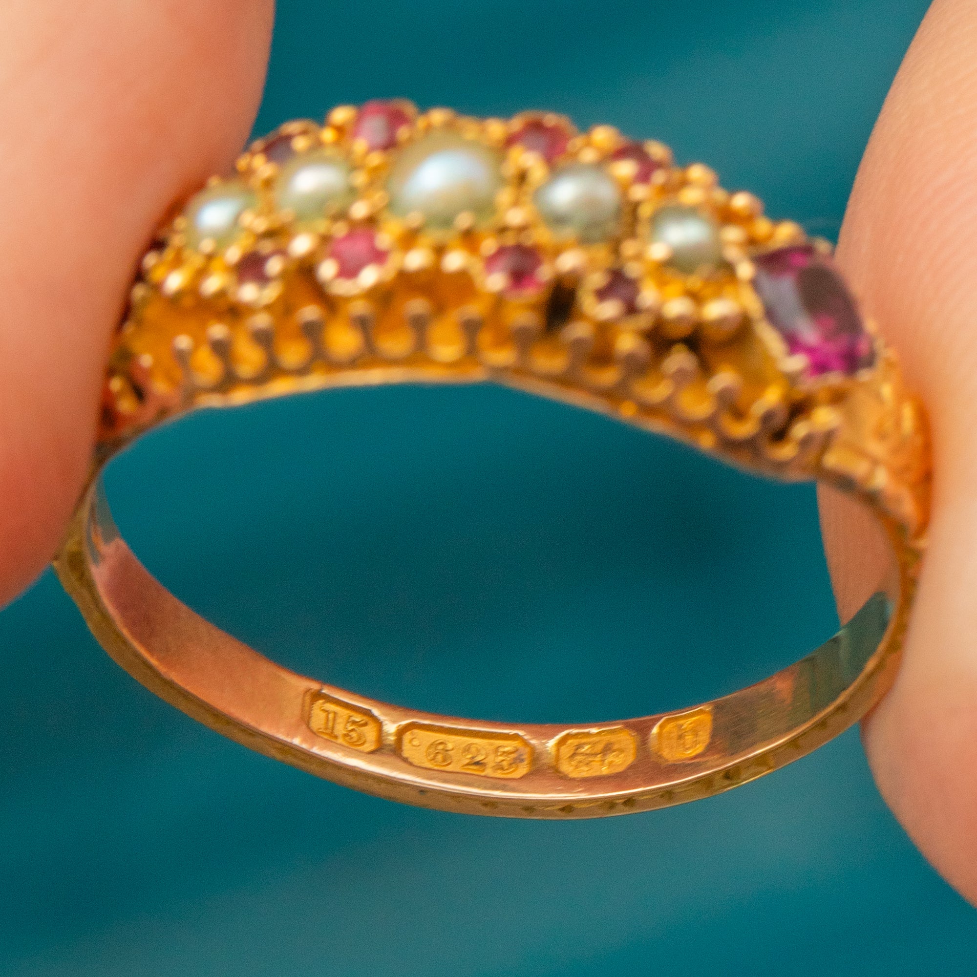Victorian 15ct Gold Garnet Pearl Ring, c.1876