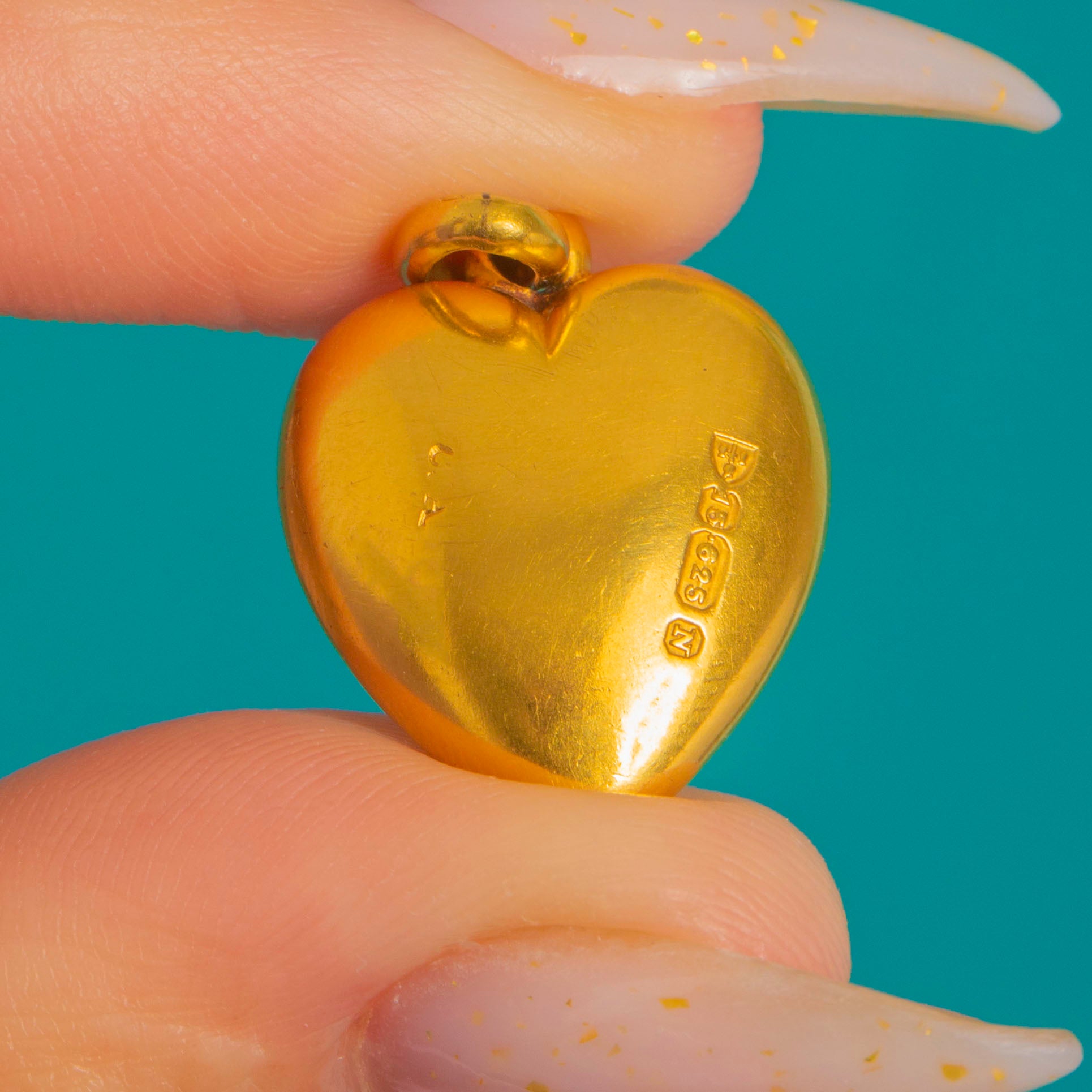 Hallmarked for Chester with a date letter N for 1896, it offers all the charm of a true 19th‑century love token. Suspended from a fixed hasp with an oval jump ring, its classic silhouette and sentimental motif make it an effortlessly wearable jewel, beautiful on its own or layered with your favourite chains.