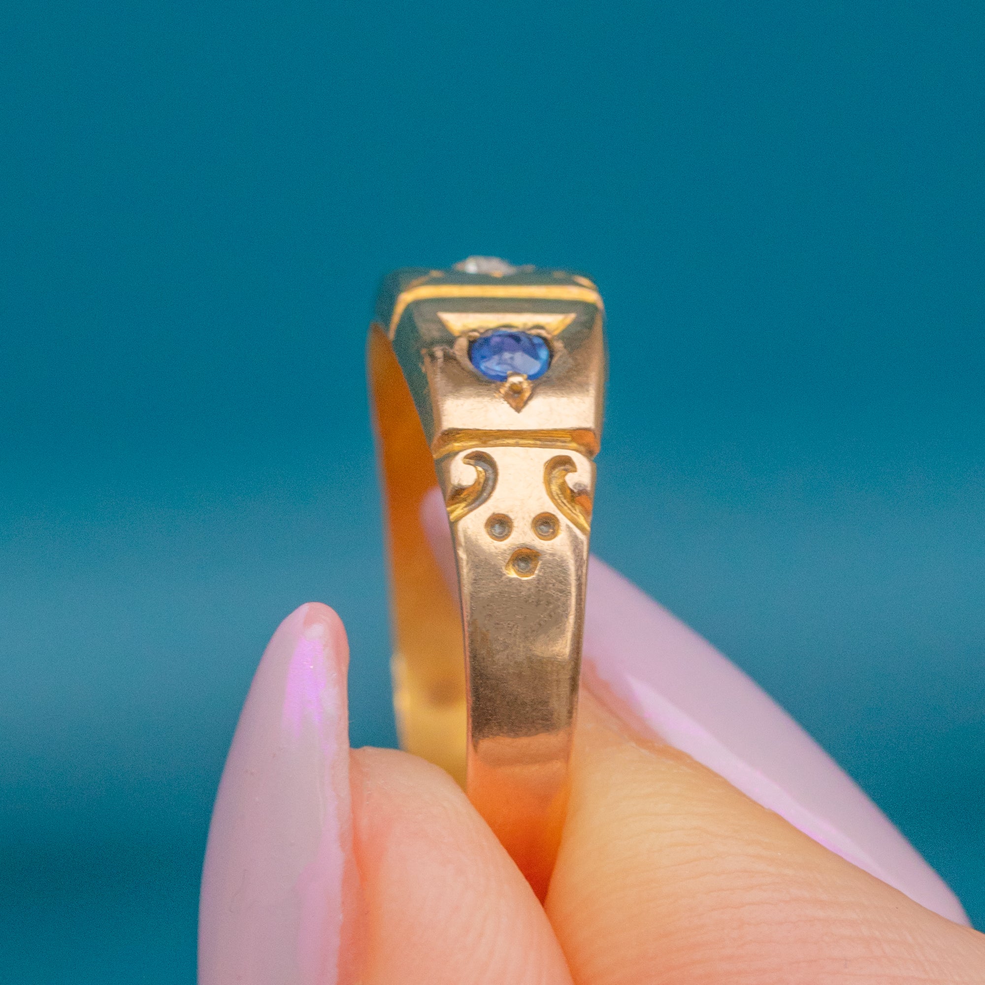Victorian 15ct Sapphire Diamond Gypsy Ring c.1893