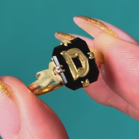 Victorian 18ct Gold "D" Initial Onyx Mourning Ring