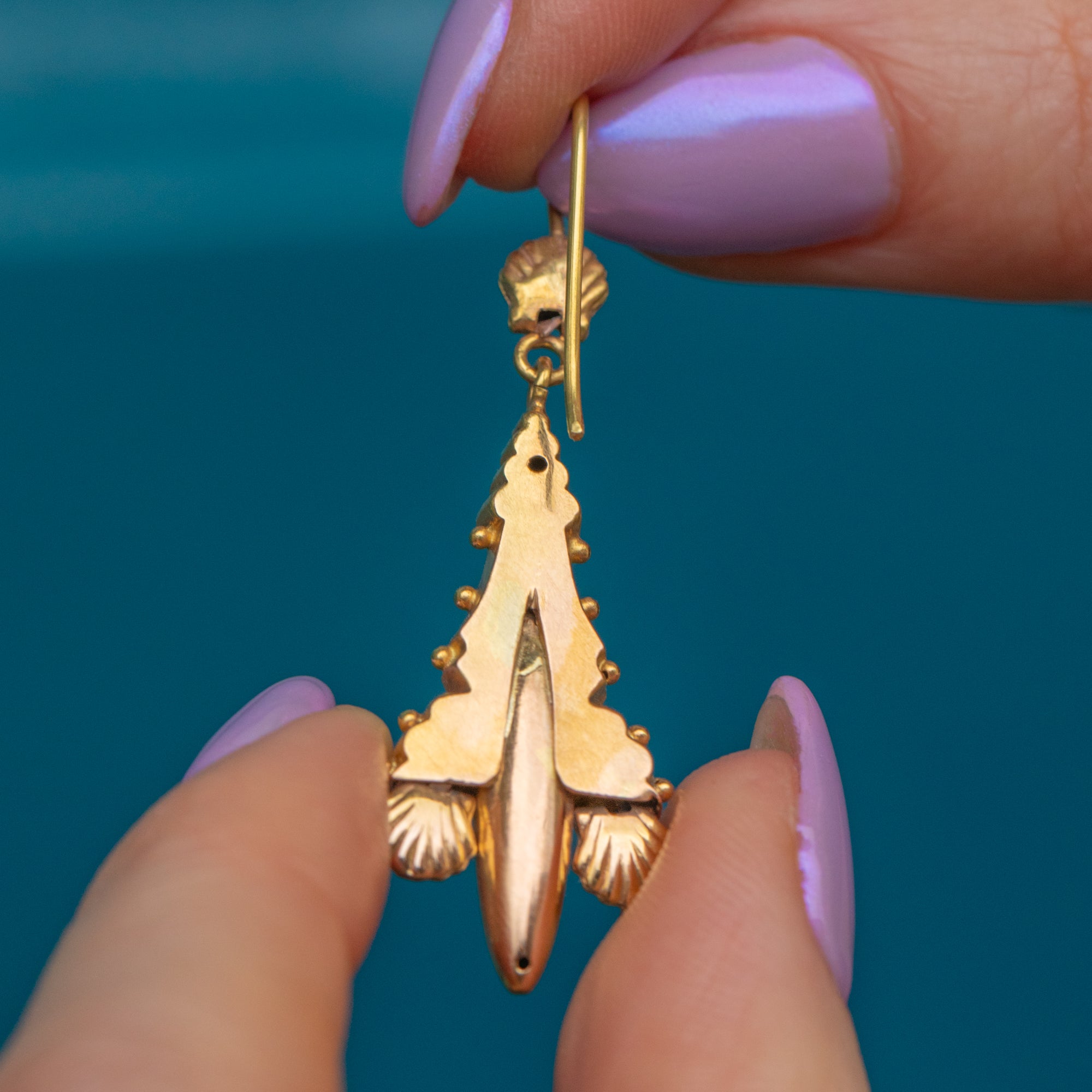 The contrast in textures creates a truly eye-catching pair, with their sweeping forms suspending elegantly from your lobes. Circa 1865, these earrings are quintessentially Victorian and will be unlike anything else in your antique jewellery collection!
