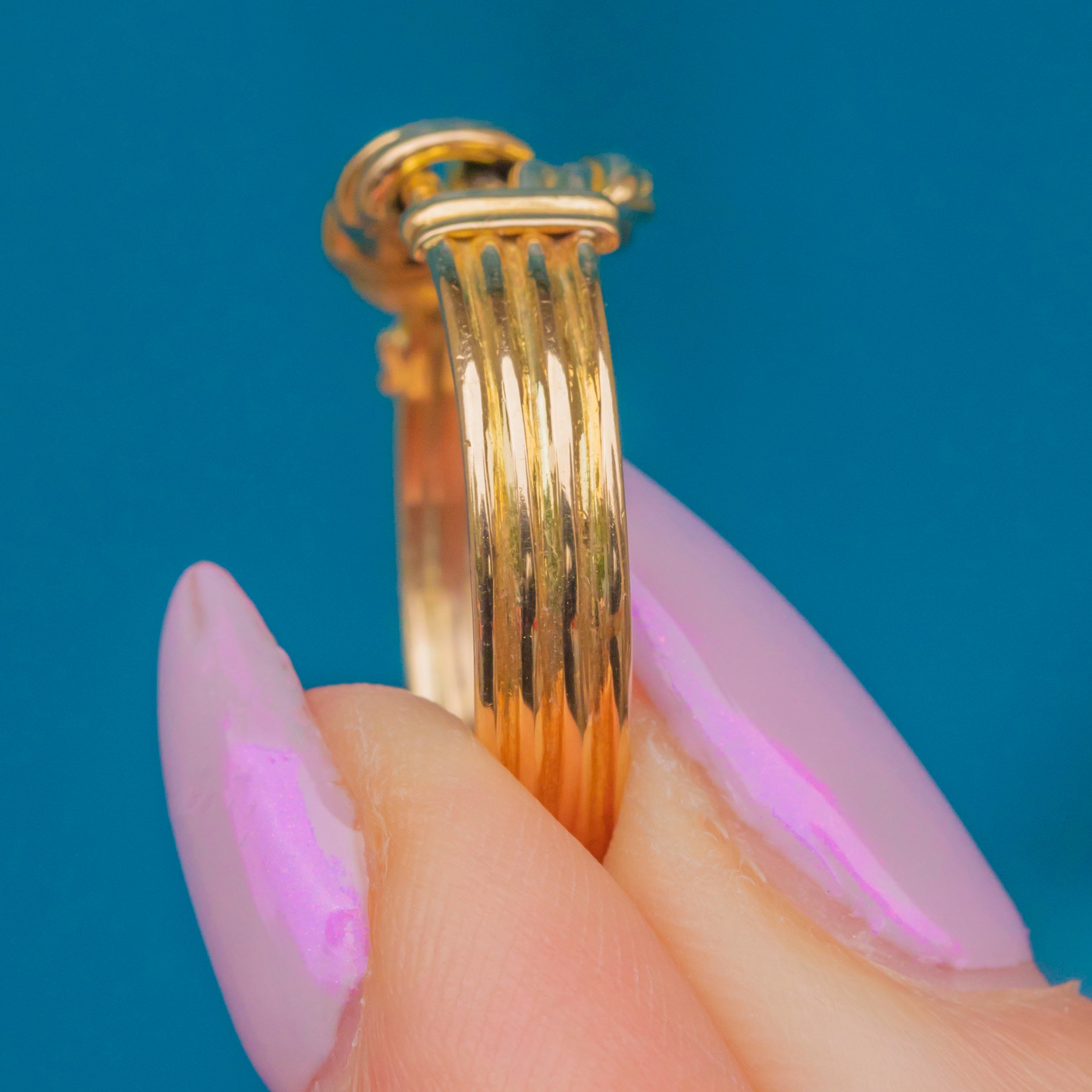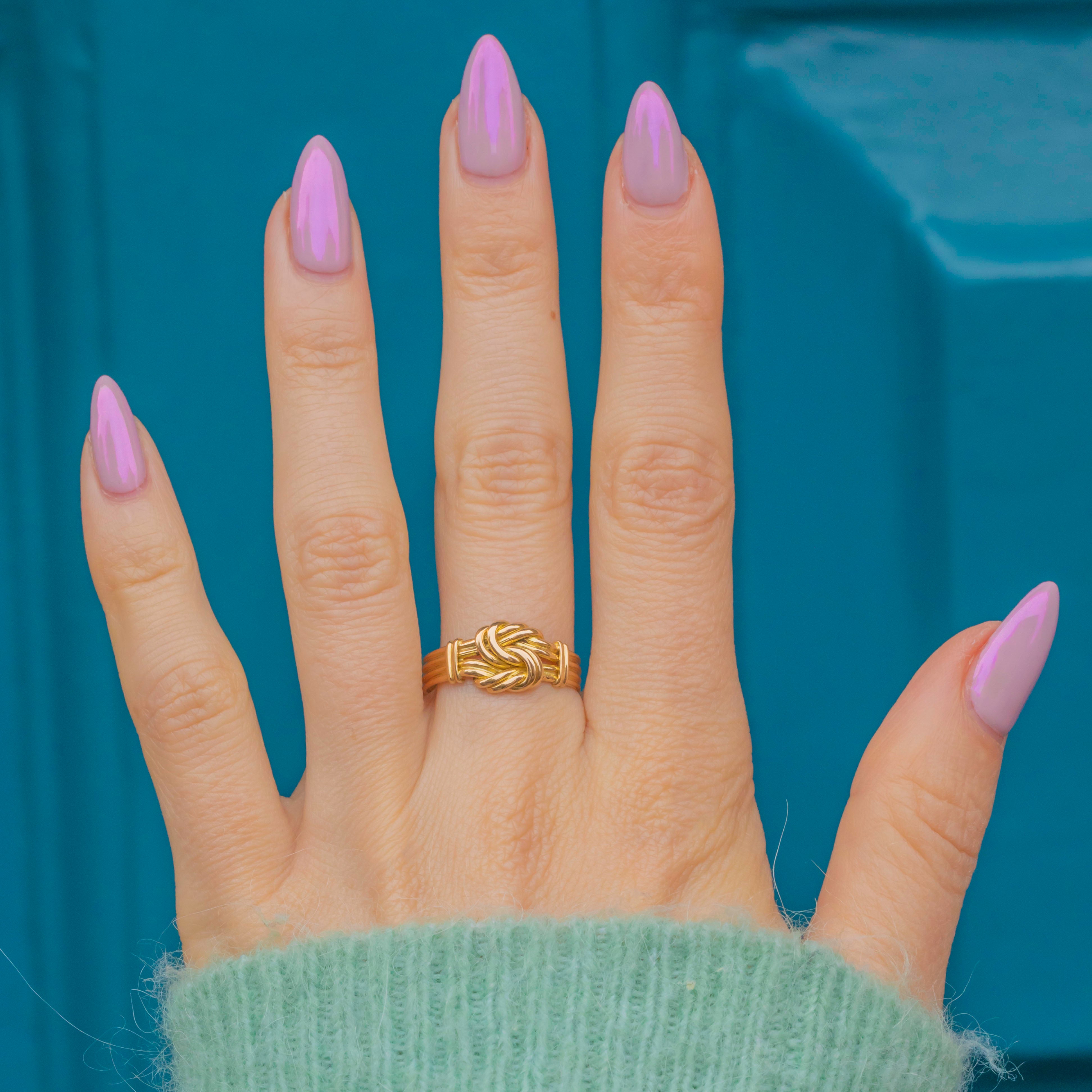 This elegant Victorian knot ring is crafted in rich 18ct Gold, symbolising eternal love and unity. The knot motif, timeless and romantic, is beautifully executed, with soft curves and a bright, buttery finish that glows with warmth and history.